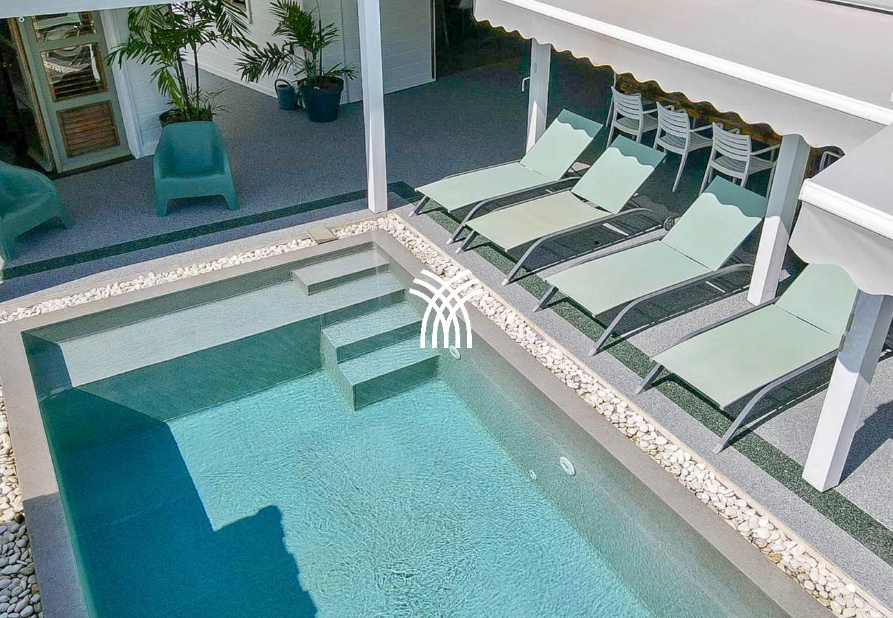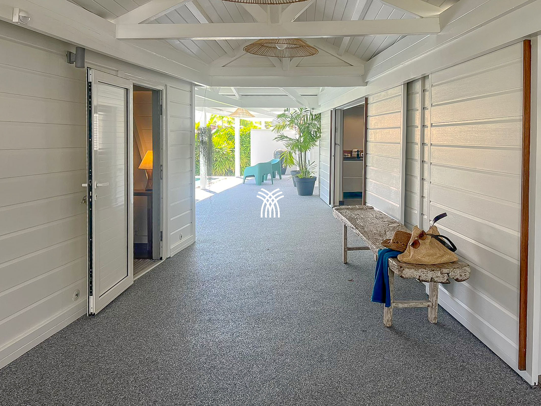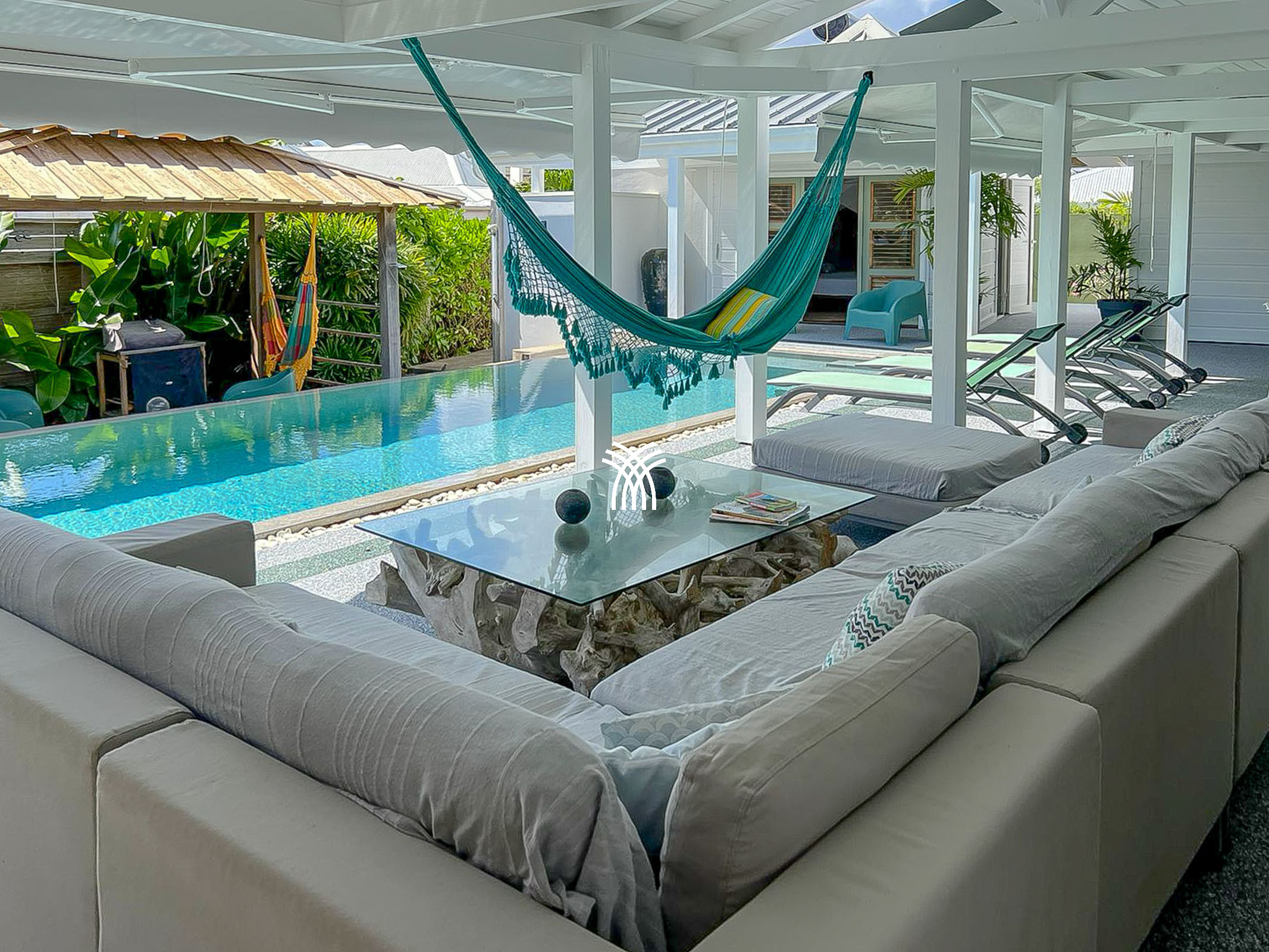 La villa Silver Lodge Guadeloupe est une villa récente implantée en bord de plage, dans une résidence privée sécurisée avec accès direct à la plage du Manganao située à 10 m par une petite porte depuis le jardin de votre villa. Cette villa d’architecte, pouvant accueillir 8 personnes, comprend quatre chambres et quatre salles de bain attenantes. La grande cuisine ouverte avec îlot central s’ouvre sur le salon et la terrasse avec la splendide piscine et l’espace massage aménagé pour passer des moments détente inoubliables.