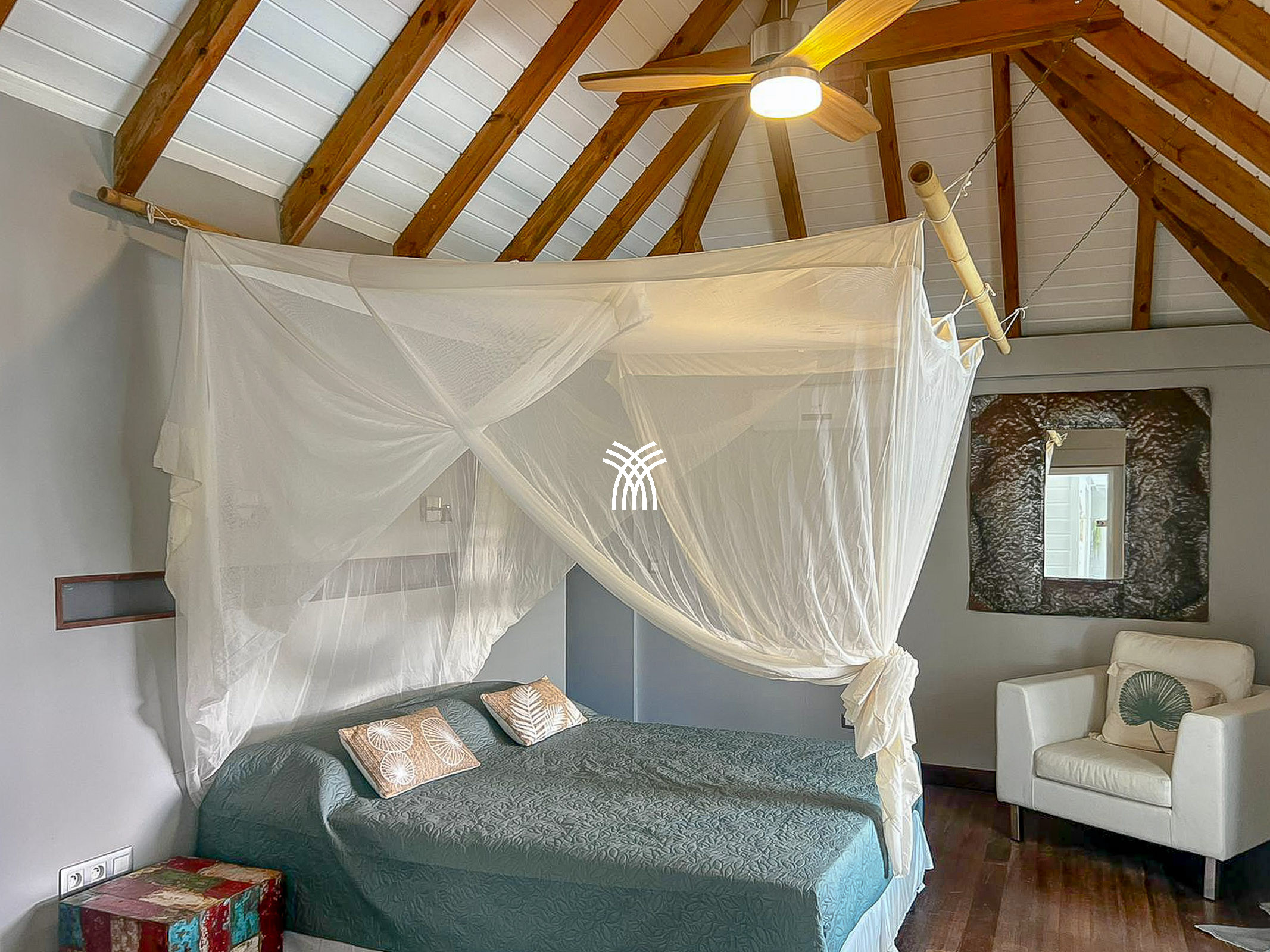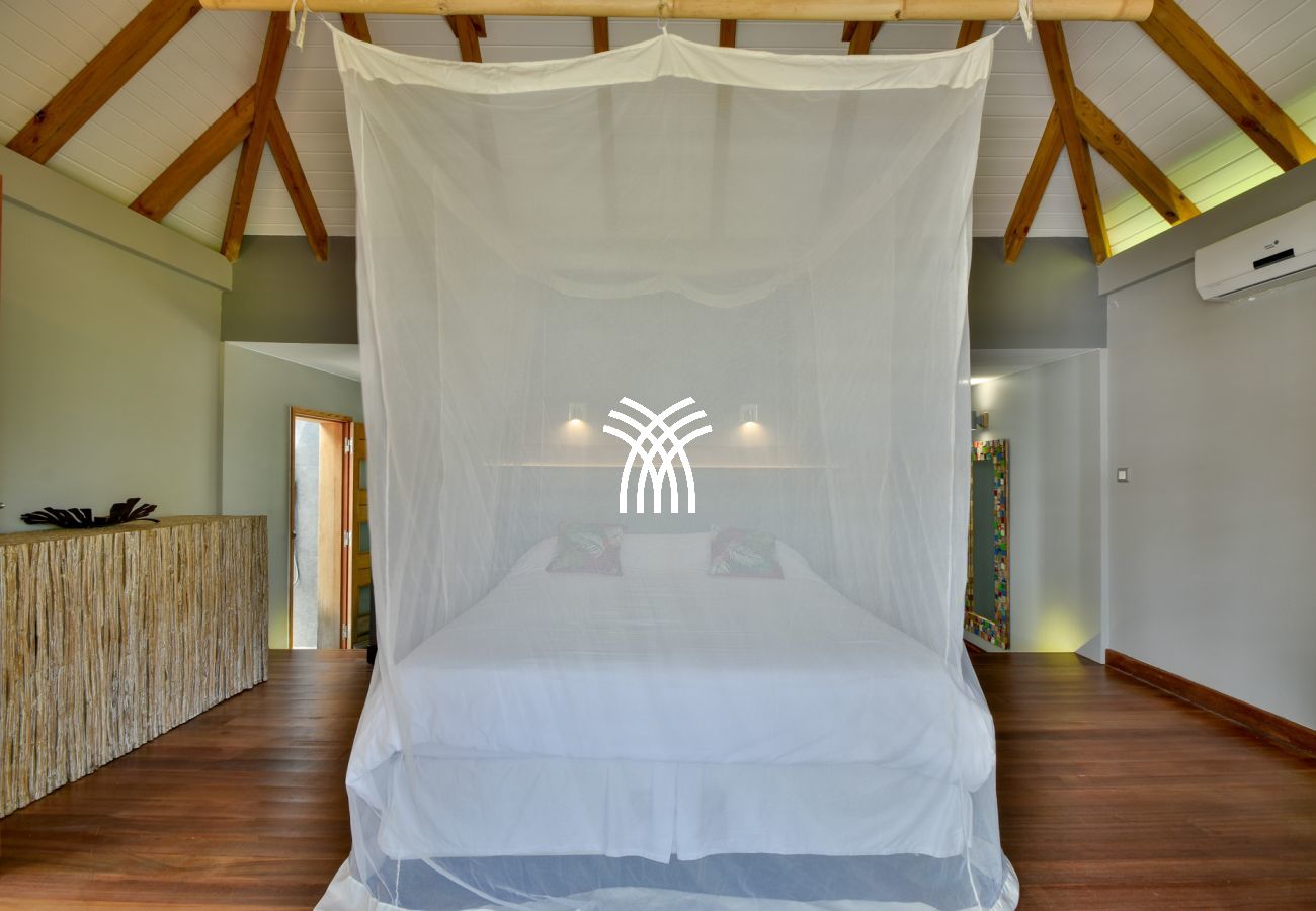 Lit queen size, air conditionné, moustiquaire, salle de bain avec douche et WC, dressing