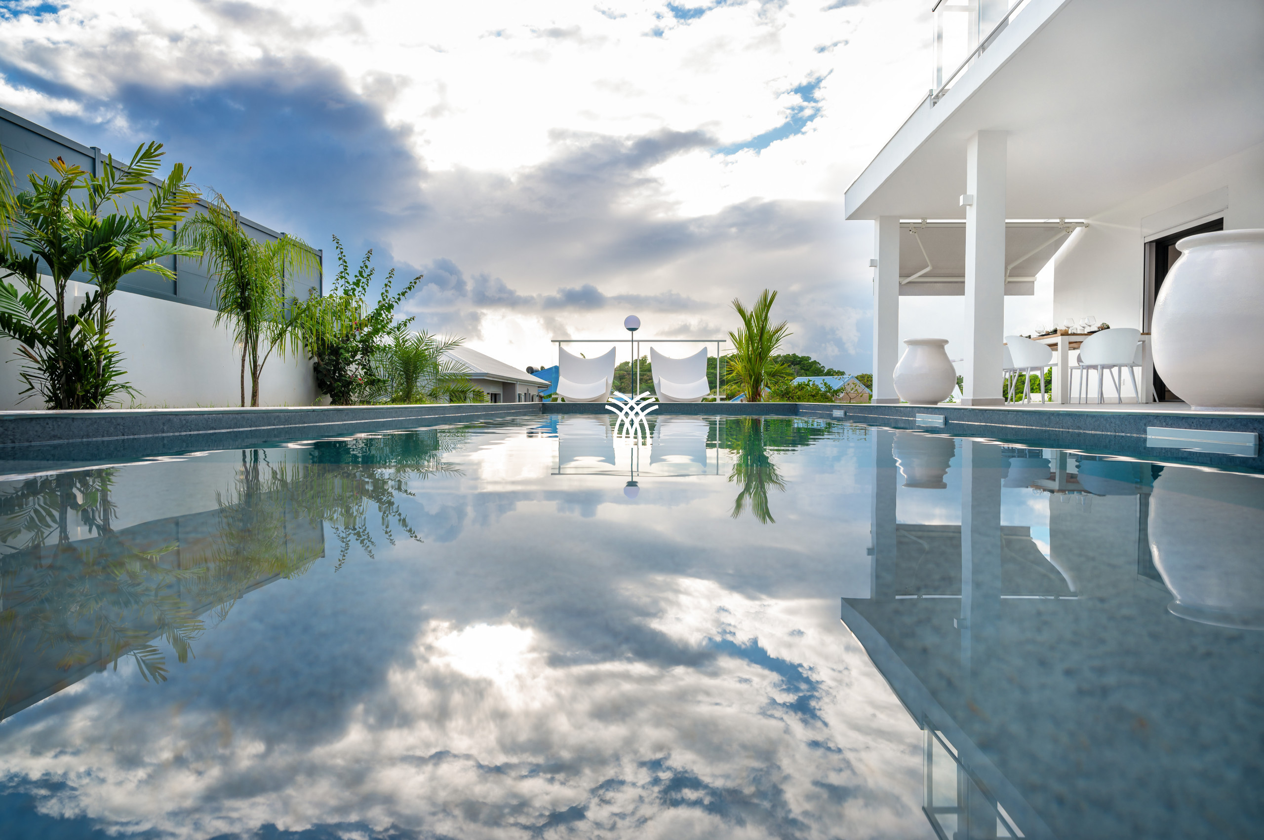 La Villa Katorz est une villa de charme en Guadeloupe située à Saint-François, offrant une vue mer panoramique et une belle piscine privée au sel de 5x10m. Pensée pour des séjours en toute sérénité, cette location de villa à Saint-François combine confort moderne et ambiance créole dans un cadre verdoyant et intime. La pièce de vie spacieuse s’ouvre sur une terrasse couverte donnant sur la piscine et un carbet, parfaits pour profiter de la douceur des soirées guadeloupéennes face à la mer.