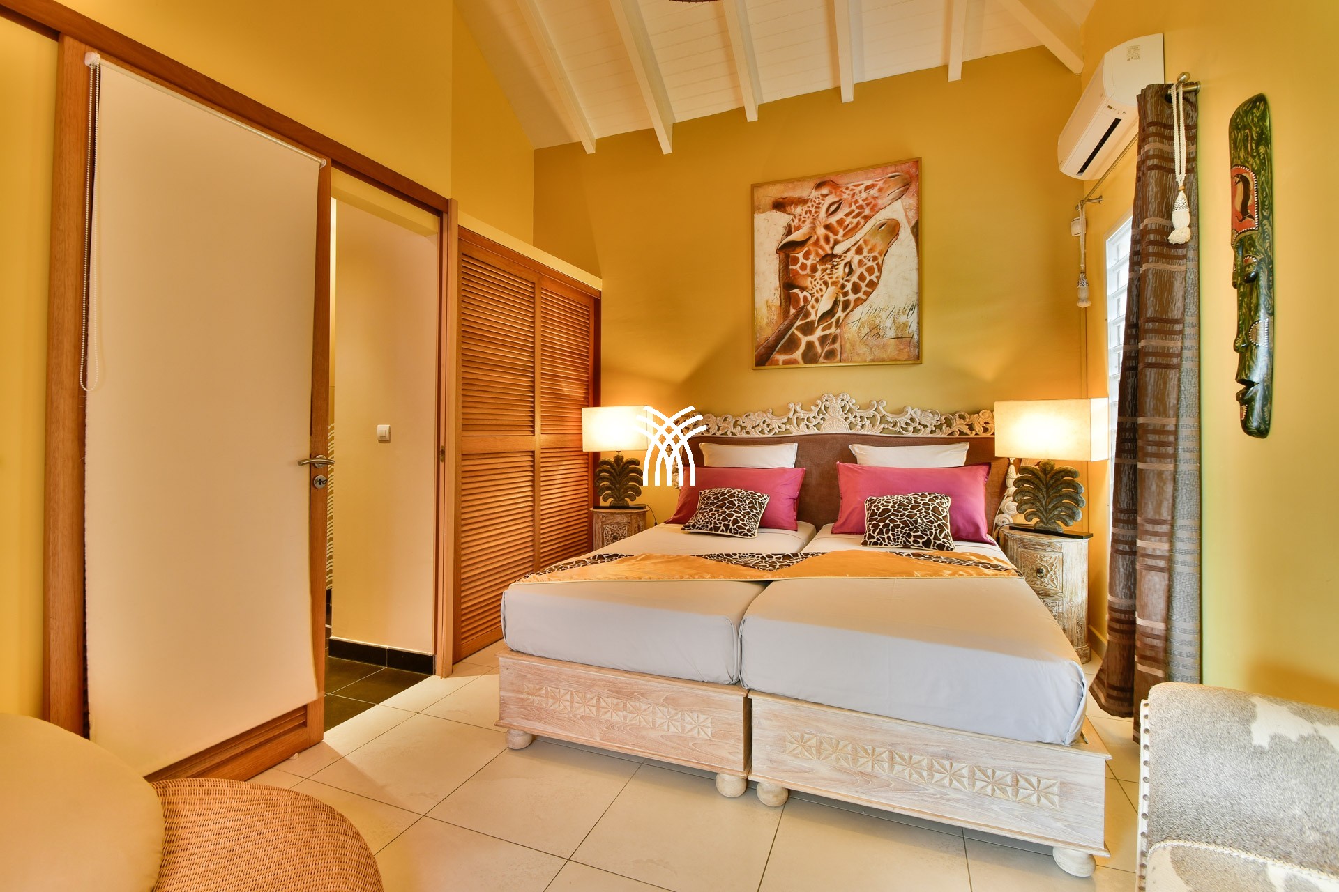 Les deux chambres jumelles, avec lits queen-size, s'ouvrent sur une galerie couverte et partagent une salle d'eau moderne.