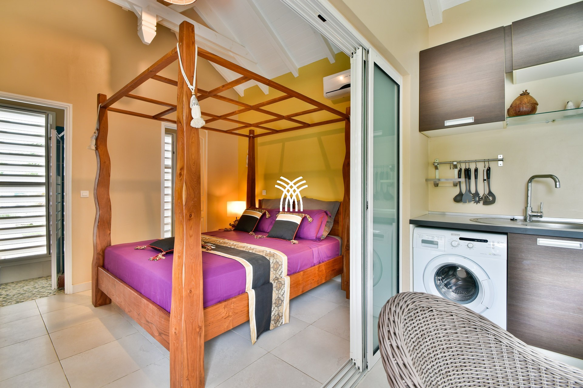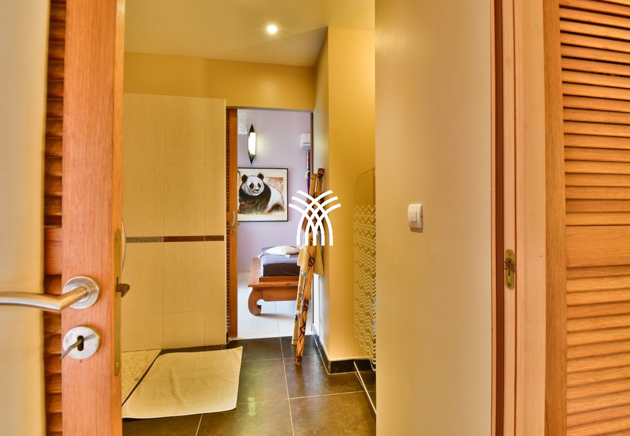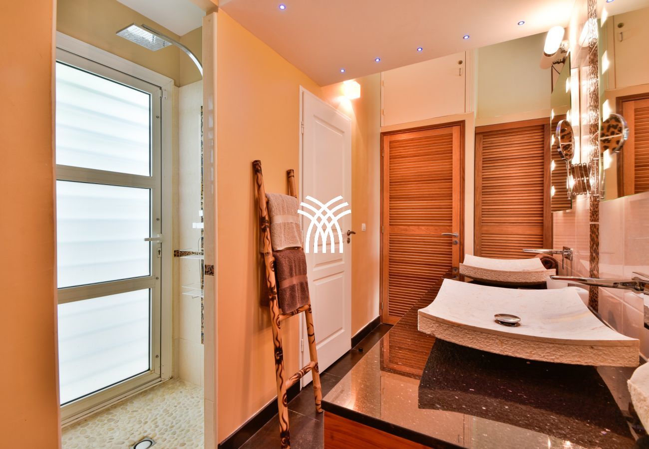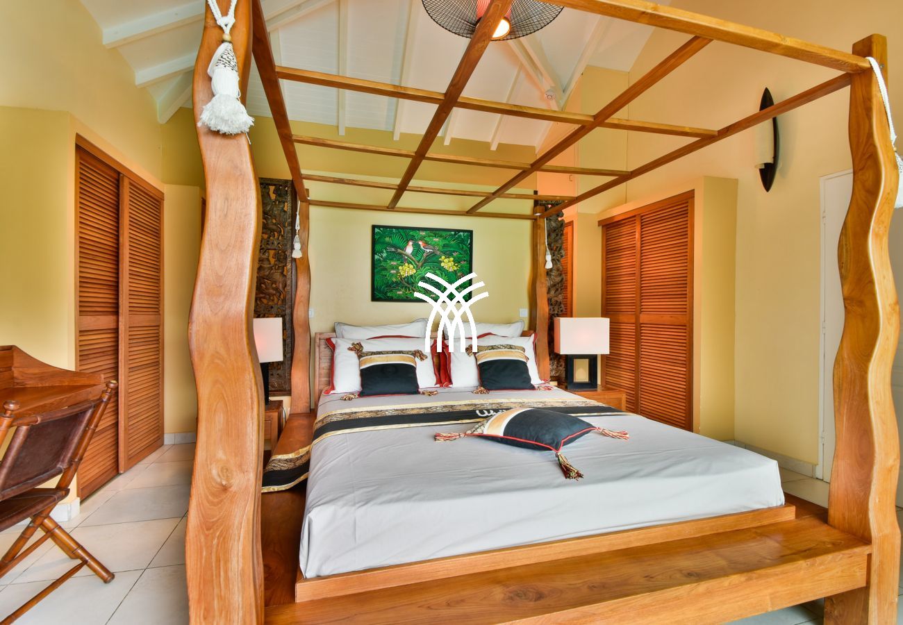 La villa Abawak, de plain-pied, dispose de 4 chambres climatisées décorées avec goût pour offrir confort et sérénité. La suite parentale principale est un véritable cocon avec lit king-size, dressing et salle d'eau privée. Une seconde suite parentale offre une expérience unique avec une douche en plein air sous le ciel étoilé de la Guadeloupe.