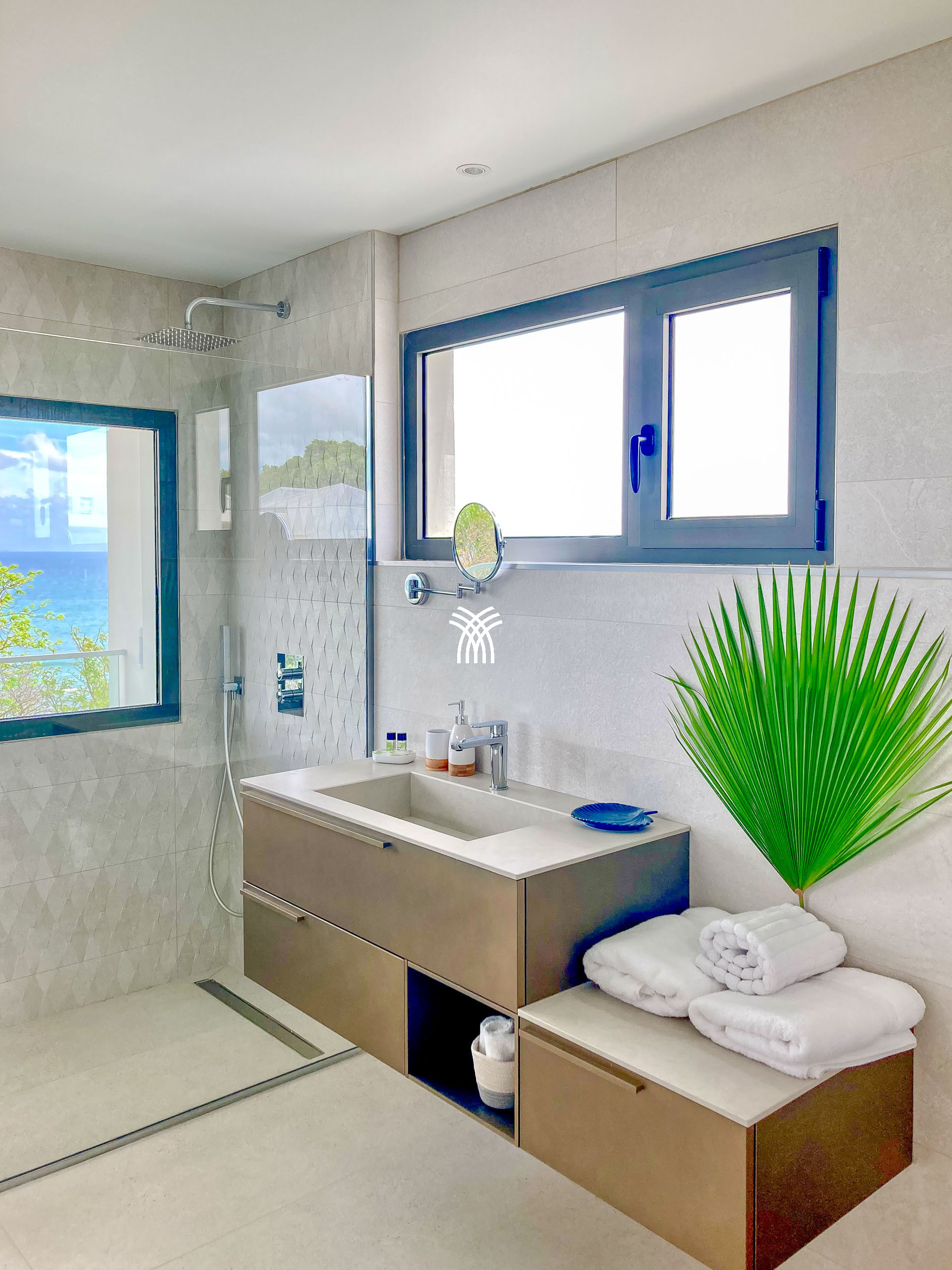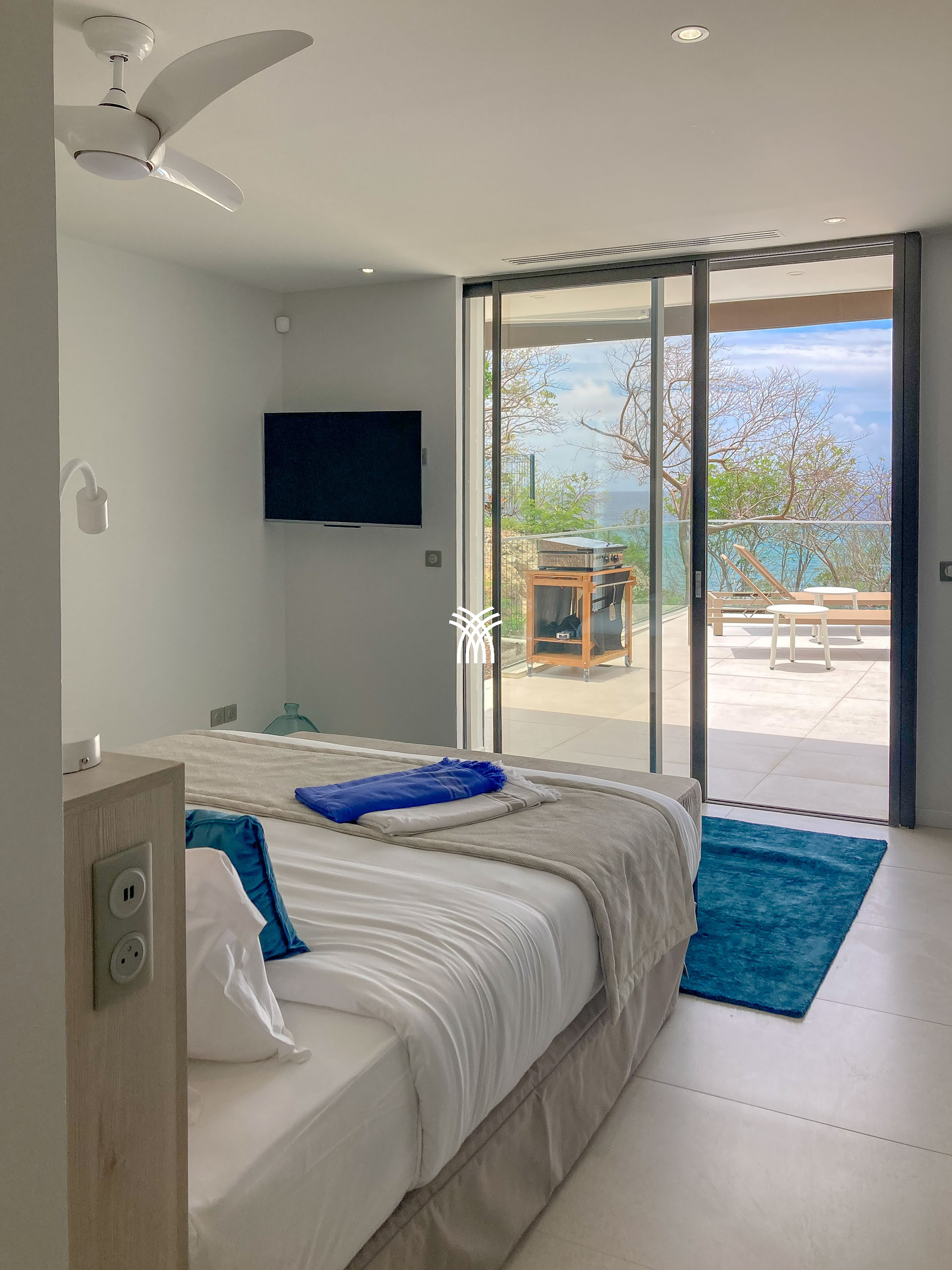 La villa Abawak, de plain-pied, dispose de 4 chambres climatisées décorées avec goût pour offrir confort et sérénité. La suite parentale principale est un véritable cocon avec lit king-size, dressing et salle d'eau privée. Une seconde suite parentale offre une expérience unique avec une douche en plein air sous le ciel étoilé de la Guadeloupe.