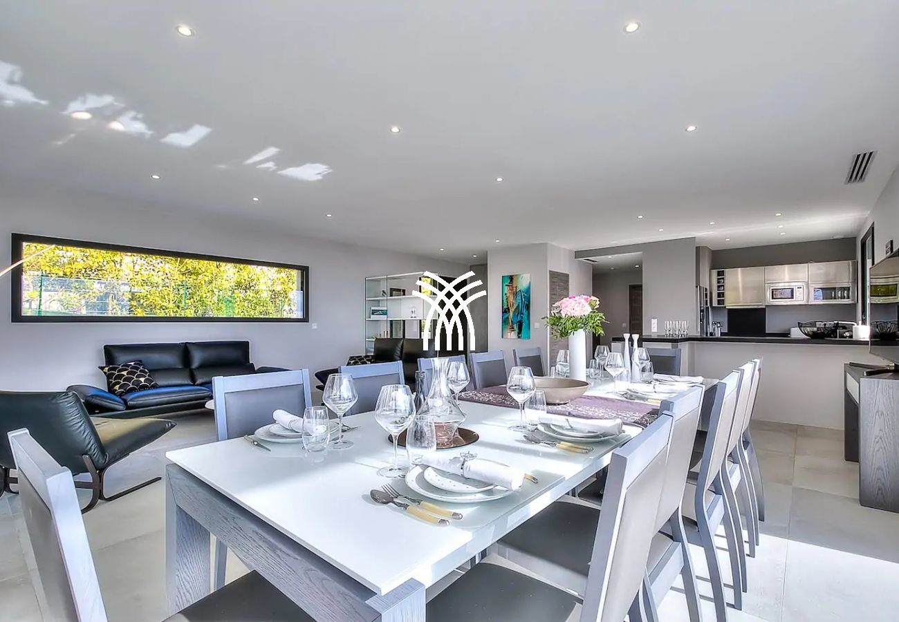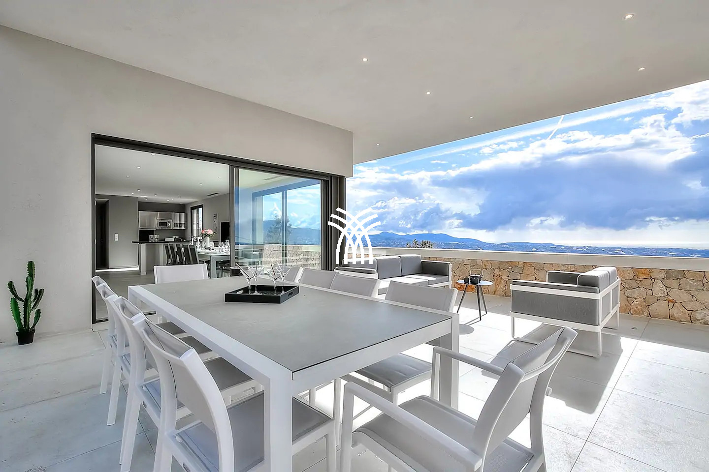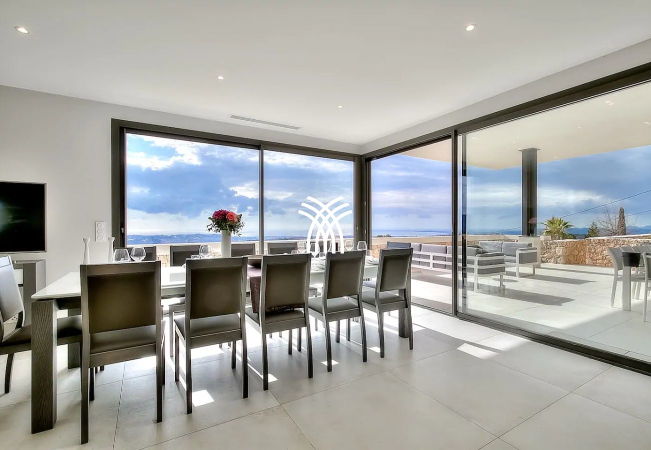 La Villa Mastro, située à Saint-Jeannet sur la Côte d'Azur, est une luxueuse villa contemporaine offrant une vue panoramique exceptionnelle qui s'étend du Cap d'Antibes à Nice. Avec ses 300 m² d’espace, cette villa allie élégance et confort dans un cadre idyllique, idéal pour un séjour inoubliable en famille ou entre amis.