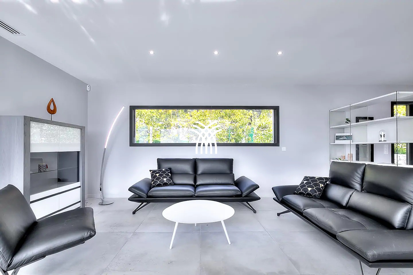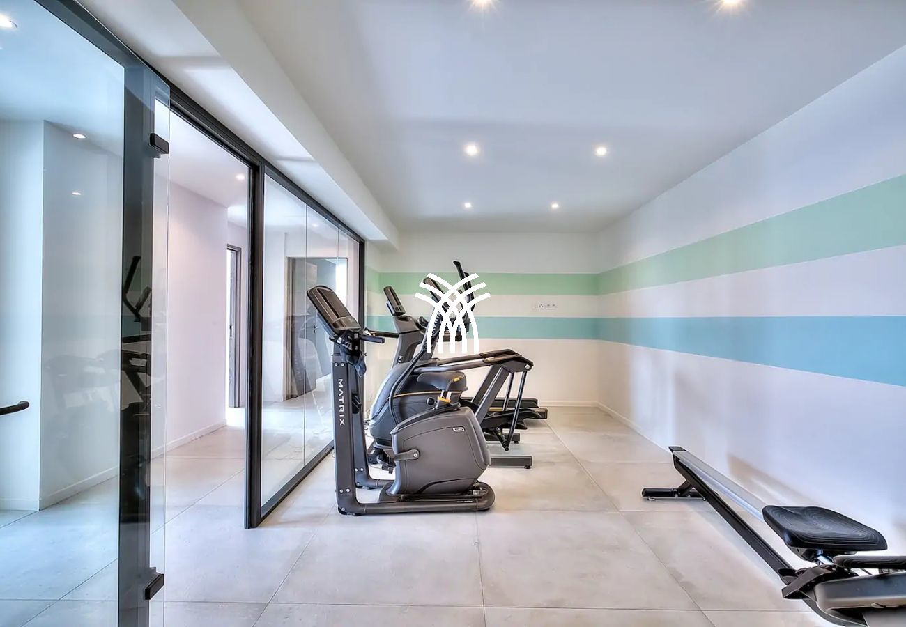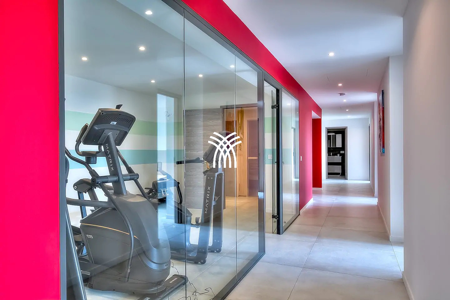 À l’extérieur, la villa dispose d’une vaste terrasse en bois bordée d’une piscine privée, idéale pour se relaxer et profiter du climat ensoleillé de la Côte d’Azur. Vous pourrez également profiter de moments de détente dans l’un des nombreux salons extérieurs aménagés, offrant une vue imprenable sur la mer et les collines.
