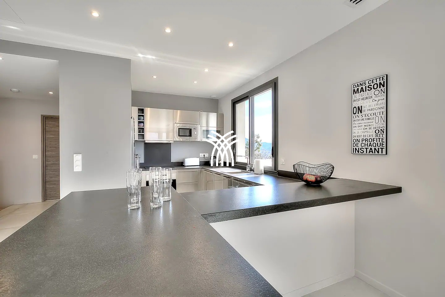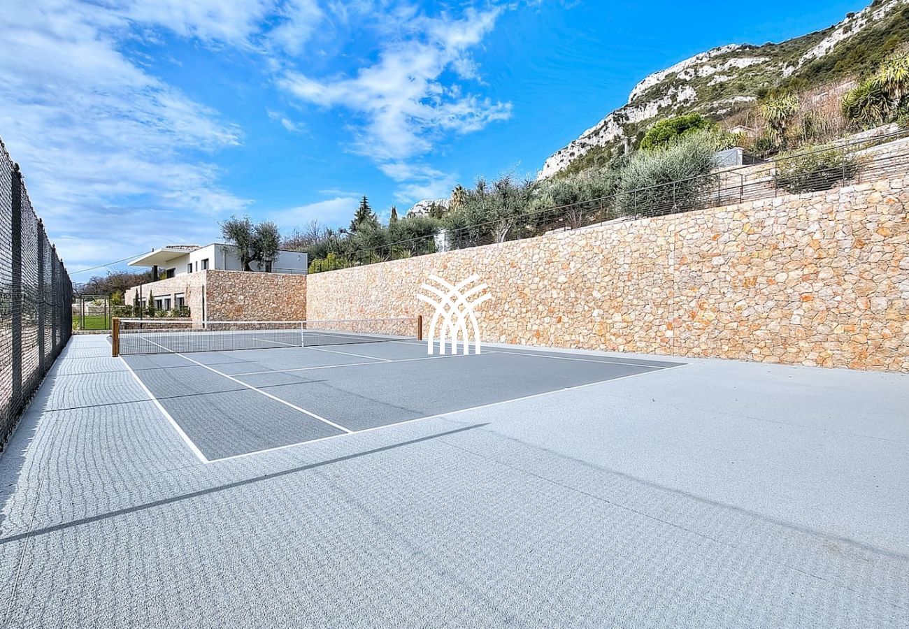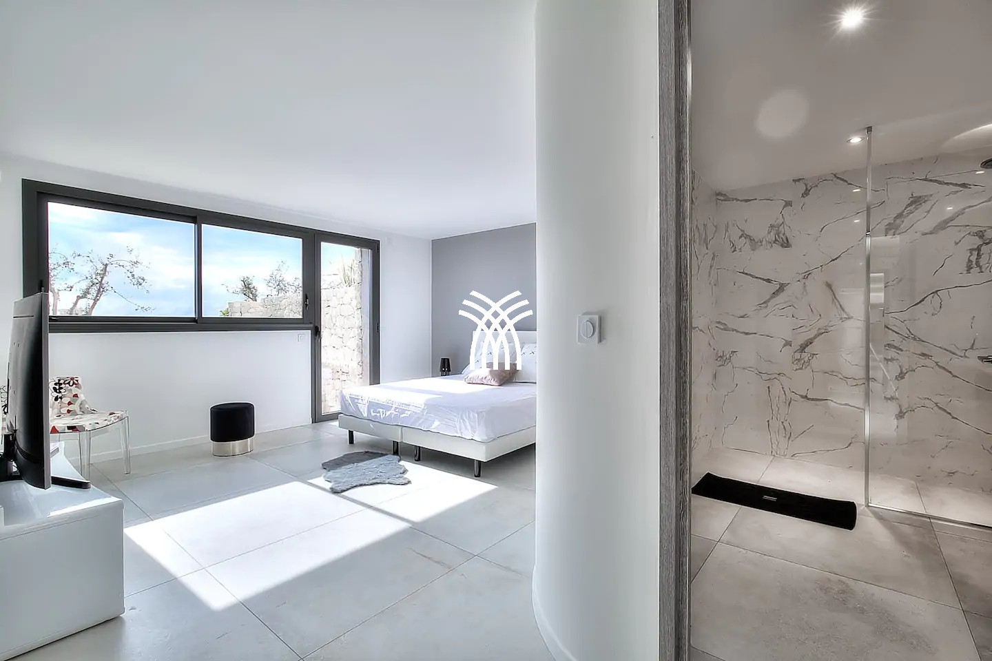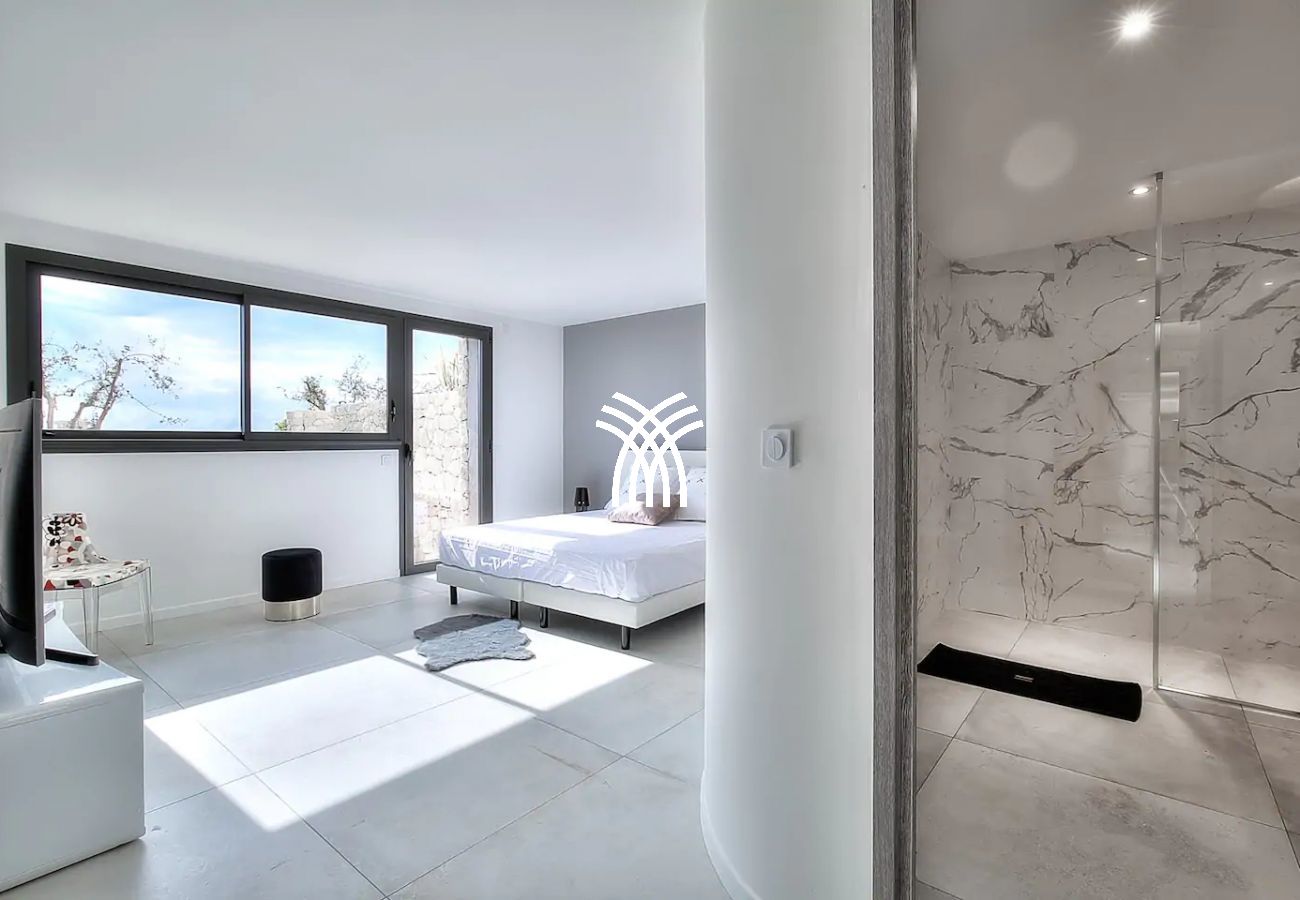 La villa propose des prestations haut de gamme et un design soigné, avec une vue imprenable sur la mer Méditerranée et les collines environnantes. Cette atmosphère apaisante vous suivra partout, que ce soit depuis la terrasse ensoleillée, au bord de la piscine chauffée, ou dans les espaces intérieurs lumineux. La villa est conçue pour profiter au maximum du cadre naturel spectaculaire qui l’entoure.