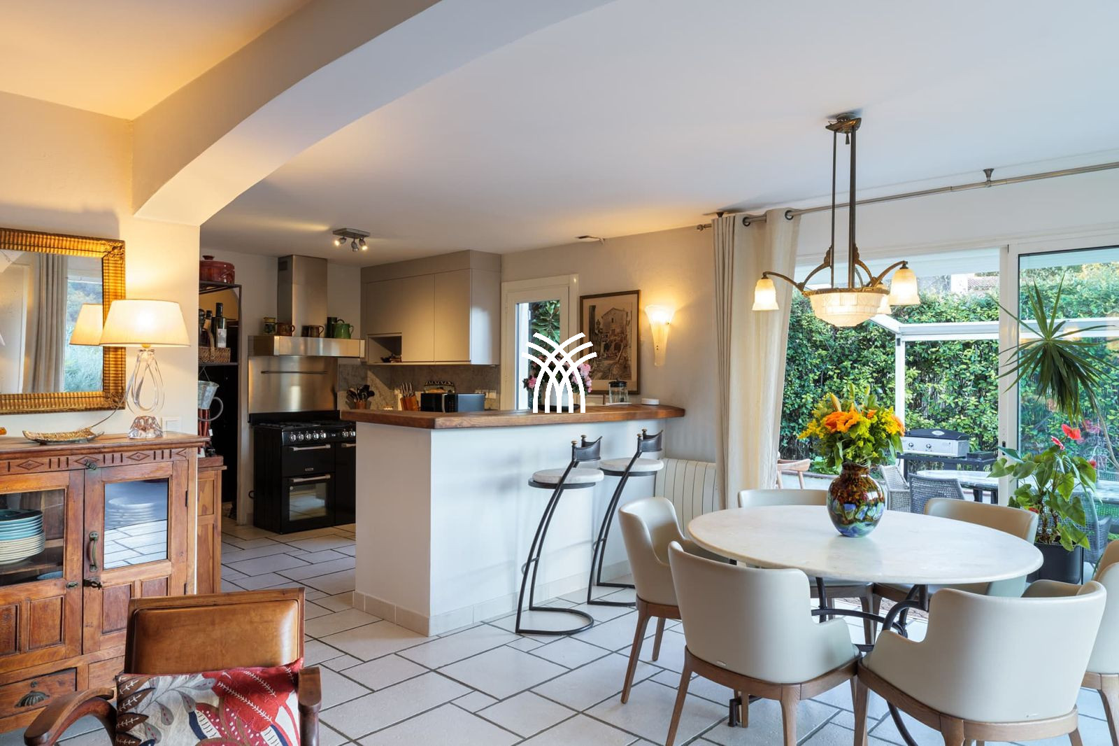 Déployée sur environ 200 m², la villa s’inscrit au cœur d’un terrain paysager de 1 500 m², offrant intimité et sérénité. Le double séjour, spacieux et lumineux, s’organise autour d’une cheminée élégante, créant une atmosphère chaleureuse aussi agréable en été qu’en mi-saison. De larges ouvertures prolongent naturellement les espaces de vie vers le jardin et la piscine, invitant à une vie dedans-dehors typiquement méditerranéenne. La cuisine, entièrement équipée, allie fonctionnalité et convivialité, idéale pour les séjours en famille ou entre amis.