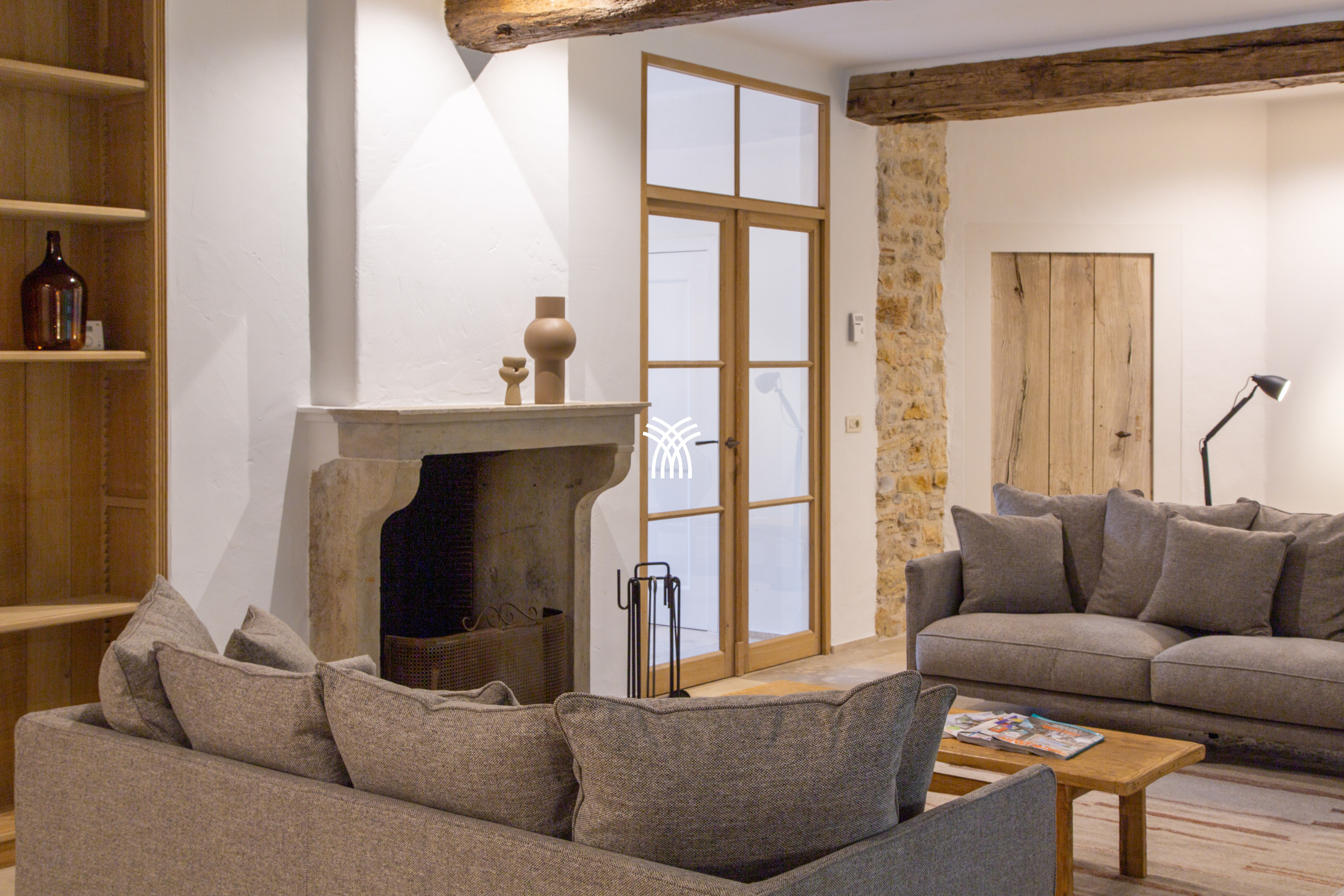 Conçue pour évoquer la chaleur et l'authenticité, la bastide se déploie en espaces de vie généreux qui encouragent à la fois la détente et la convivialité. Un salon spacieux avec des fauteuils profonds et une cheminée crée un cadre accueillant pour des moments de tranquillité, tandis que la salle à manger et un salon télévision séparé offrent des espaces supplémentaires pour se réunir ou se retirer. Chaque détail reflète l'essence de la vie provençale, où le temps ralentit et chaque moment est savouré.