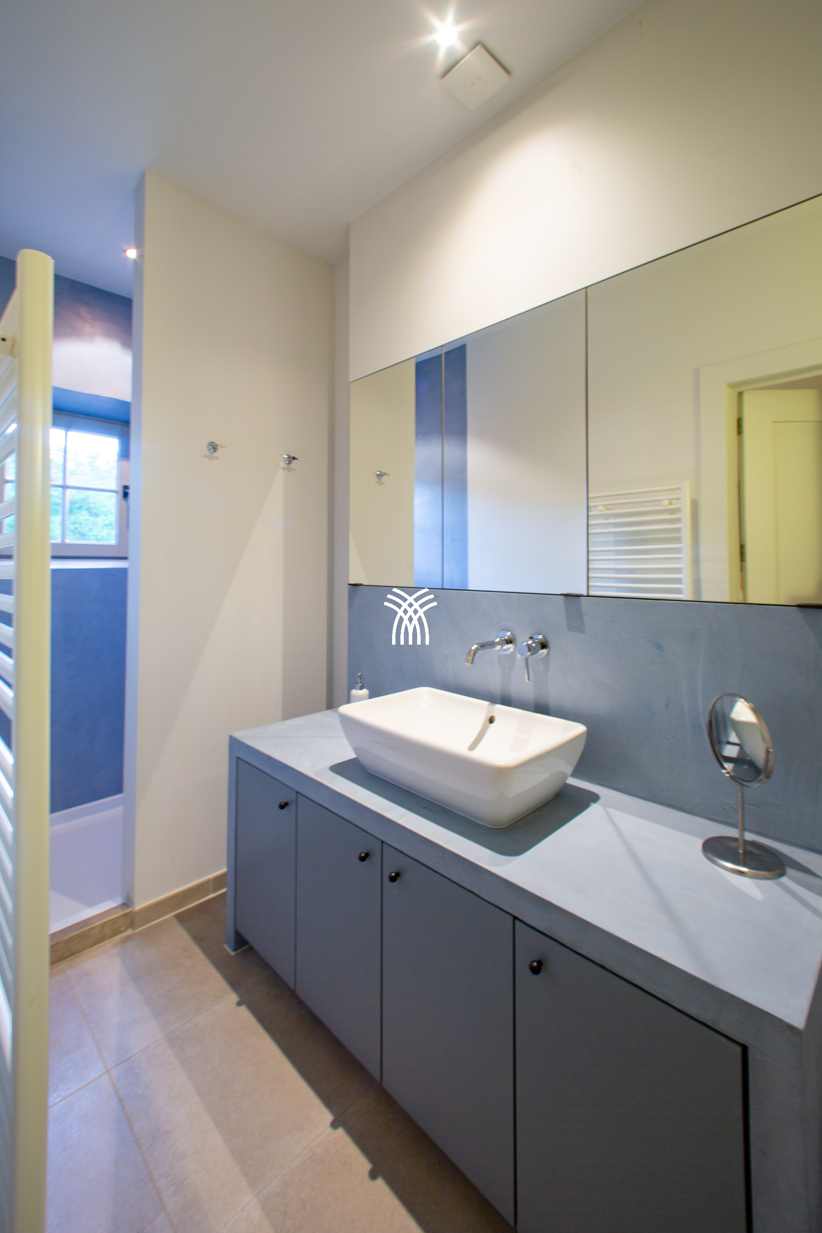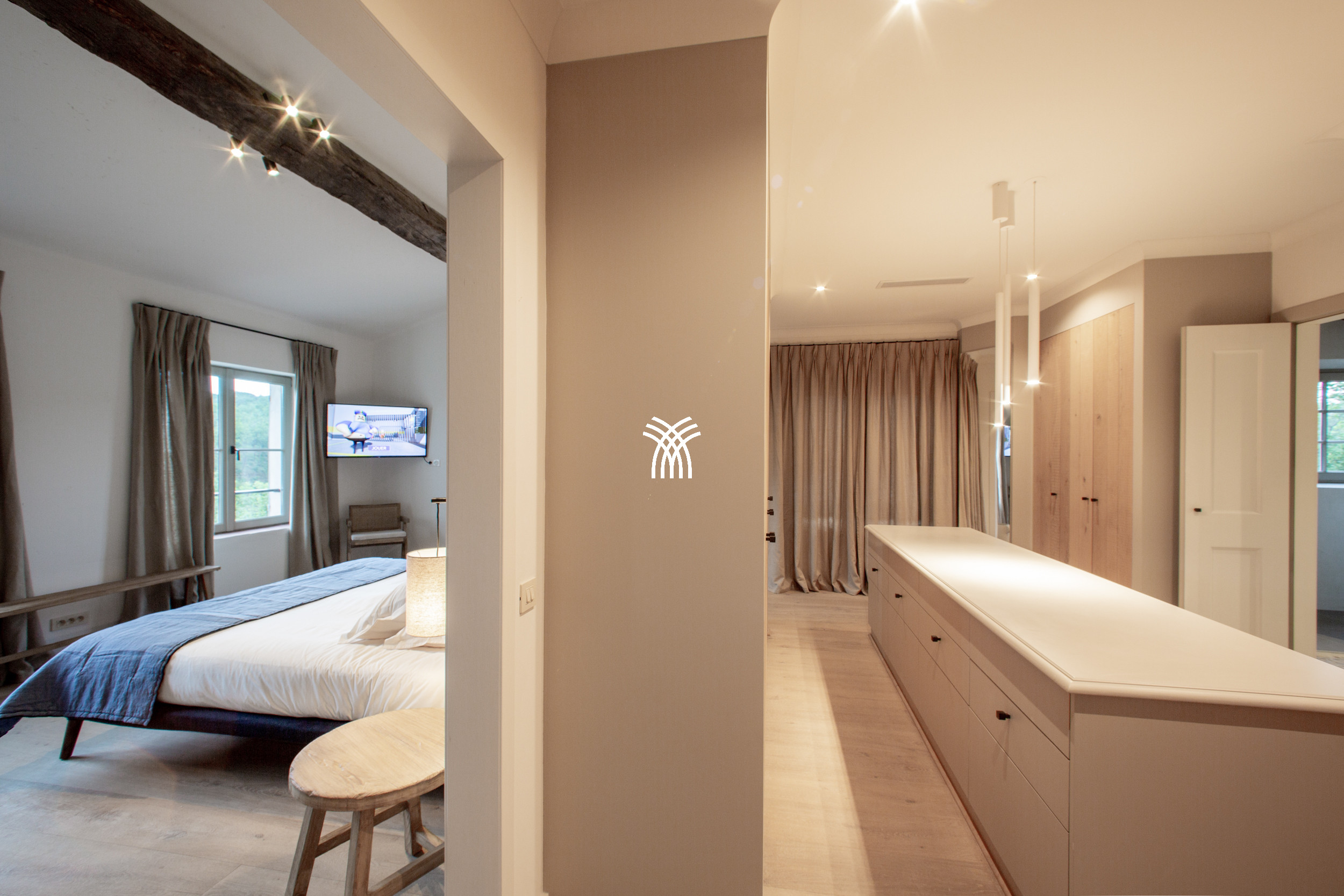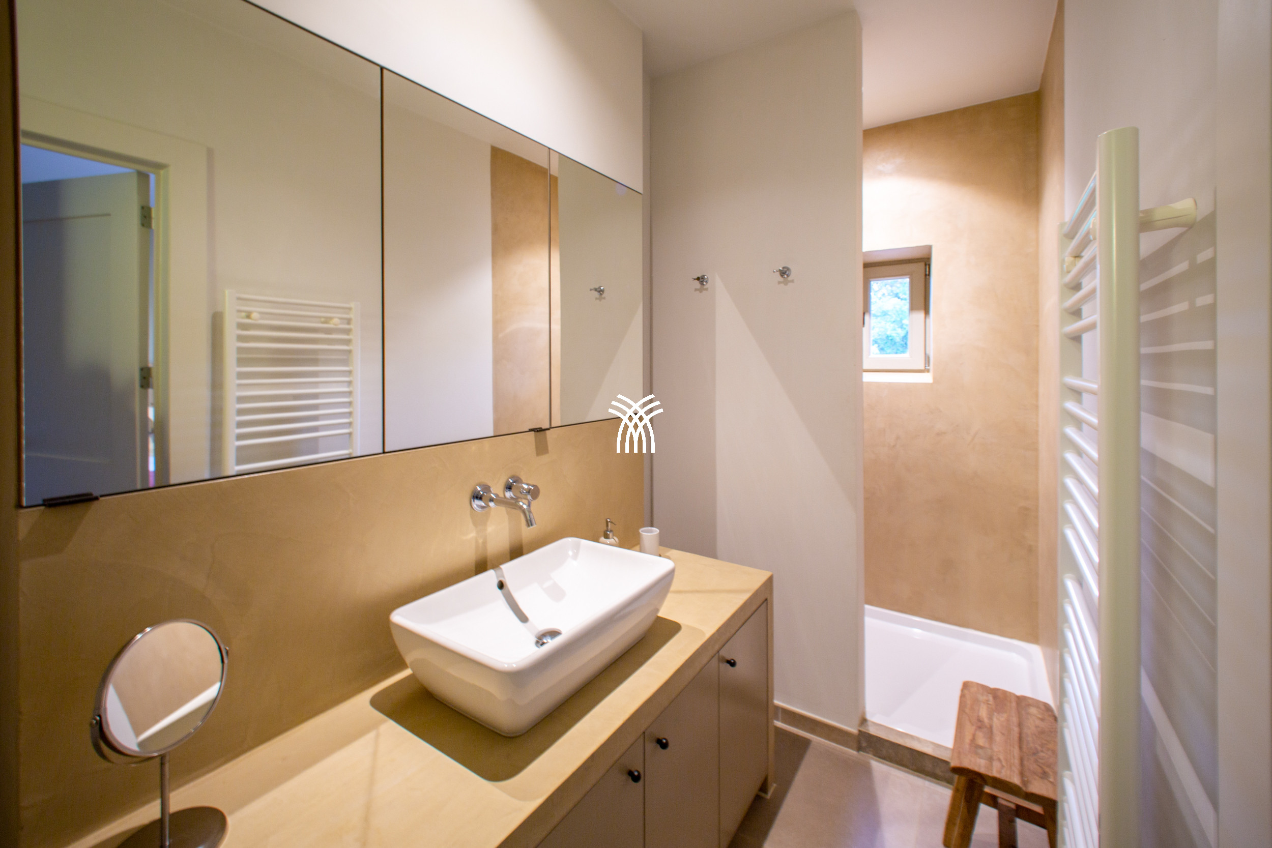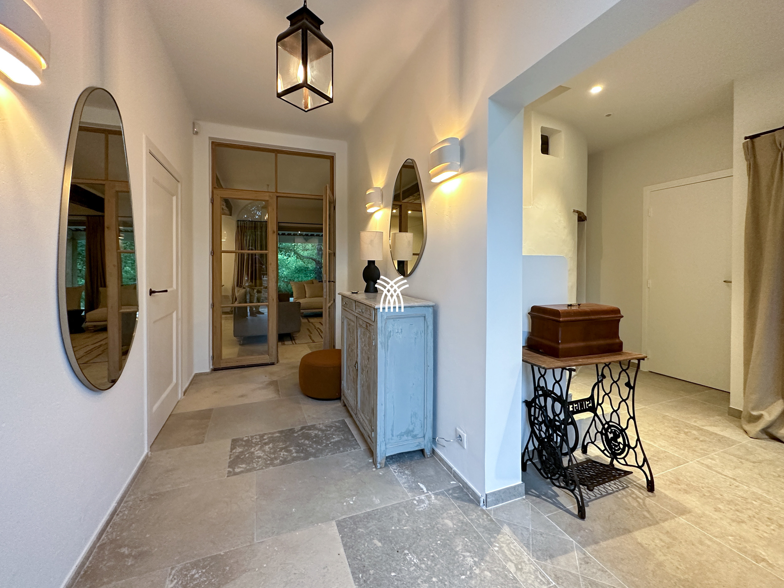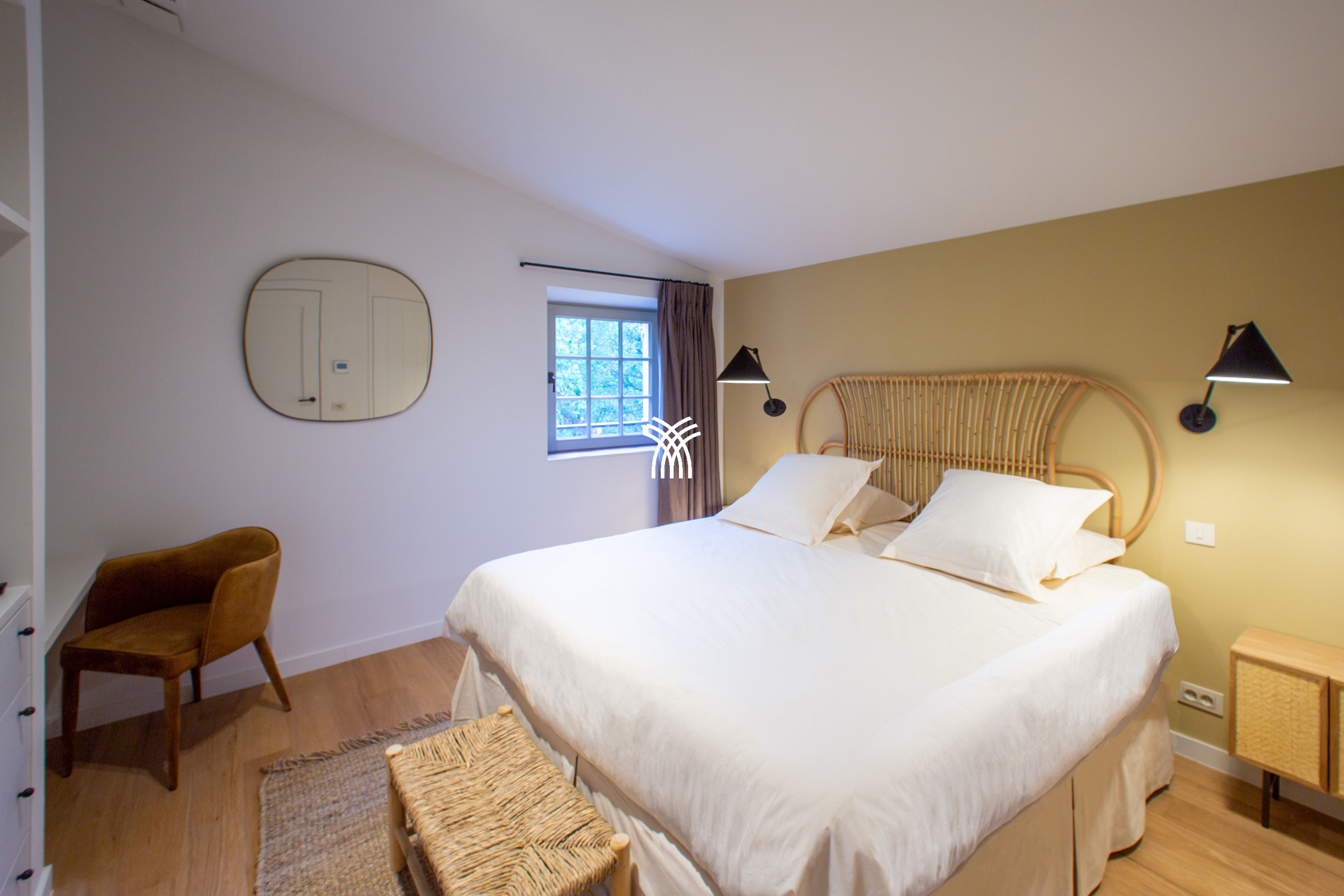La villa accueille les invités dans des chambres magnifiquement aménagées, chacune offrant intimité et vue sur le bois environnant ou la piscine. La suite principale spacieuse dispose d'un grand dressing et d'une salle de bain attenante avec baignoire et douche, et est complétée par une chambre d'enfants adjacente. Quatre chambres supplémentaires généreusement dimensionnées comprennent chacune la climatisation, une télévision, une salle de douche et des toilettes privatives, garantissant le confort et l'indépendance de chaque invité.