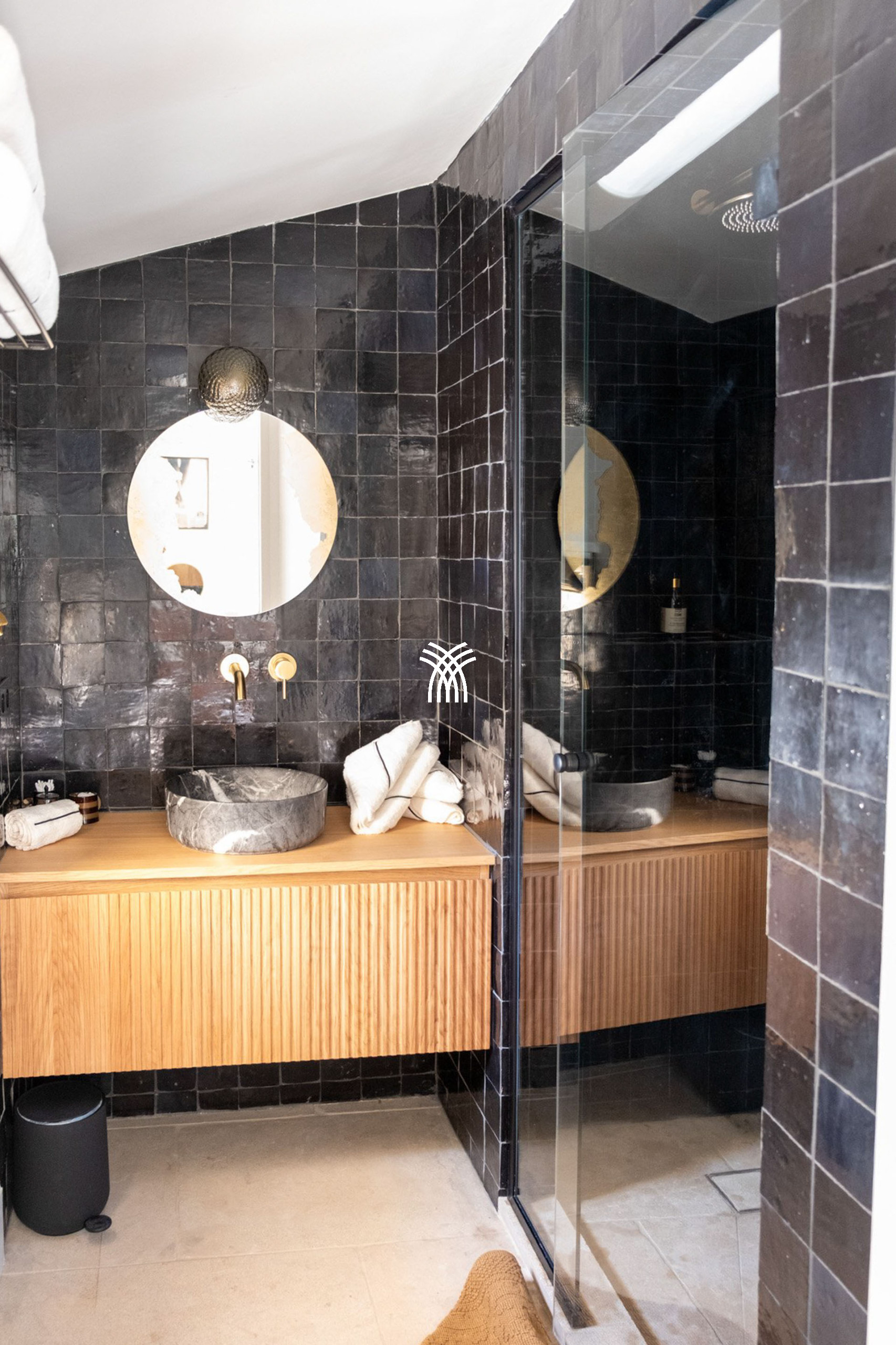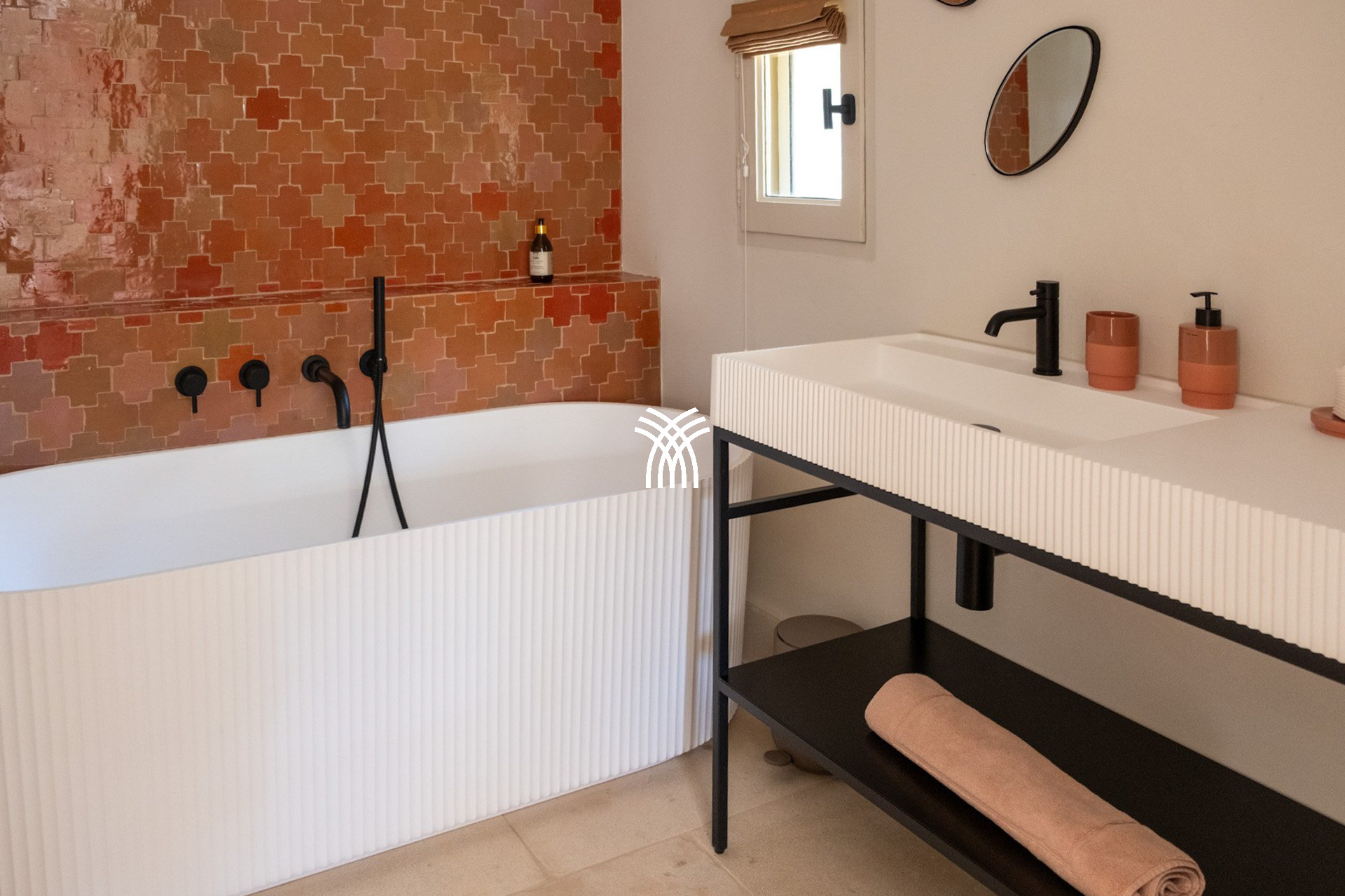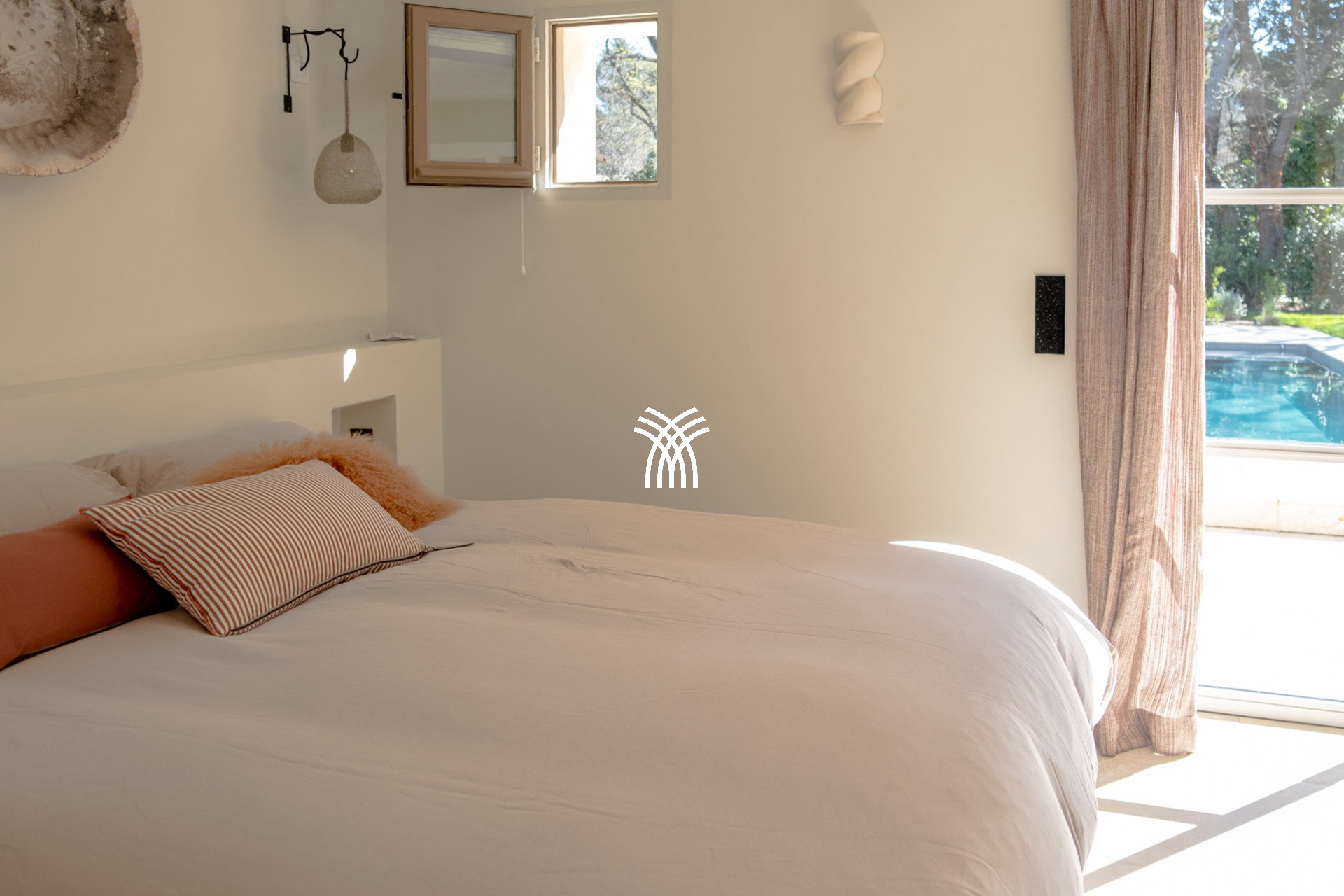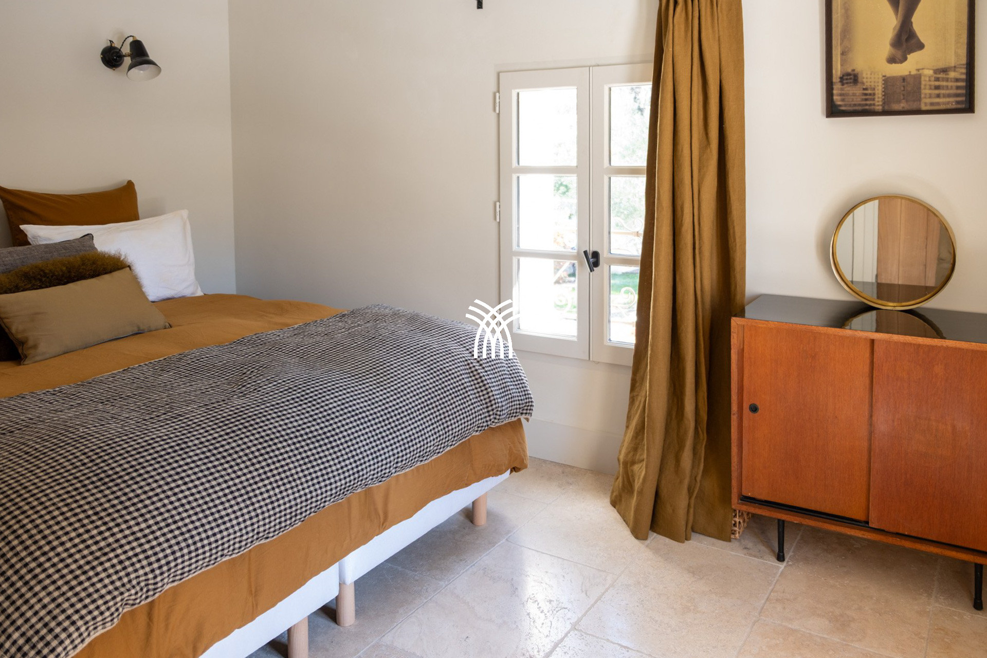 La propriété peut accueillir jusqu’à huit personnes grâce à ses quatre chambres doubles, toutes équipées de salles de bain privatives, dont une située dans une annexe indépendante en bord de piscine. L’ensemble de la maison est climatisé et pensé pour le confort estival comme hivernal. Le salon lumineux avec cheminée ouvre sur un jardin parfaitement entretenu, tandis que la cuisine ouverte, entièrement équipée, se prolonge sur une terrasse ombragée pour des repas en plein air dans un cadre enchanteur.