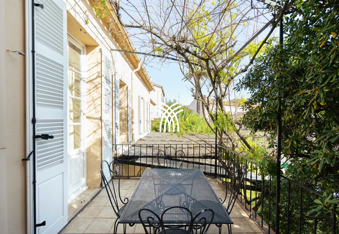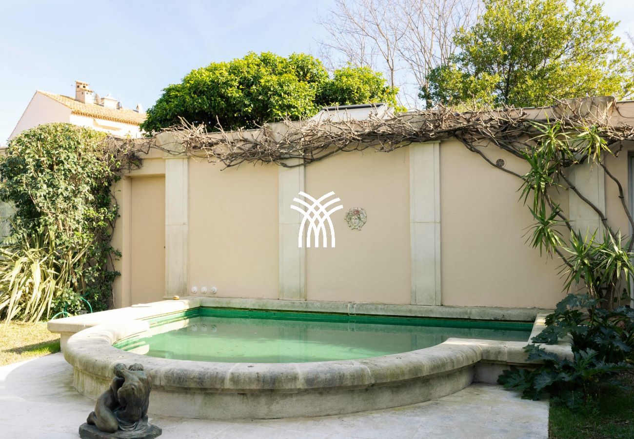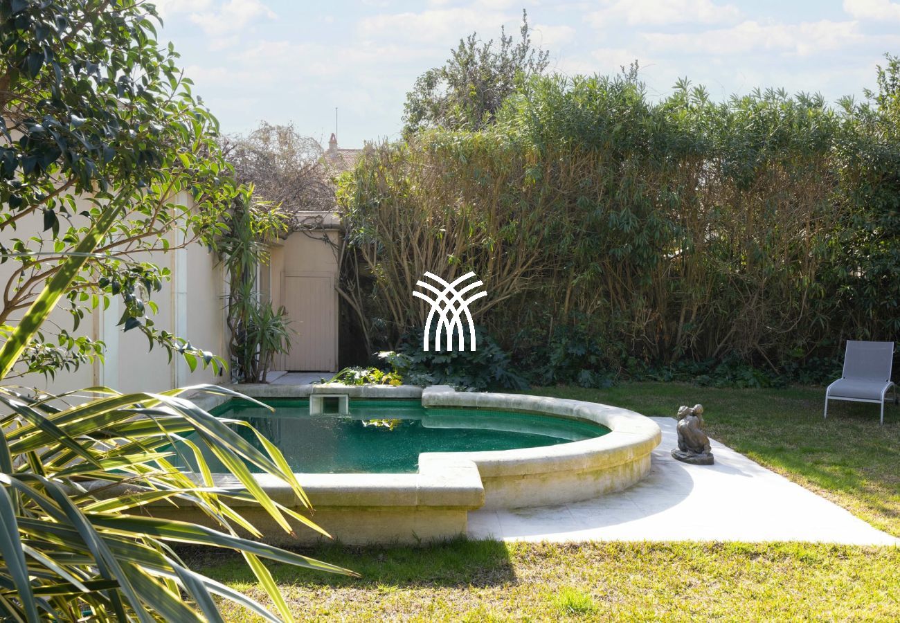 À l’extérieur, le jardin soigneusement aménagé s’ouvre sur une grande terrasse baignée de soleil, dotée de transats et d’une vaste table pour savourer des repas d’été en toute détente. La piscine apporte une touche de fraîcheur bienvenue, idéale pour les journées ensoleillées du Sud.