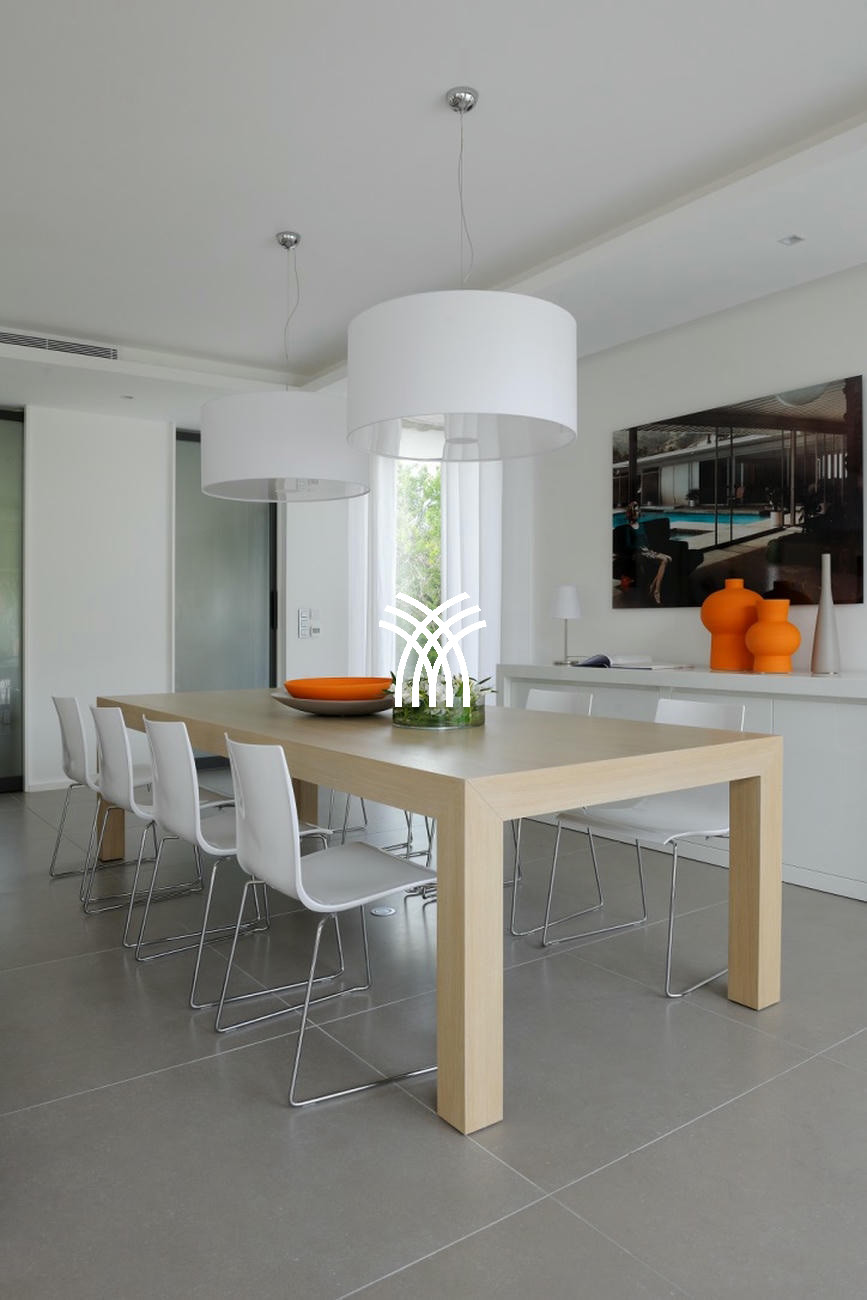 À l’intérieur, la villa dispose de cinq chambres élégantes, chacune avec sa salle de bain privative, garantissant confort et intimité. Le salon lumineux s’ouvre harmonieusement sur l’extérieur, créant une atmosphère apaisante et fluide entre les espaces. Une cuisine moderne, une chambre froide et une buanderie complètent les équipements de cette résidence d’exception.