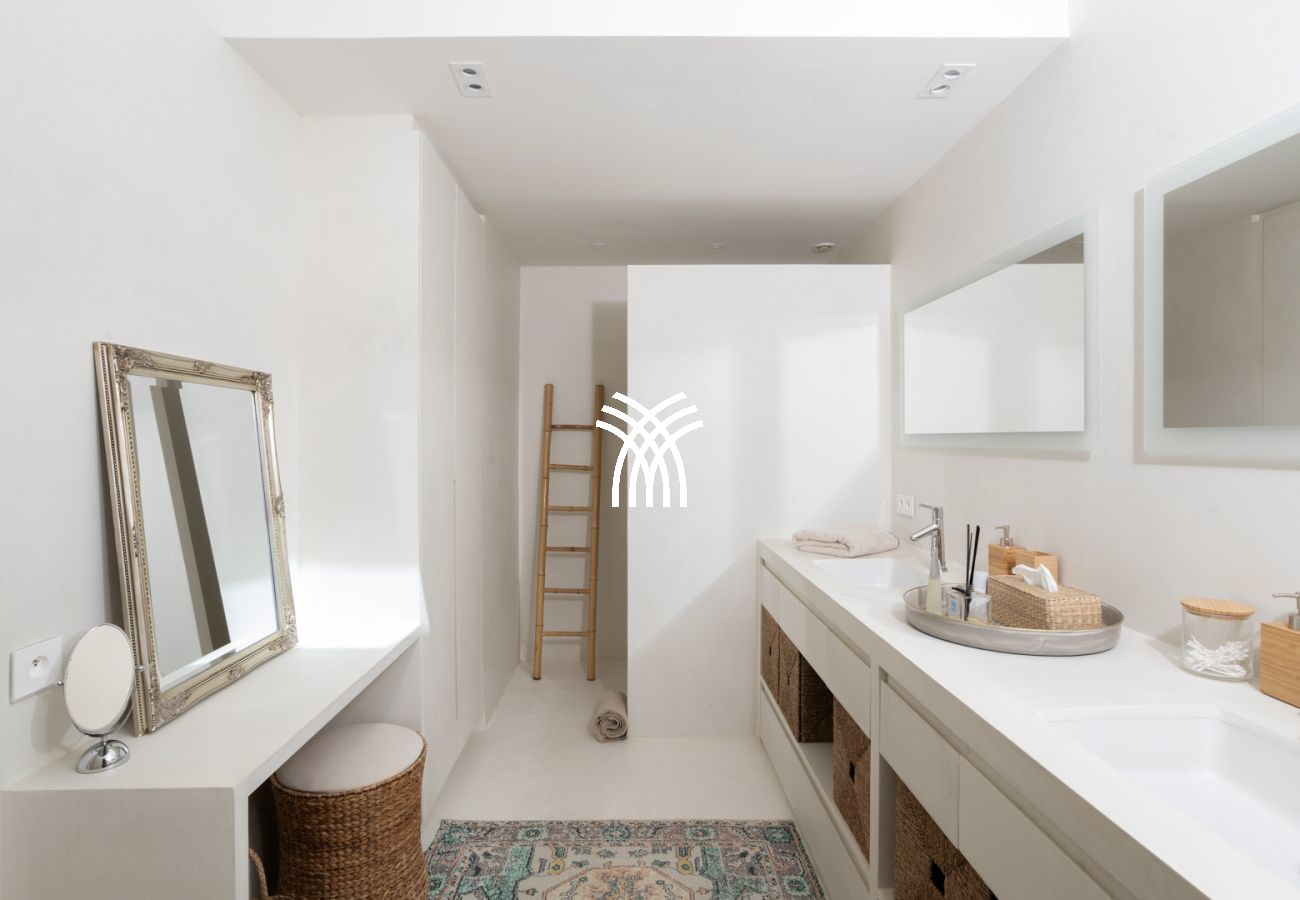 Idéale pour accueillir jusqu’à 8 voyageurs, la villa dispose de quatre chambres et quatre salles de bains, parfaitement agencées pour garantir confort et intimité à chacun. Les espaces de vie intérieurs, climatisés et baignés de lumière, se prolongent naturellement vers l’extérieur, où une magnifique piscine de 14x6 mètres fait face à la Méditerranée.