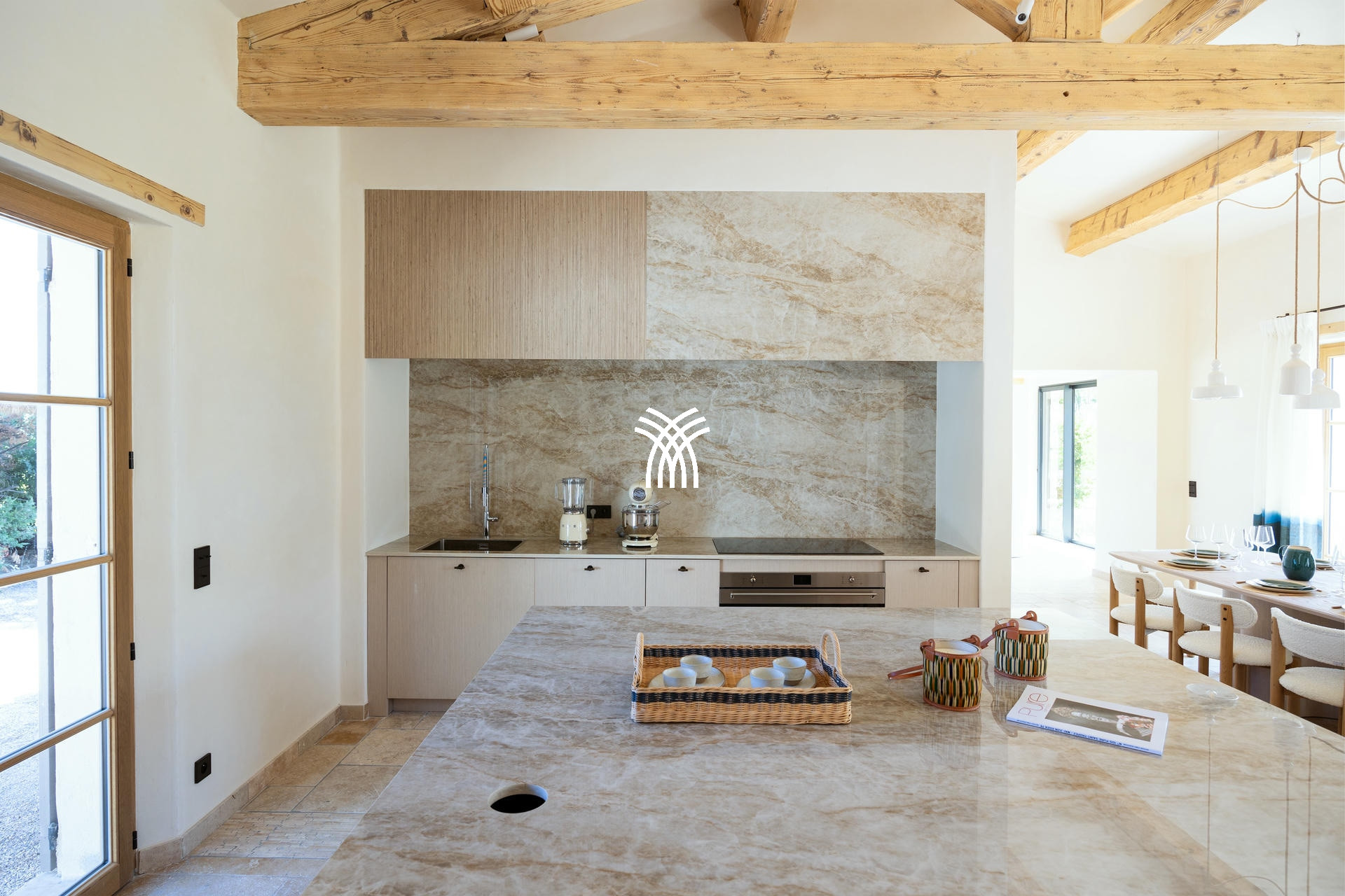 Avec ses six chambres et six salles de bains, elle peut héberger jusqu’à 12 voyageurs dans un confort absolu. Les vastes espaces de vie, décorés avec goût, s’ouvrent harmonieusement sur l’extérieur, où une piscine chauffée de 10x5 mètres, un pool house avec bar, et une cuisine extérieure créent une atmosphère idéale pour profiter pleinement des beaux jours.