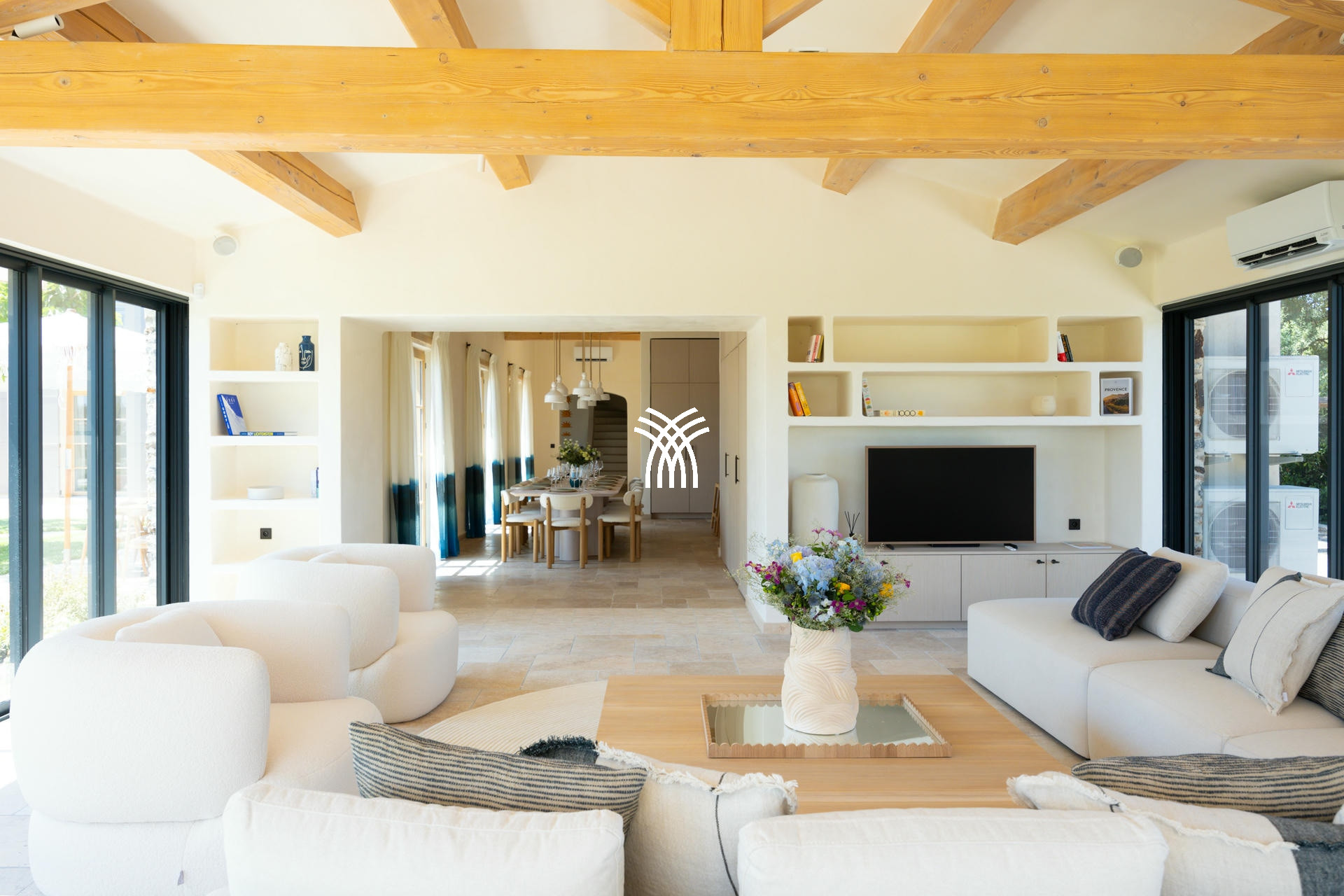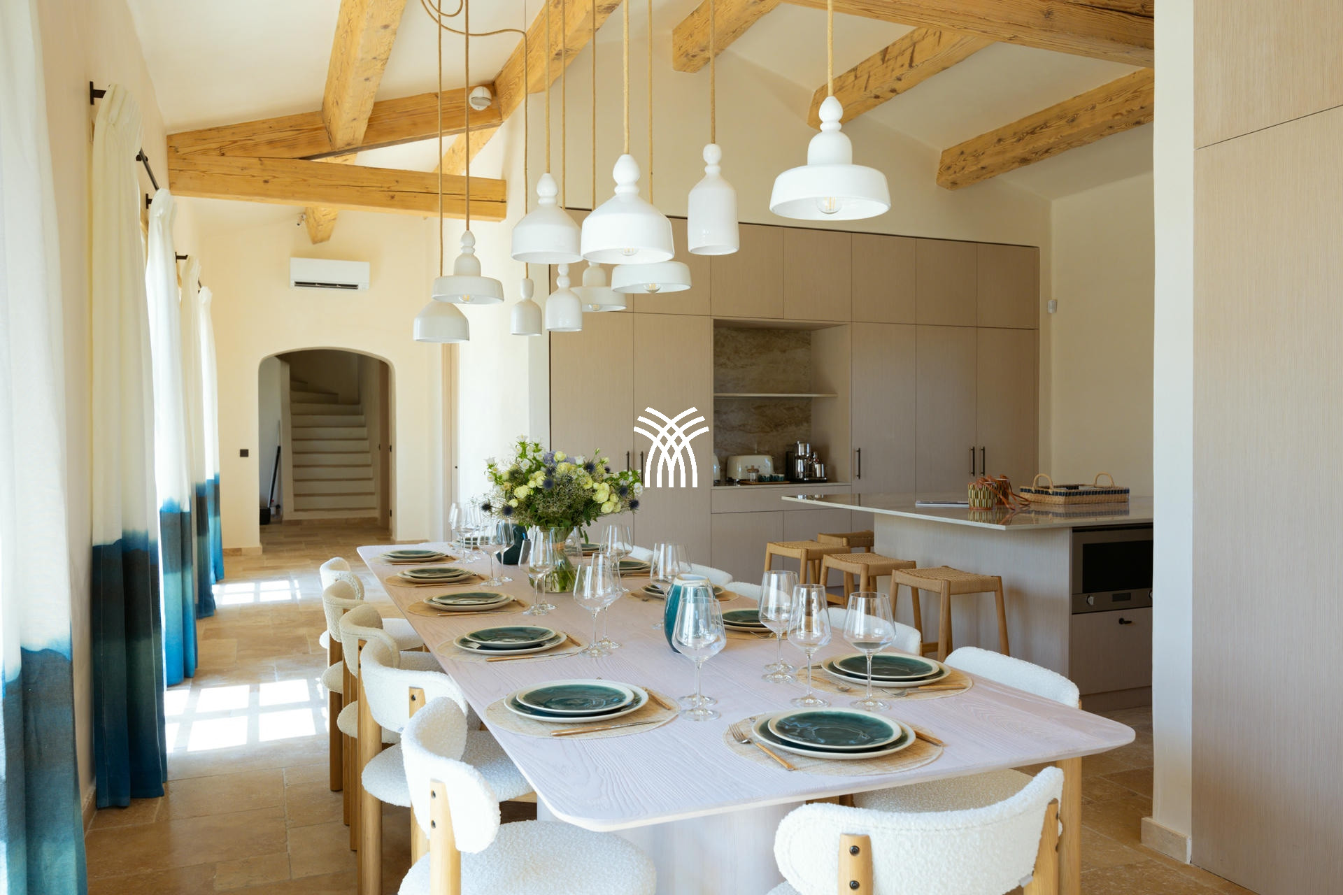 Dotée de six chambres et six salles de bains, la villa accueille jusqu’à 12 voyageurs dans des espaces lumineux et raffinés, pensés pour la détente et les instants partagés. Le design intérieur mêle sobriété contemporaine et touches méditerranéennes, créant une atmosphère chaleureuse et apaisante.
