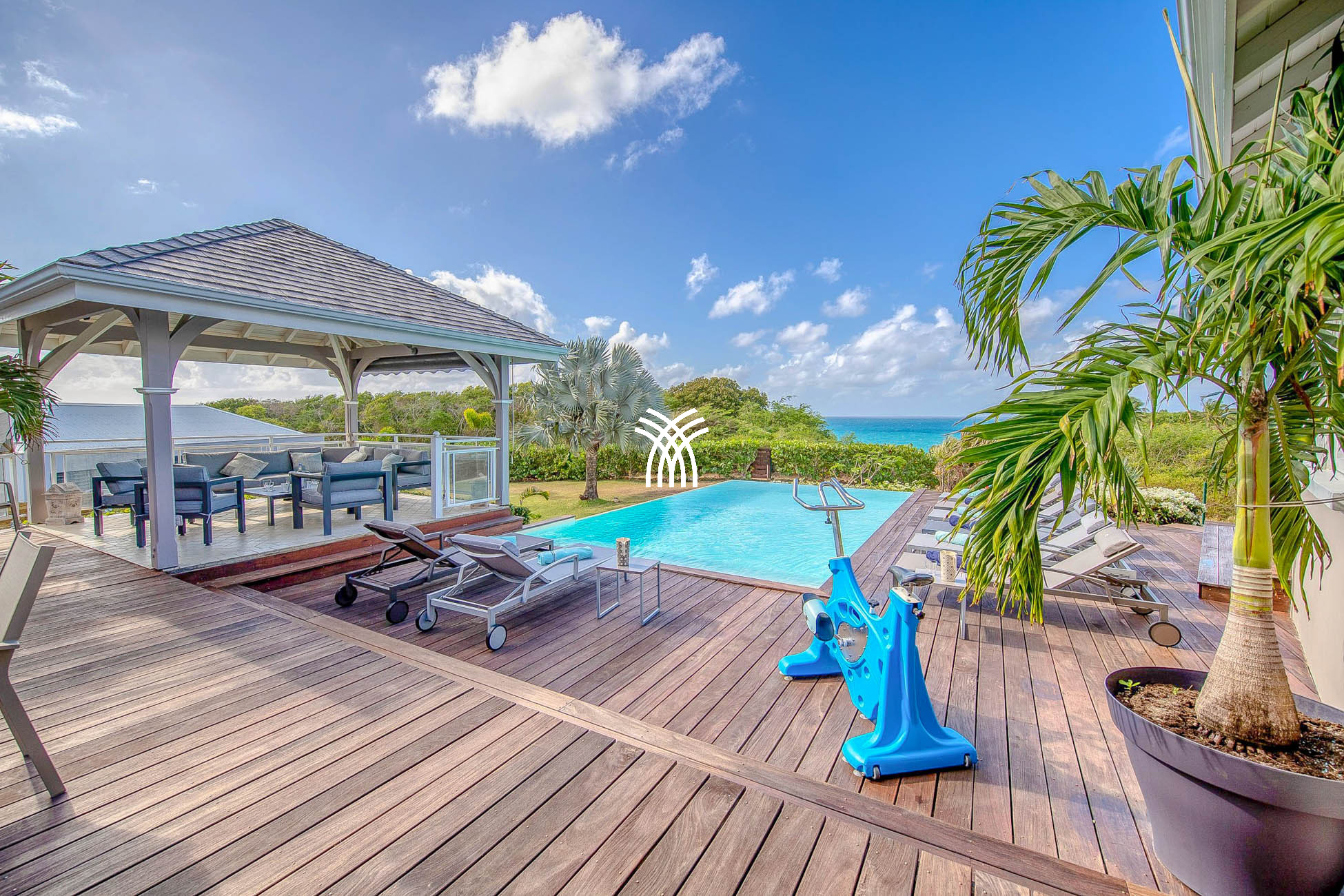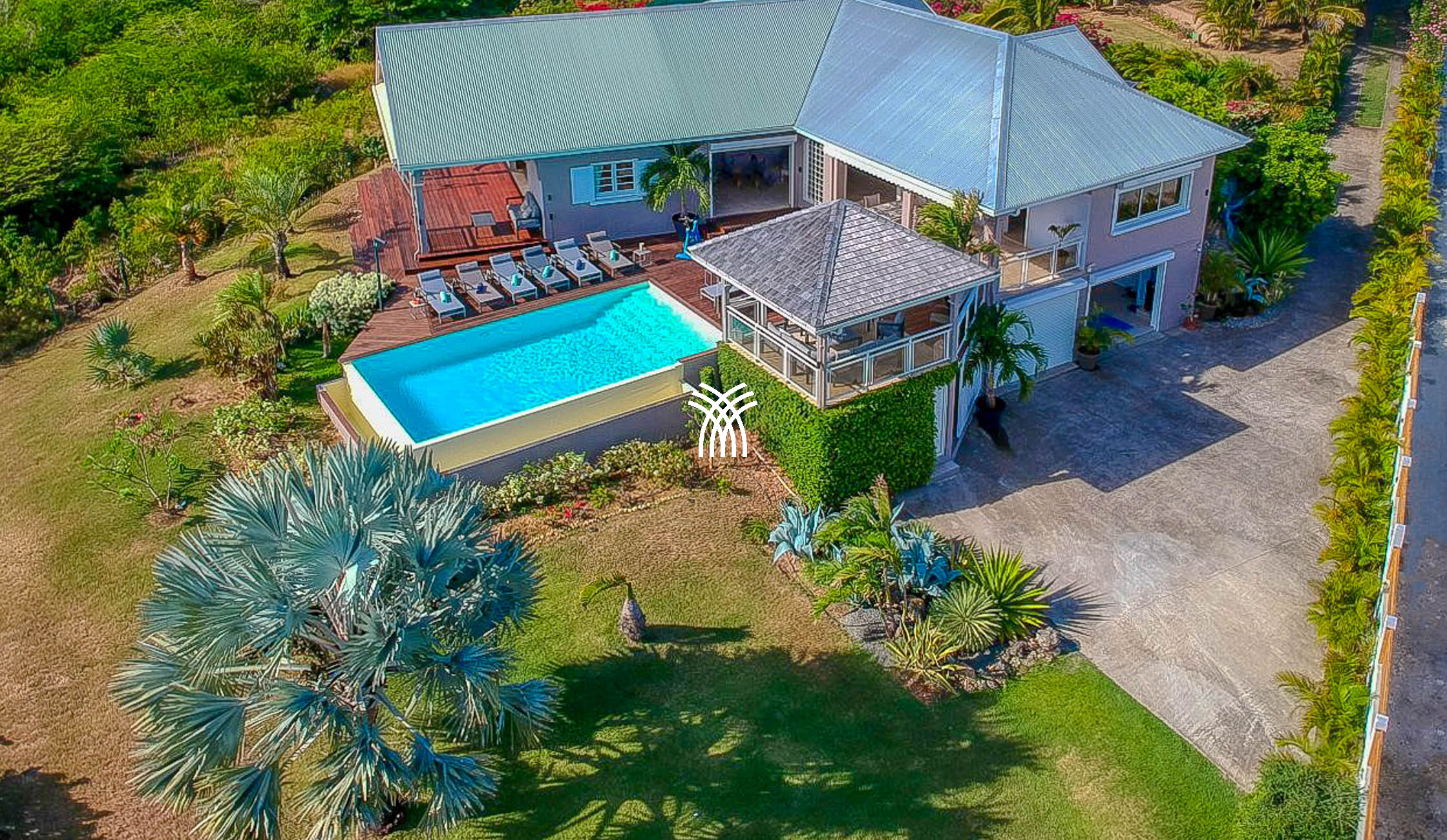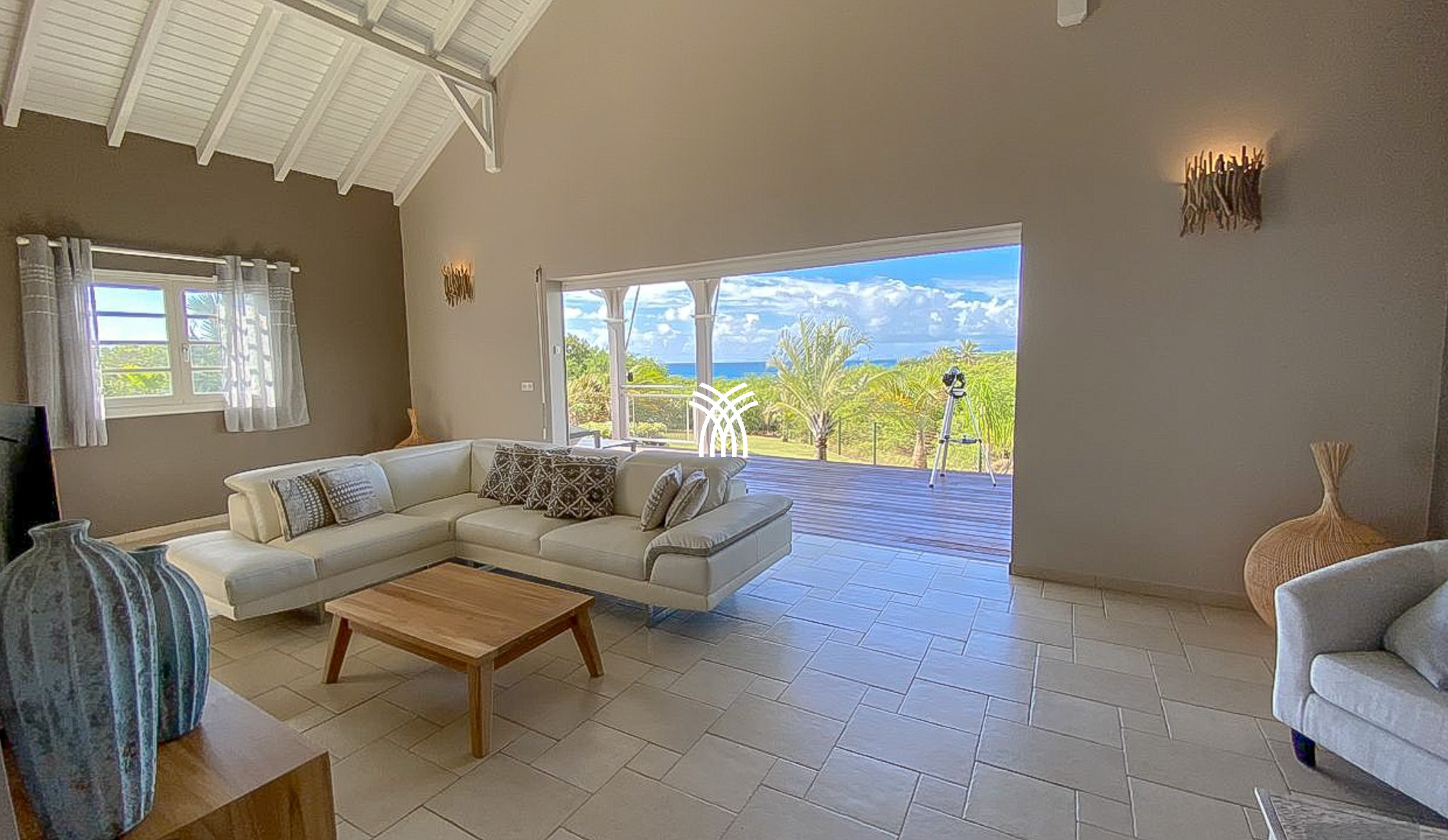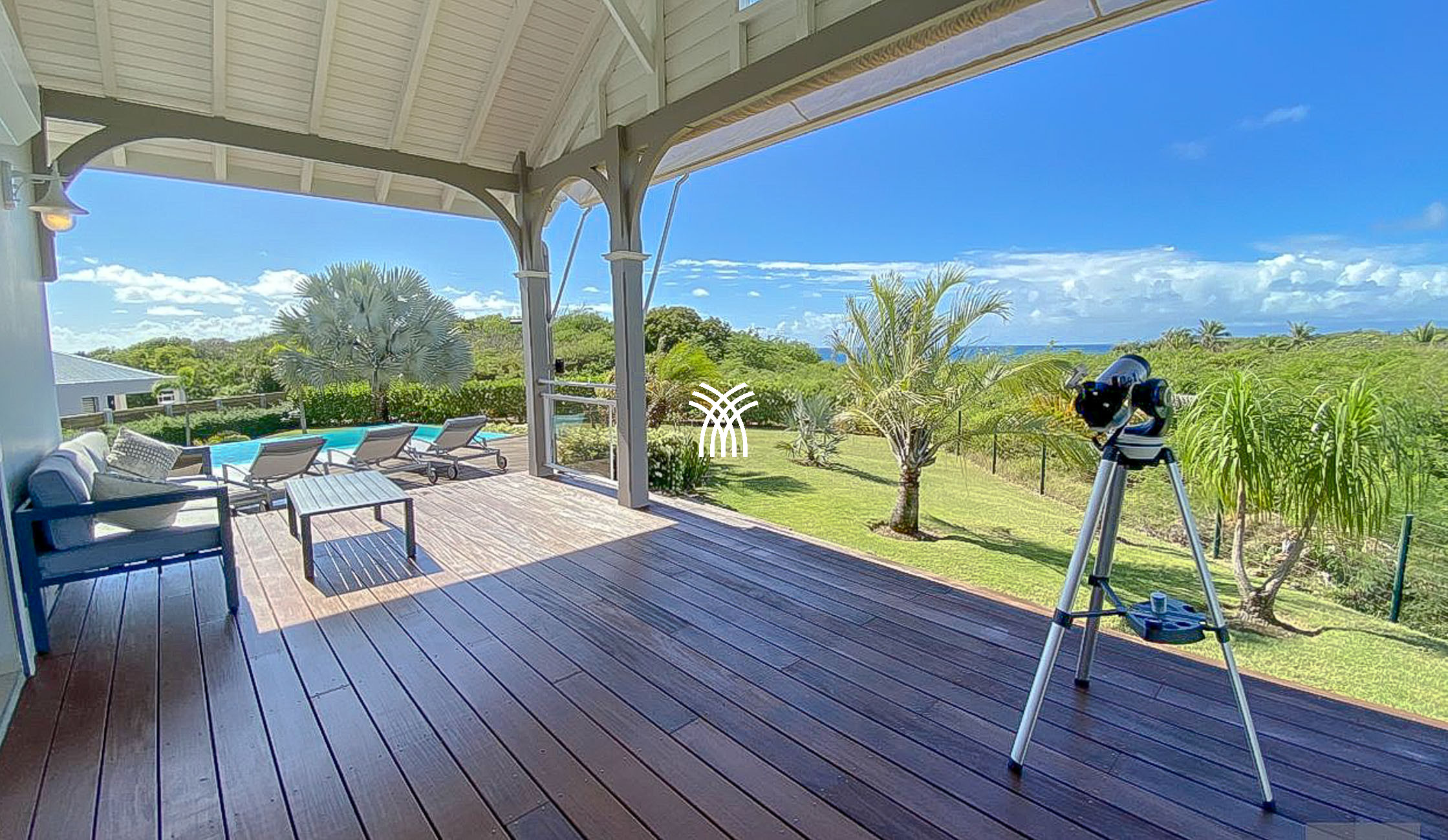 Avec une vue panoramique sur la mer des Caraïbes, les îles de Marie-Galante, Les Saintes, et la majestueuse Soufrière, la Villa Éleuthéra offre un cadre idyllique. Conçue de plain-pied, elle allie raffinement et modernité grâce à son mobilier design et ses équipements haut de gamme.