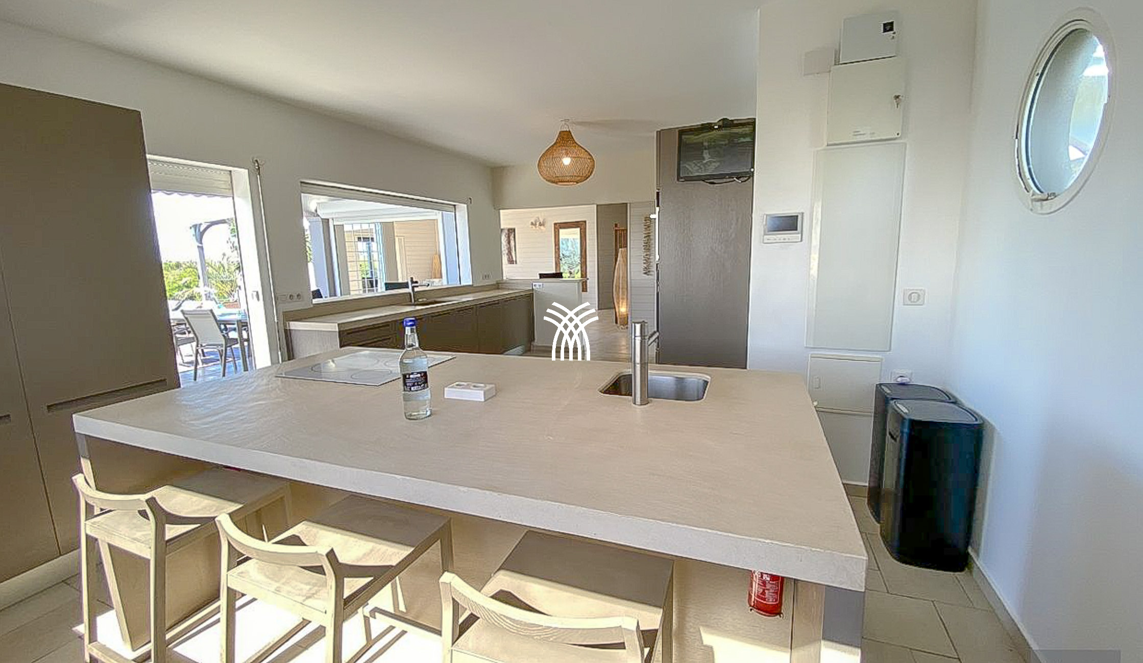 Pour votre confort, le linge de maison est inclus (draps, serviettes de plage, peignoirs, chaussons), et des services supplémentaires comme le ménage ou un chef privé sont disponibles sur demande. La villa est également équipée de tout l’électroménager nécessaire, de la fibre optique, d’une télévision avec CanalSAT et d’une piscine entourée de transats et d’un hamac pour une détente maximale.