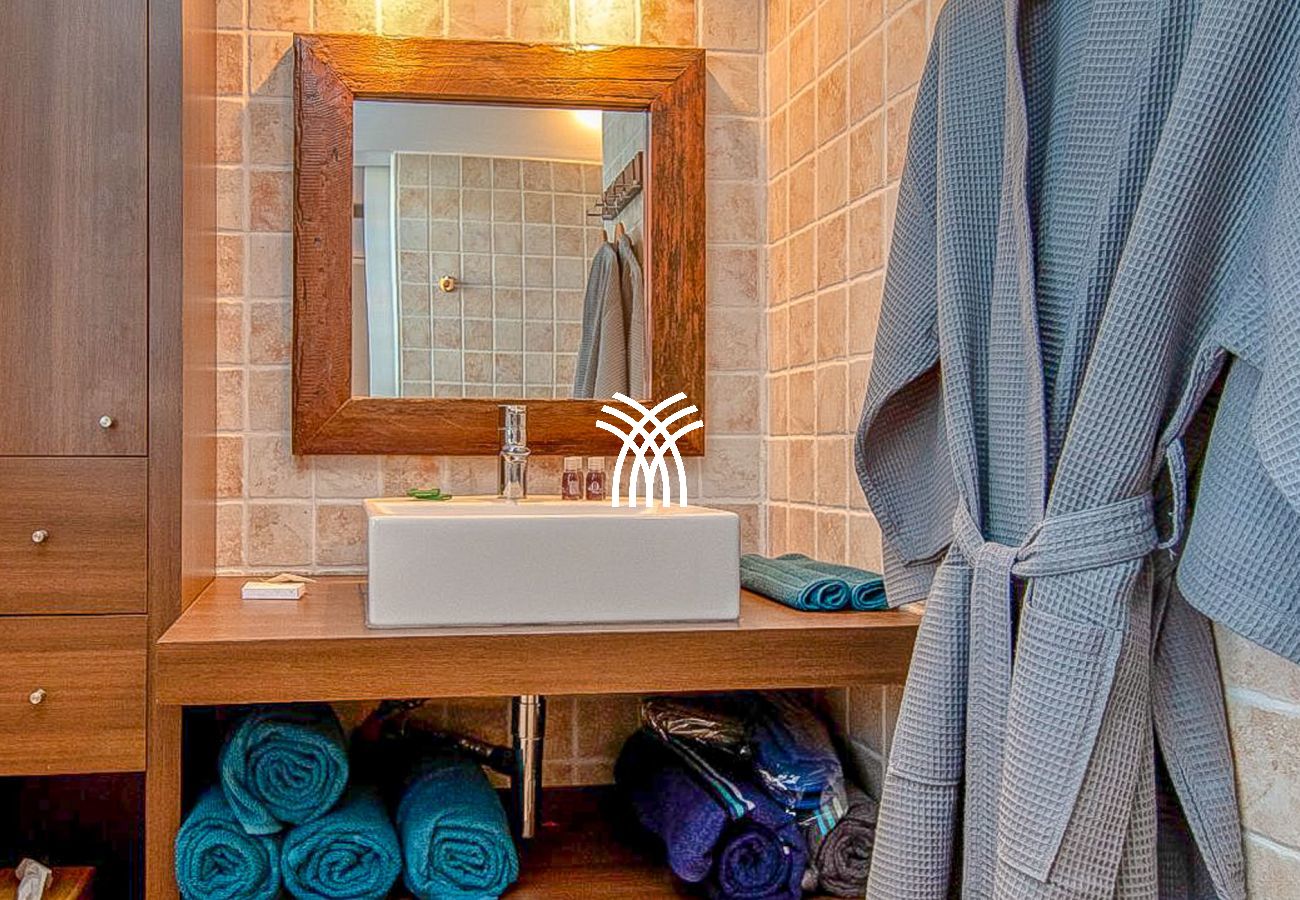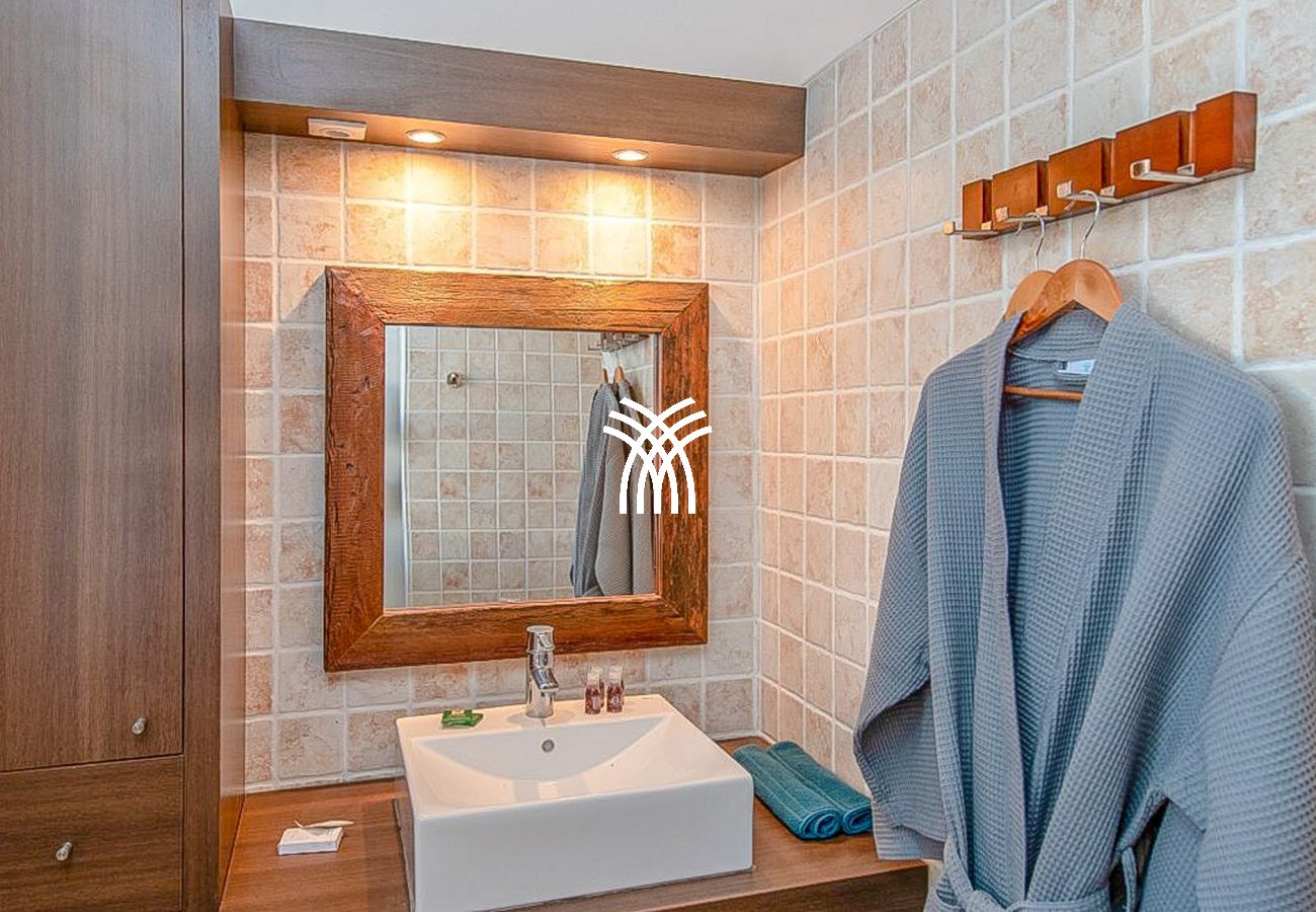 Lit double (140x200), canapé convertible, air-conditionné, salle de bain avec douche et WC dressing,
