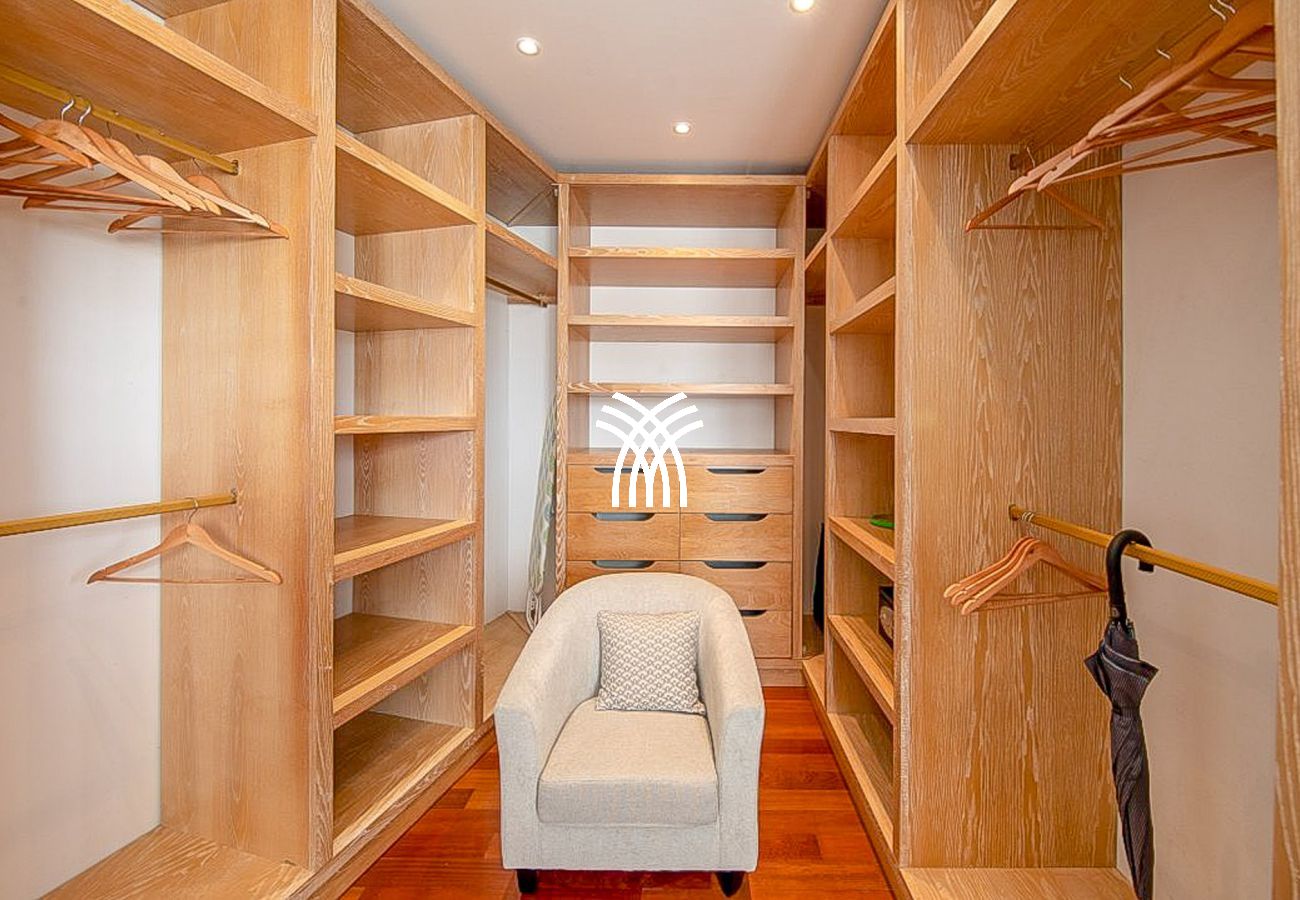 Lit queen size, air-conditionné, salle de bain avec douche et WC, dressing,