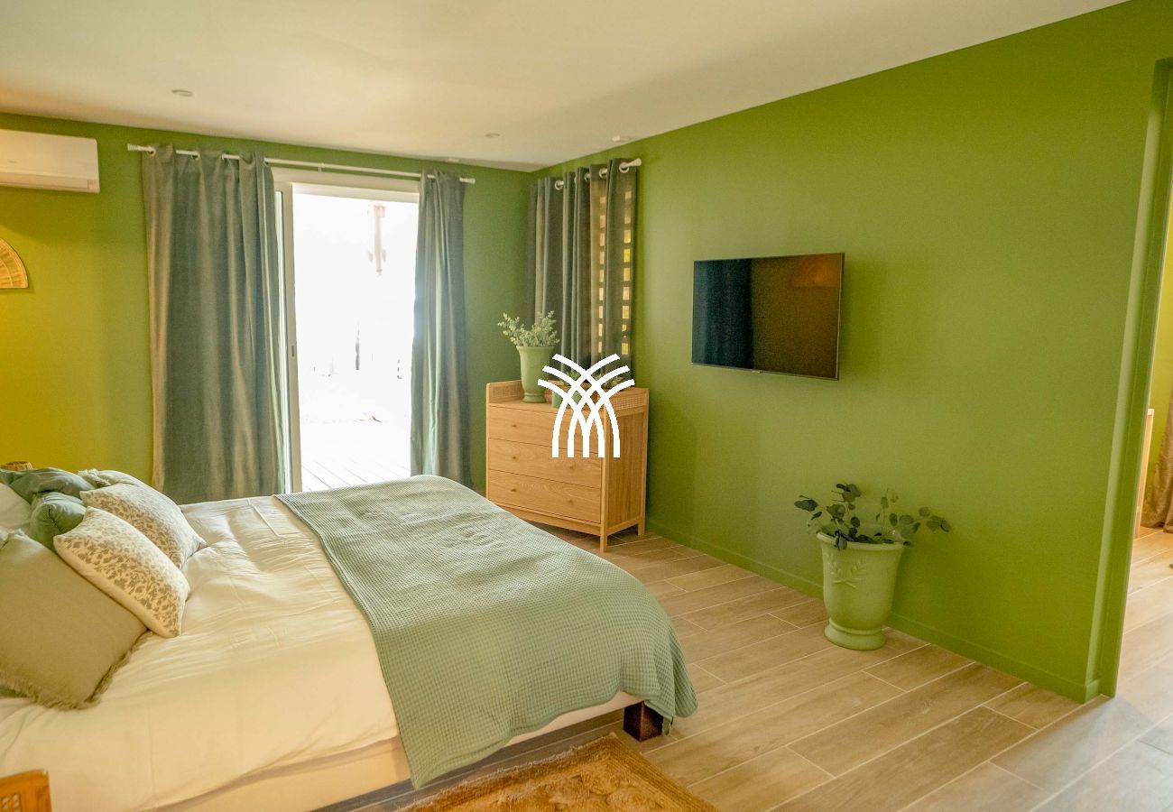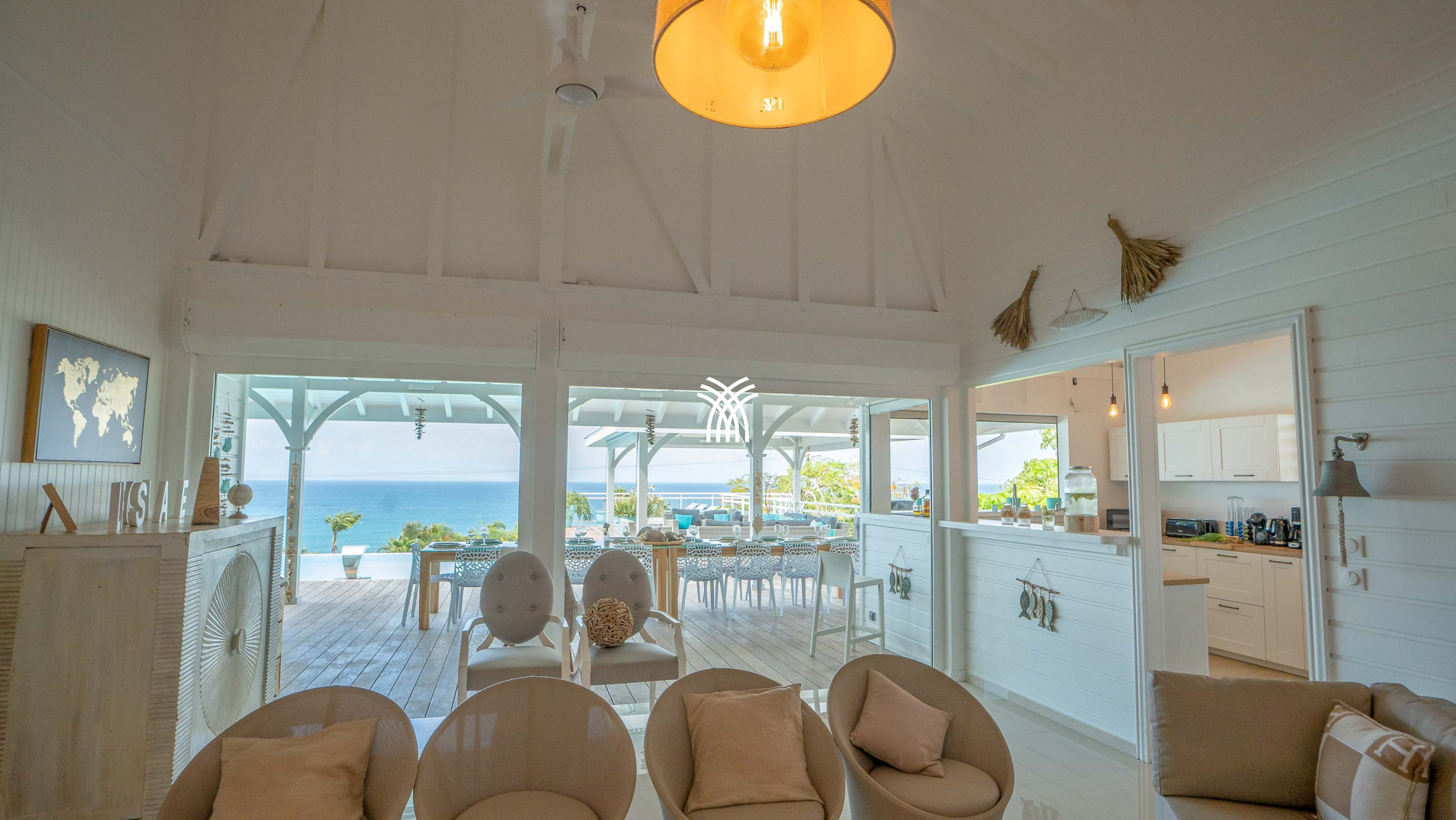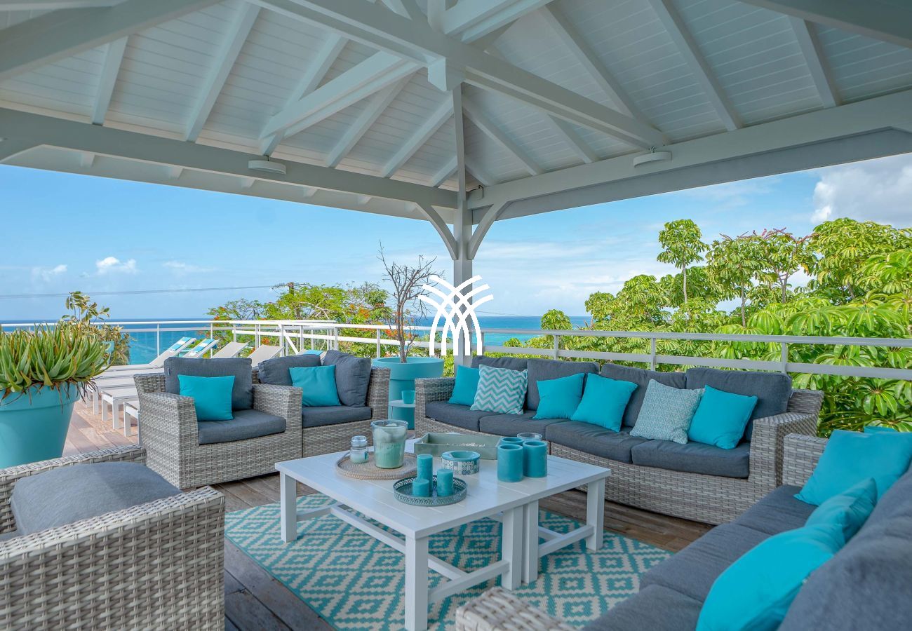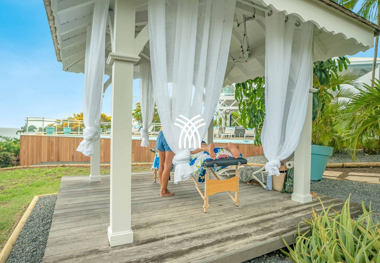 Les terrasses de 300 m², récemment agrandies, offrent de nombreux espaces ombragés propices à la détente. Que ce soit autour de la piscine principale ou à l’abri d’un carbet, chaque coin de la villa invite à la déconnexion totale. L'intérieur comme l'extérieur sont conçus pour que chacun puisse trouver son espace de tranquillité tout en profitant d'instants partagés.