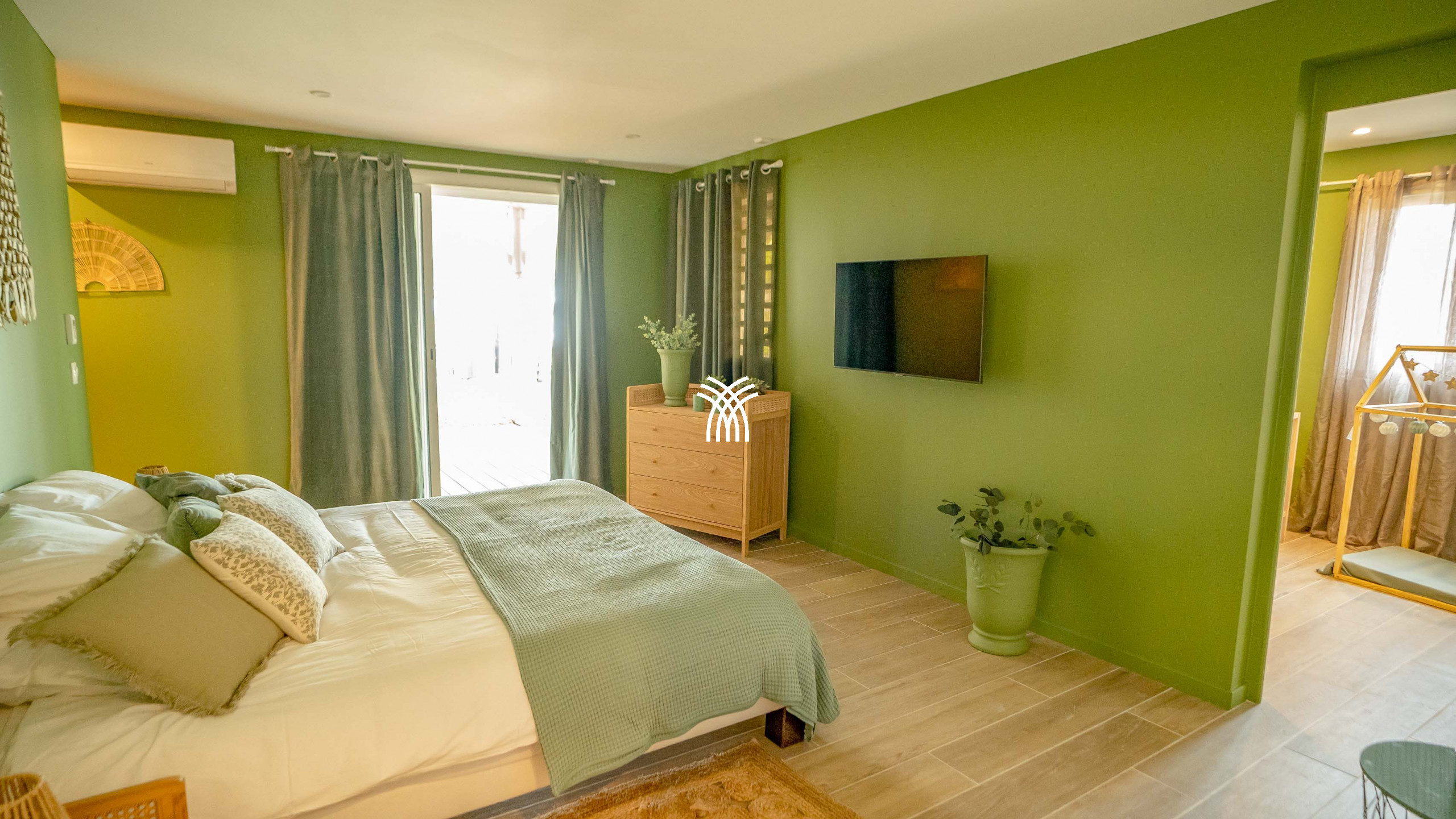 La villa se déploie sur deux niveaux et 2000 m² de terrain, offrant une véritable oasis privative. Chaque détail a été pensé pour le bien-être de ses hôtes : 4 suites avec salle de bain privative, 2 chambres supplémentaires partageant une salle de bain commune, et un dortoir pour enfants pouvant accueillir jusqu’à 8 jeunes voyageurs. Les espaces de vie sont généreux et lumineux, avec une grande capacité d’accueil pour jusqu’à 20 personnes, sans oublier les équipements adaptés aux tout-petits.