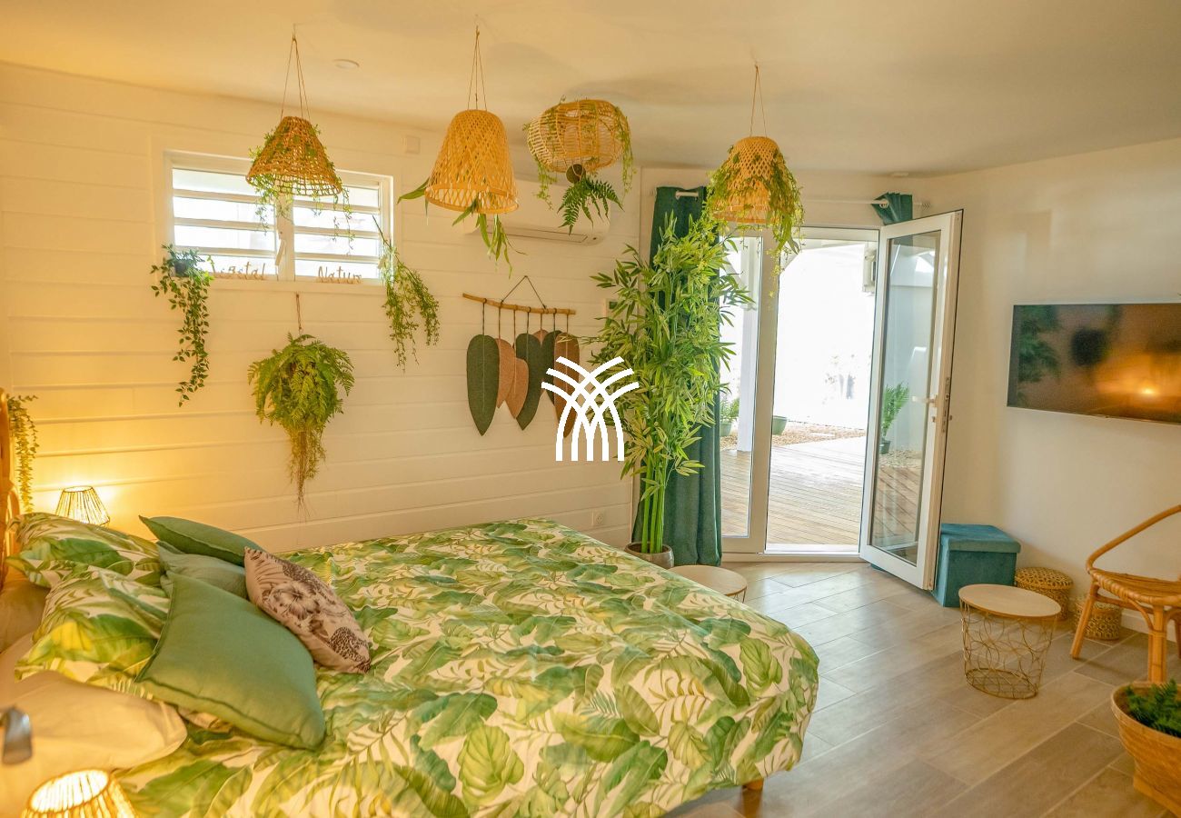 La situation de la villa est un véritable atout. En quelques minutes à pied, vous rejoindrez la plage de Pierre & Vacances, idéale pour une baignade matinale ou un coucher de soleil romantique. Les amateurs de surf seront séduits par la plage de Gros Sable, également accessible à pied, tandis que la plage de Bois Jolan, avec ses eaux peu profondes et ses coins ombragés, promet des journées paisibles en famille à seulement 3 minutes en voiture. Enfin, à 10 minutes, se trouve la célèbre plage du Club Med La Caravelle, l’une des plus belles plages de l’île, prisée pour ses eaux cristallines et son sable fin.