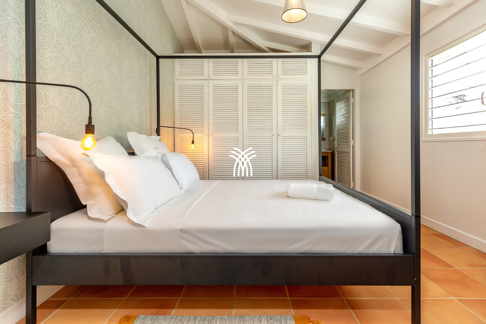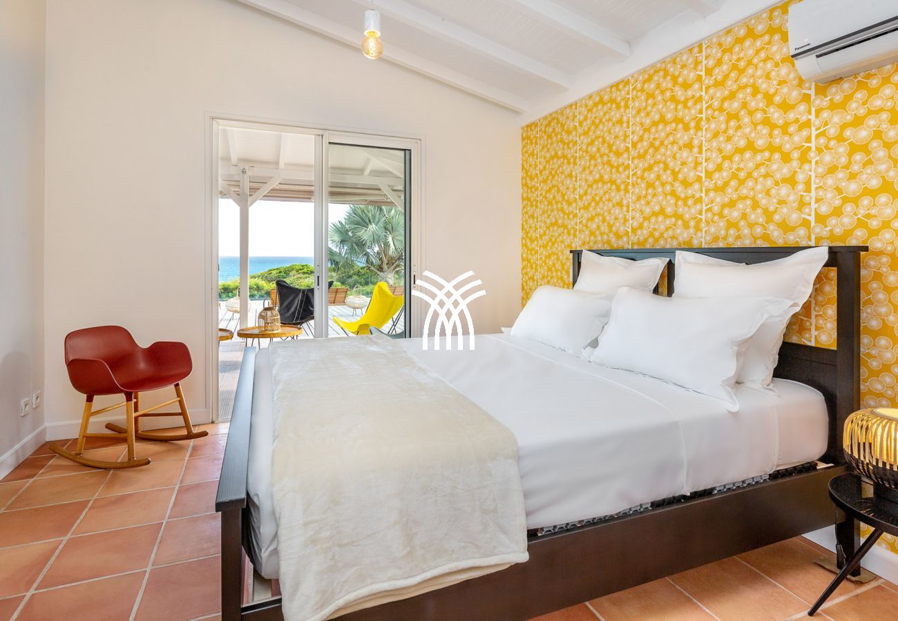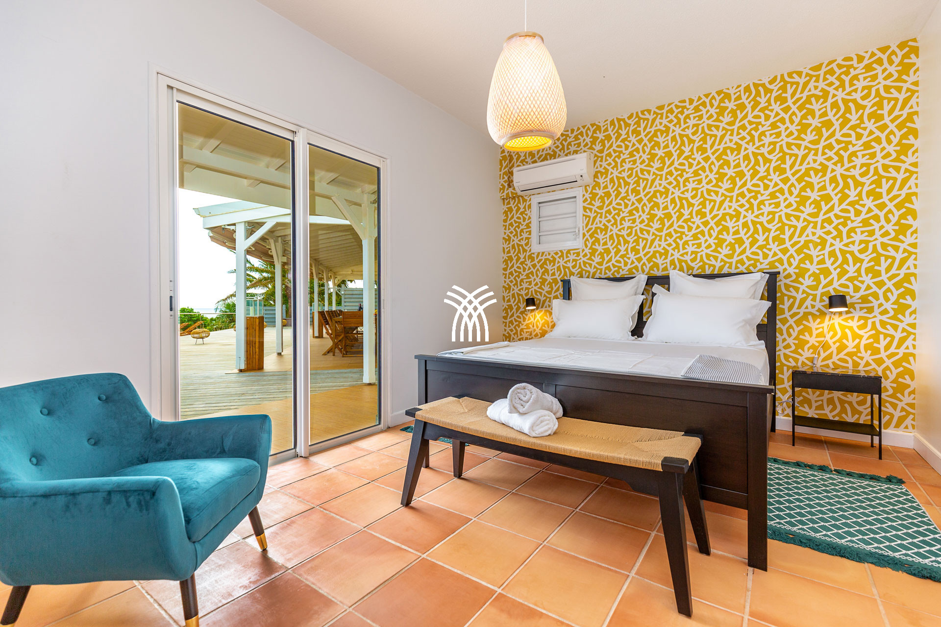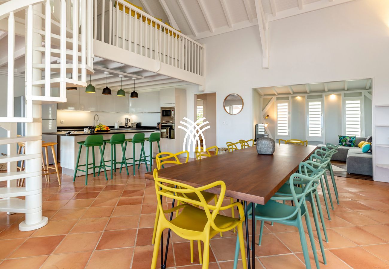 D’inspiration locale, la Villa Flibustier mêle avec élégance l’authenticité créole et le confort moderne, offrant un espace raffiné et fonctionnel pouvant accueillir jusqu’à 10 adultes et 2 bébés. Avec ses 220 m² d’espaces soigneusement aménagés, elle dispose de cinq chambres climatisées, dont une somptueuse suite parentale avec dressing, salle de bain privative et accès direct à la terrasse avec vue mer. Les autres chambres, équipées de lits Queen Size ou de lits jumeaux, bénéficient également de salles de douche privatives ou partagées, et offrent tour à tour des panoramas sur l’océan ou un cadre paisible côté jardin. Une mezzanine ouverte sur le salon permet d’accueillir deux enfants supplémentaires grâce à des lits gigognes.