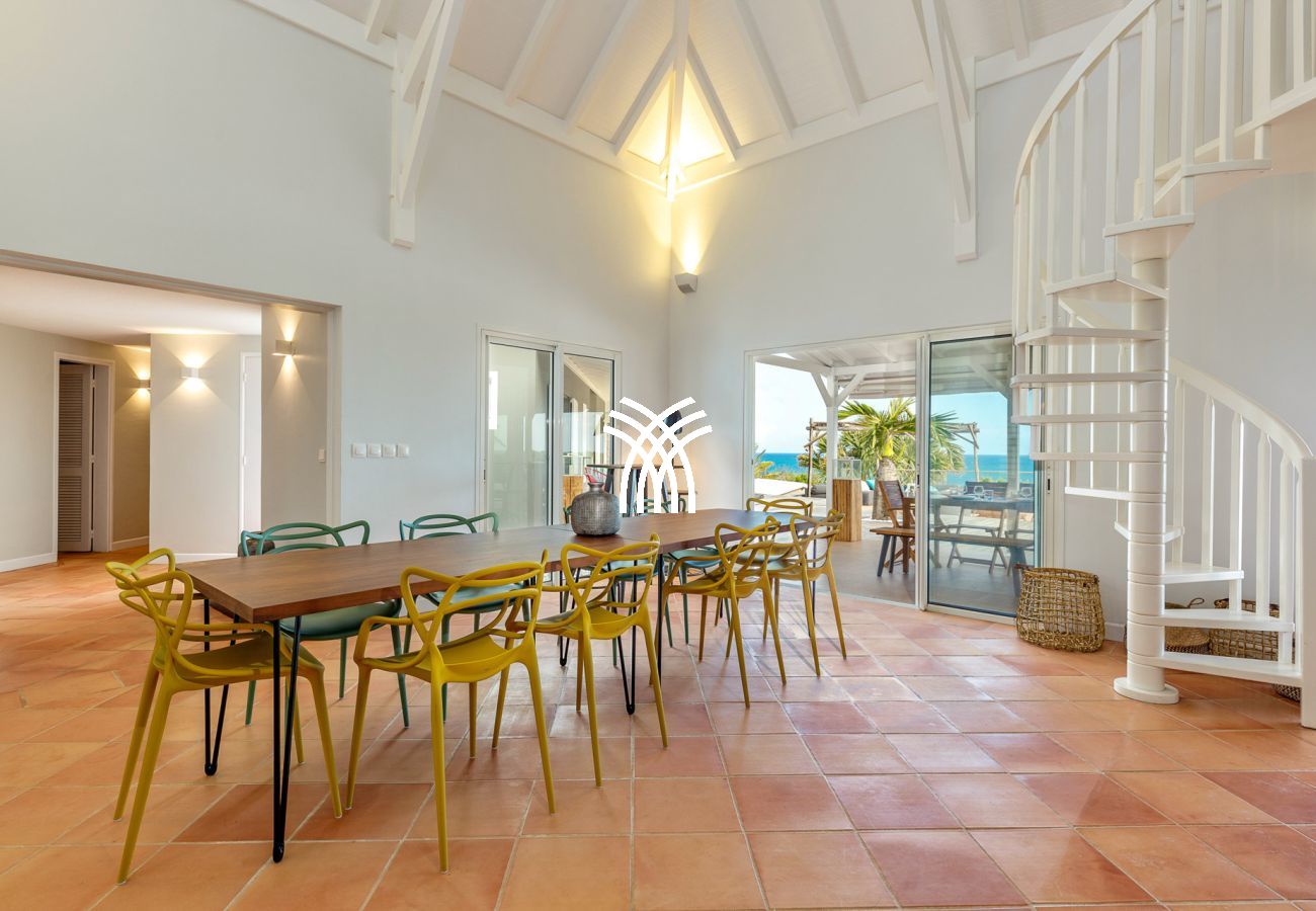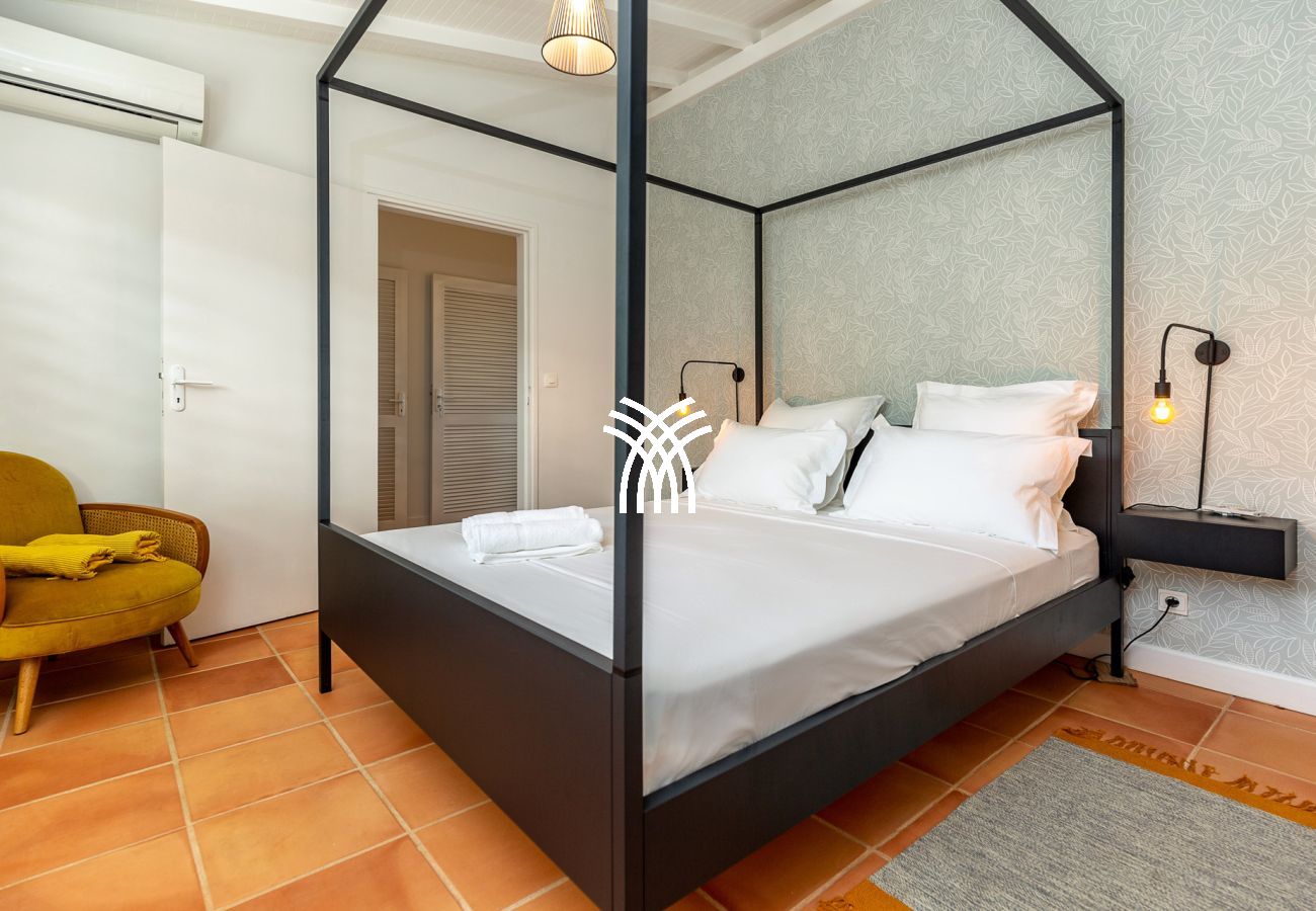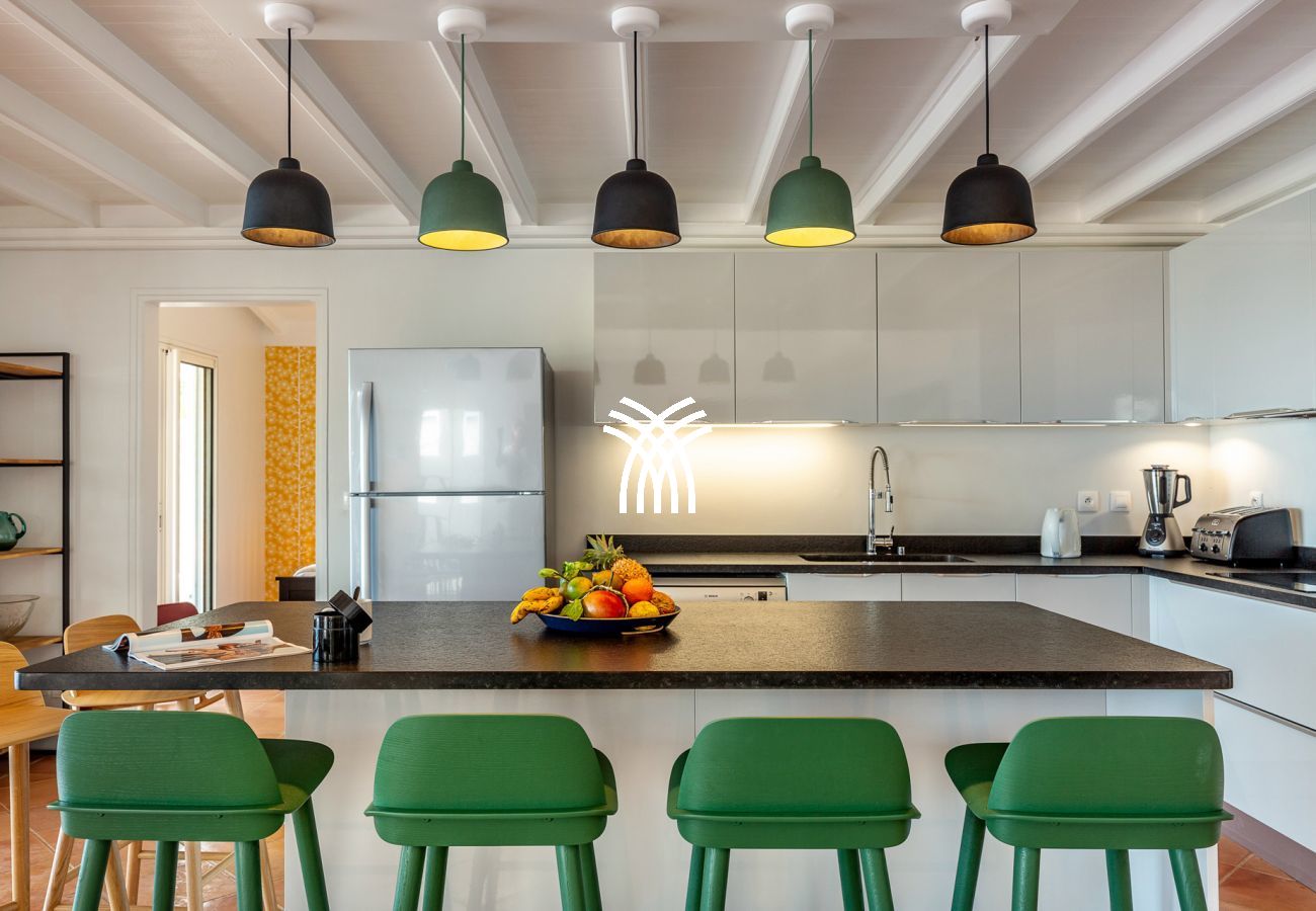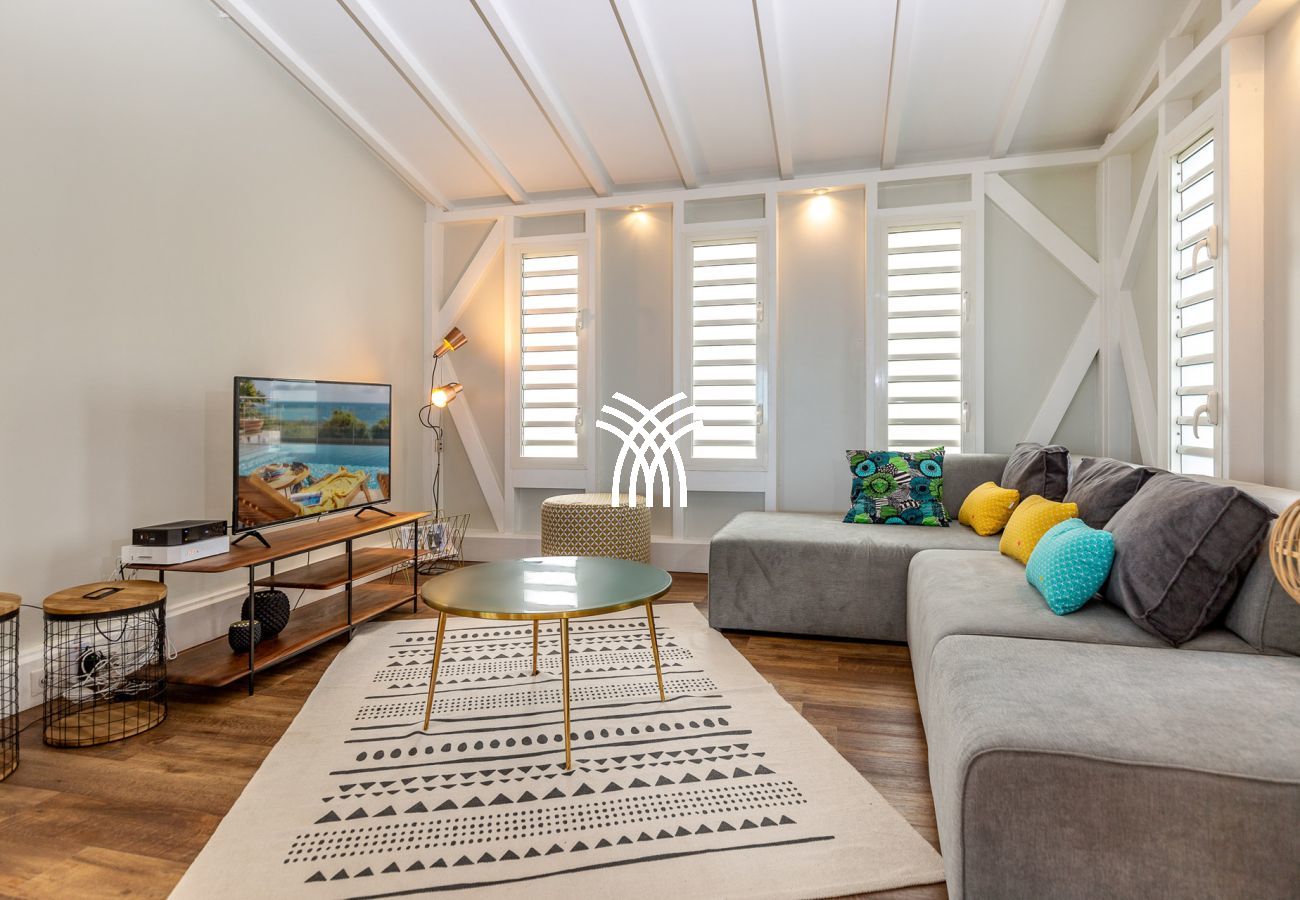 D’inspiration locale, la Villa Flibustier mêle avec élégance l’authenticité créole et le confort moderne, offrant un espace raffiné et fonctionnel pouvant accueillir jusqu’à 10 adultes et 2 bébés. Avec ses 220 m² d’espaces soigneusement aménagés, elle dispose de cinq chambres climatisées, dont une somptueuse suite parentale avec dressing, salle de bain privative et accès direct à la terrasse avec vue mer. Les autres chambres, équipées de lits Queen Size ou de lits jumeaux, bénéficient également de salles de douche privatives ou partagées, et offrent tour à tour des panoramas sur l’océan ou un cadre paisible côté jardin. Une mezzanine ouverte sur le salon permet d’accueillir deux enfants supplémentaires grâce à des lits gigognes.