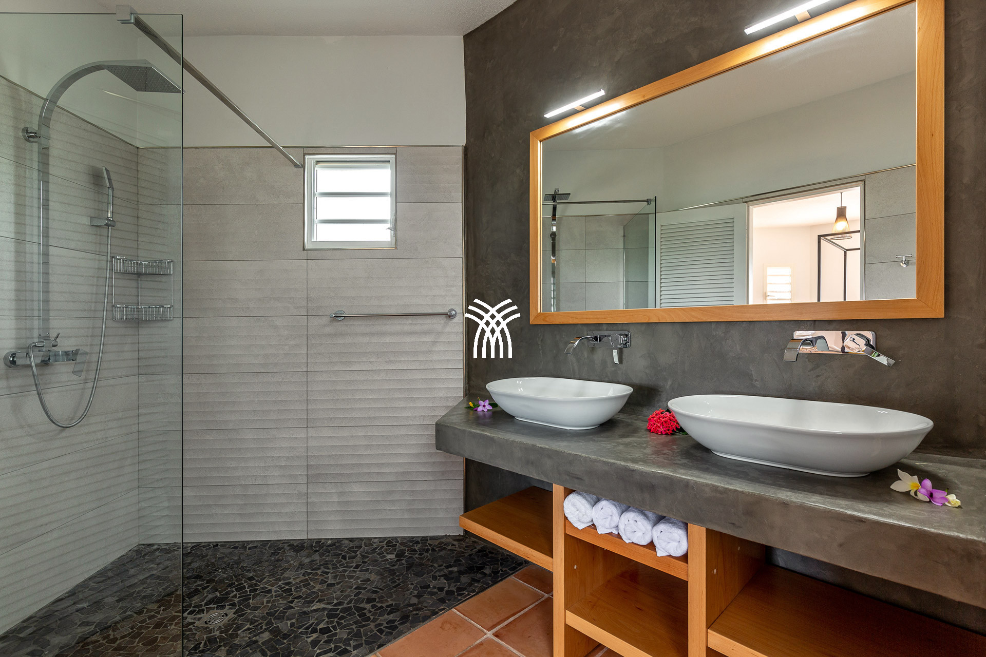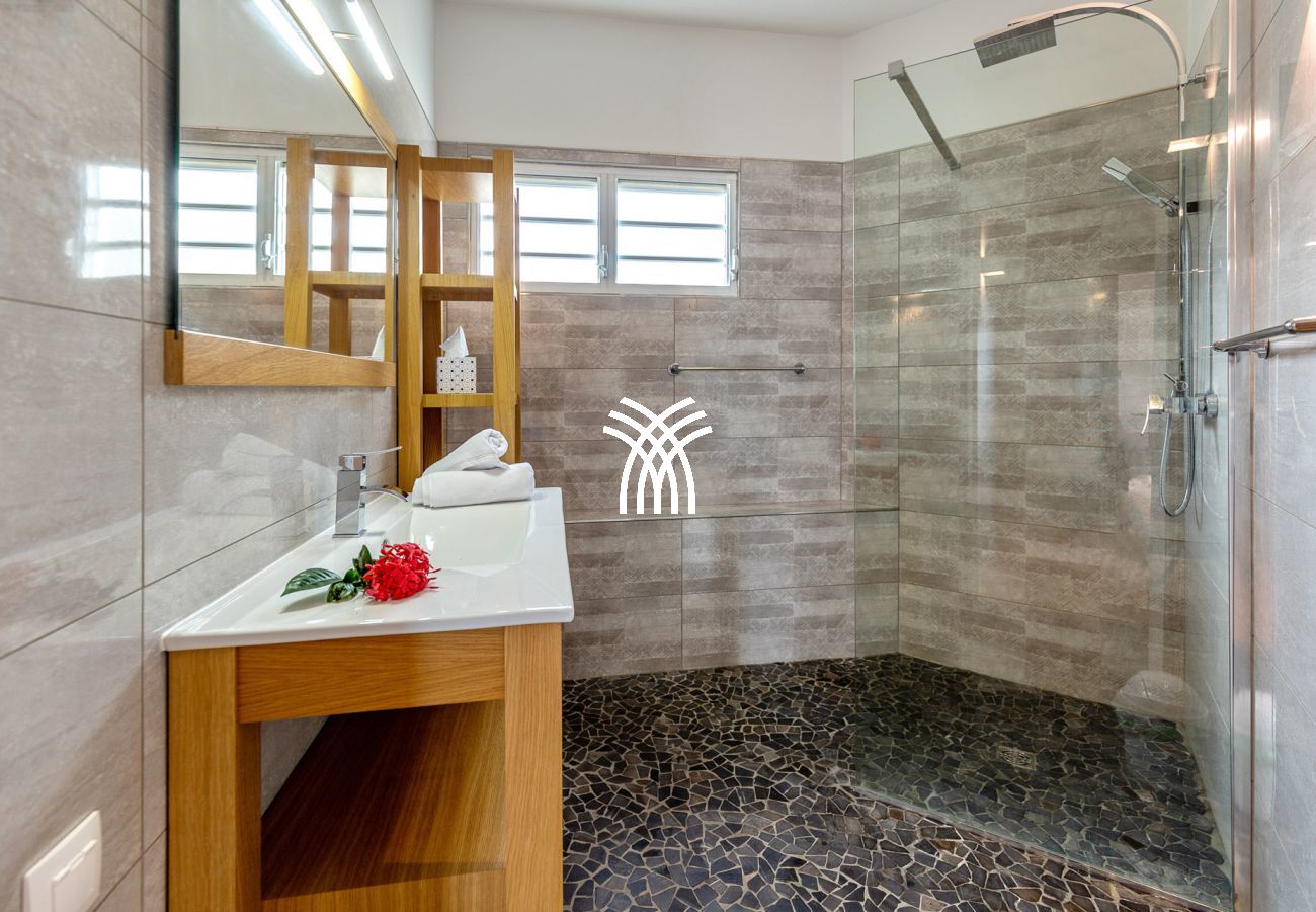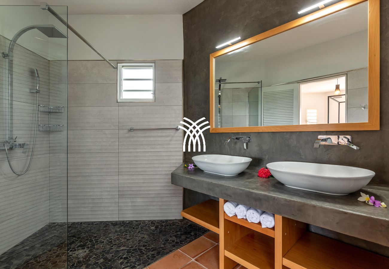 Villa Yin & Yang Guadeloupe offre une belle superficie de 300m2 avec un deck de 125 m2 et équipée de matériaux modernes et de qualité.