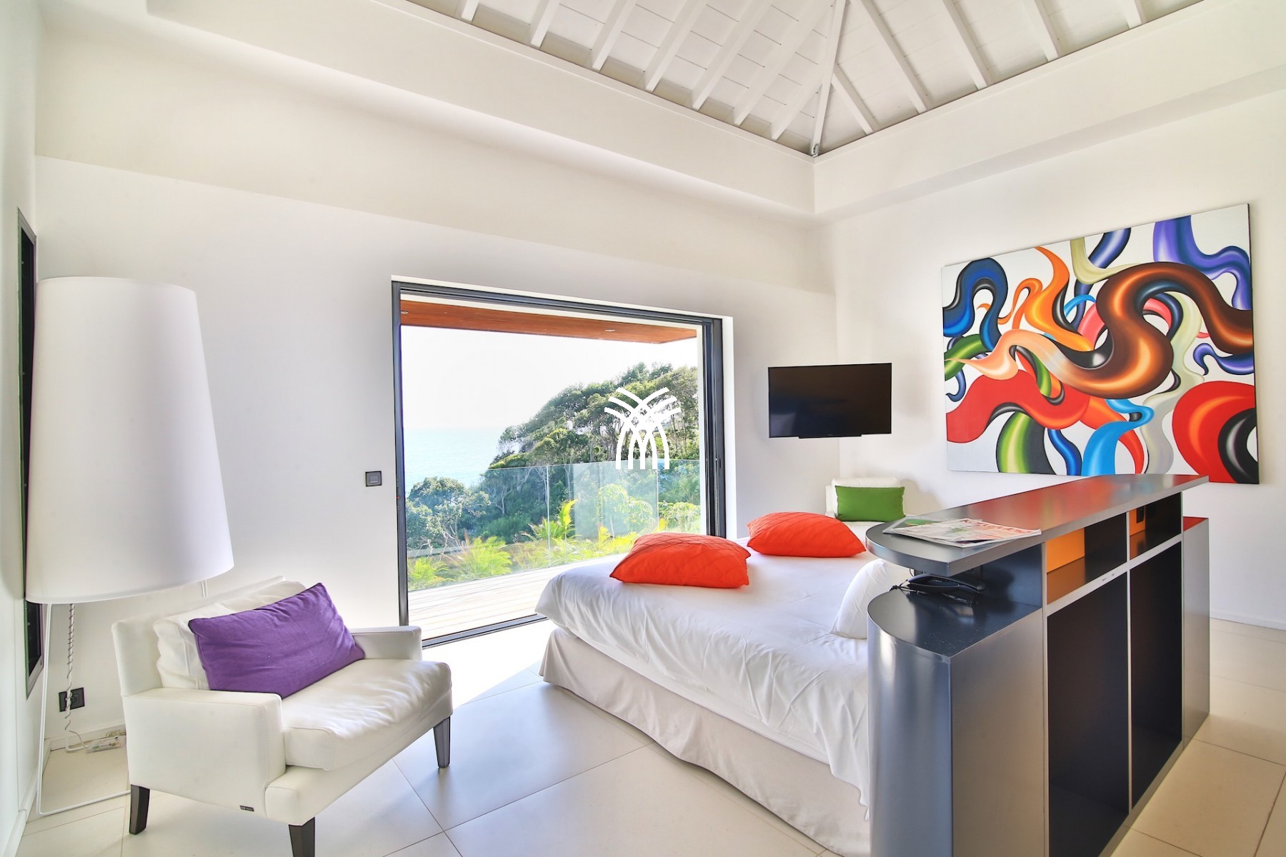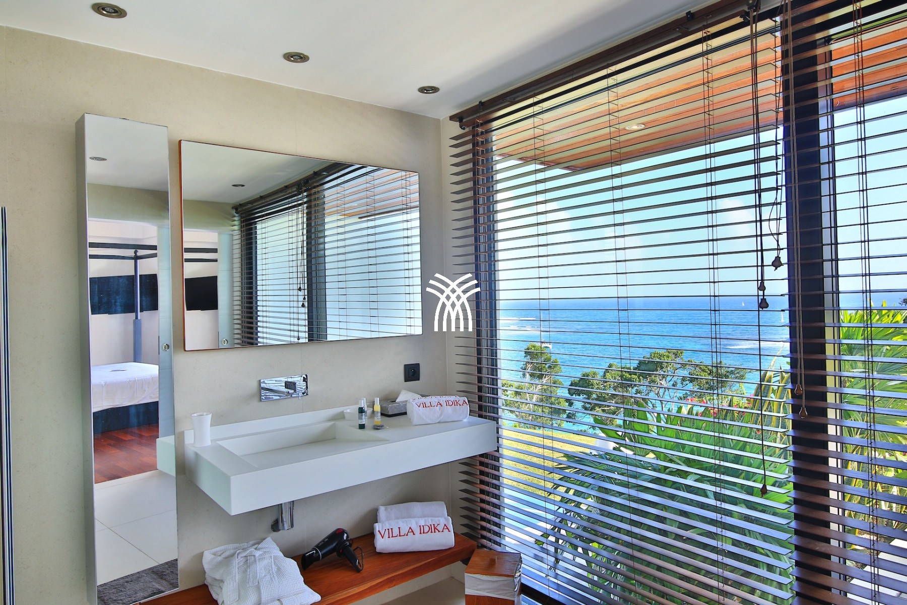 Lit queen size (160 x 200m) avec moustiquaire, air-conditionné, salle d'eau avec douche, dressing, bureau, accès balcon avec vue mer