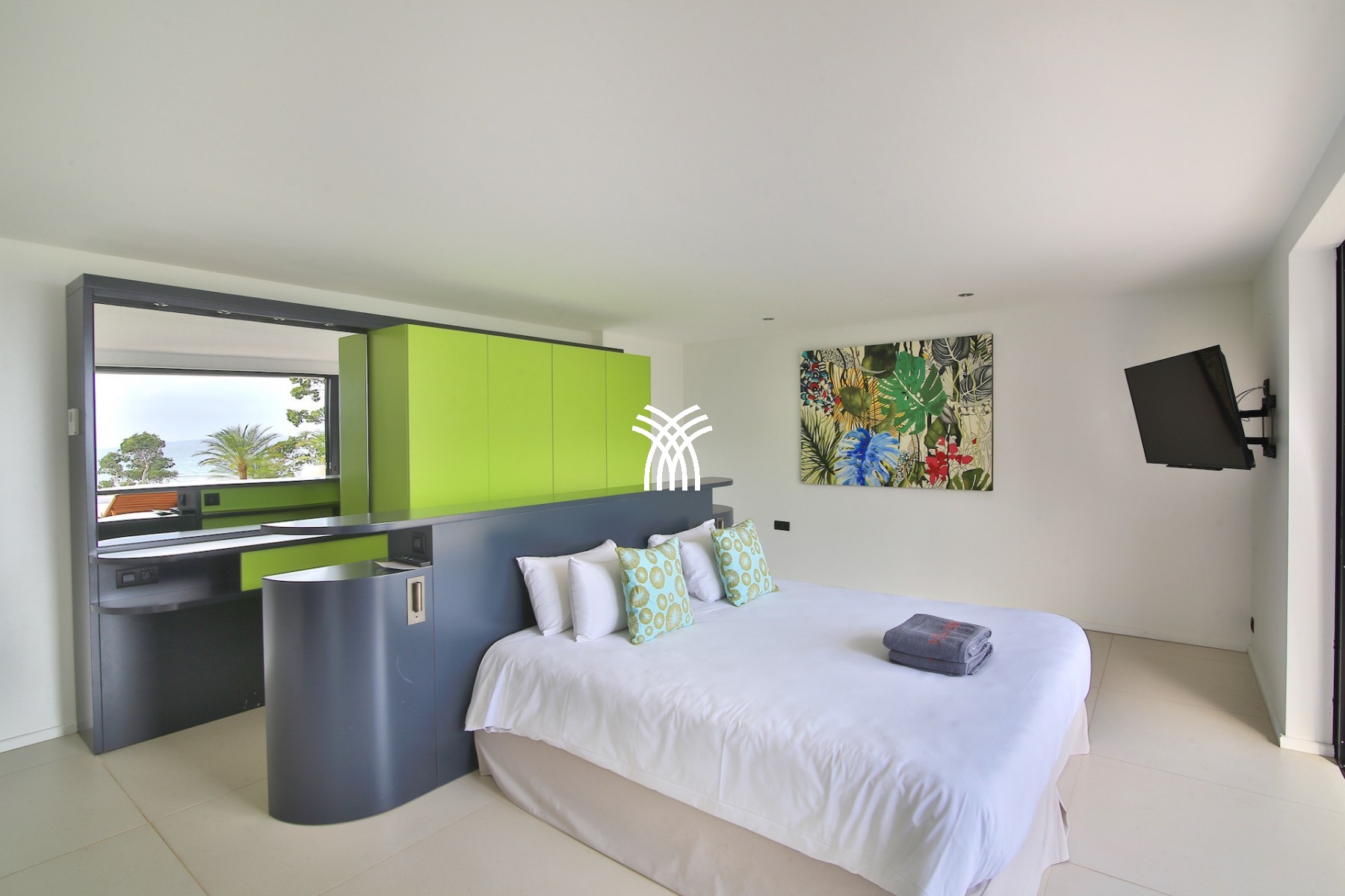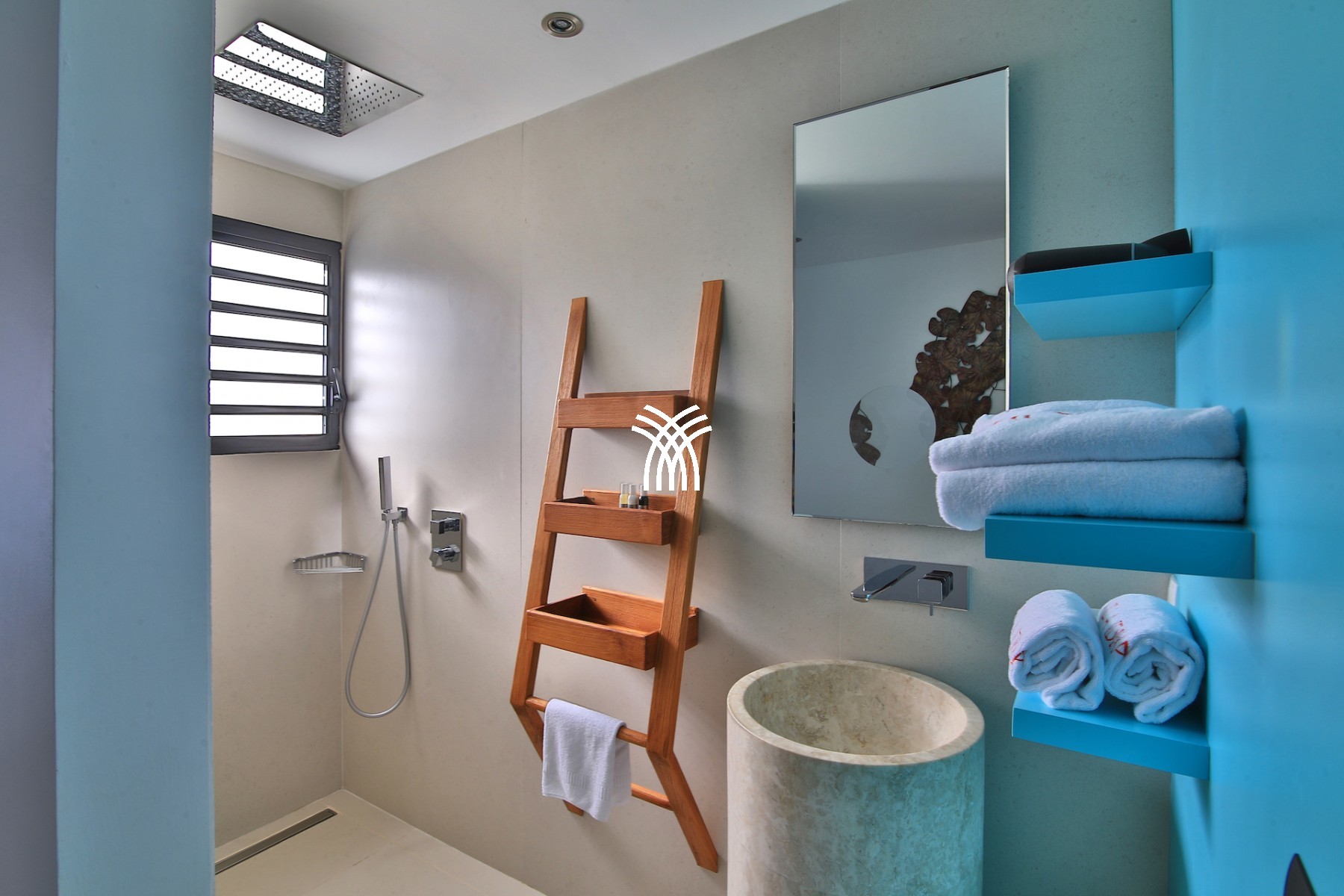 La Villa Zen Guadeloupe dispose de 4 chambres avec 4 salles de bain privées, astucieusement disposée en trois modules. Une pièce à vivre comprenant un salon TV, une cuisine spacieuse, une salle à manger, le tout est ouvert sur une grande terrasse avec piscine à débordement donnant sur l’océan. Un espace nuit auquel on accède par une galerie, avec une suite parentale au rez-de-chaussée, deux chambres avec balcon à l'étage, disposant chacune d’une salle d'eau, et un bungalow qui est totalement indépendant. Ce dernier avec un accès extérieur, possède un lit queen au niveau de la mezzanine, au rez-de-chaussée, un canapé-lit pouvant être séparé en 2 lits simples pour 2 enfants, un dressing et une salle de bains.