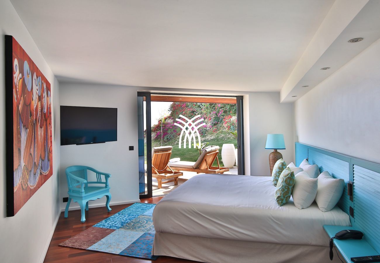 Lit queen size, air conditionné, salle de bain avec douche et WC, dressing, TV, vue mer, accès terrasse,