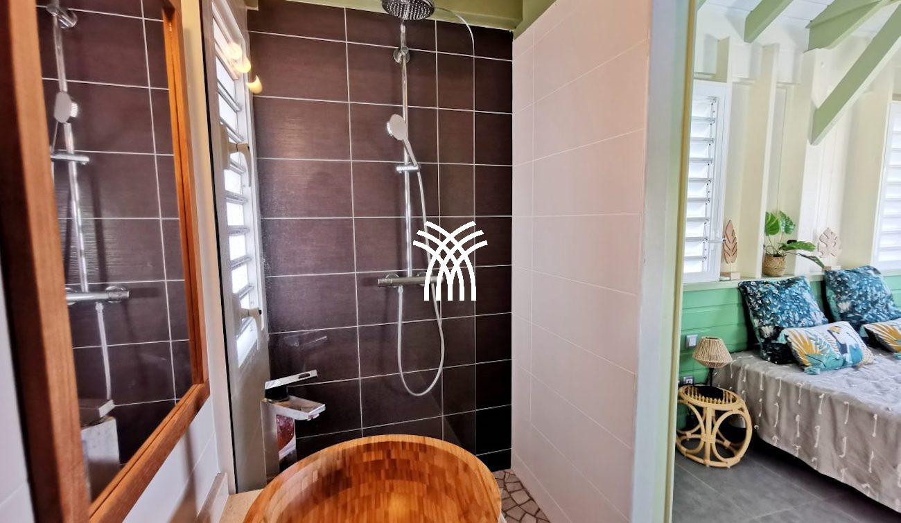 A l’extérieur, vous pourrez prendre l’apéritif sous le carbet à l’ombre et contempler la vue mer. Un petit plongeon pour se retrouver rapidement dans la piscine à débordement. Le + son bain à remous pour contempler le coucher du soleil .