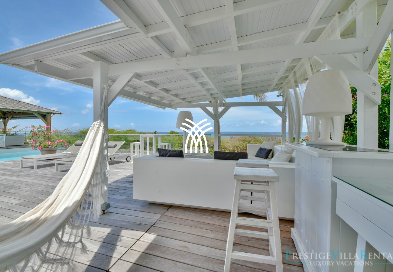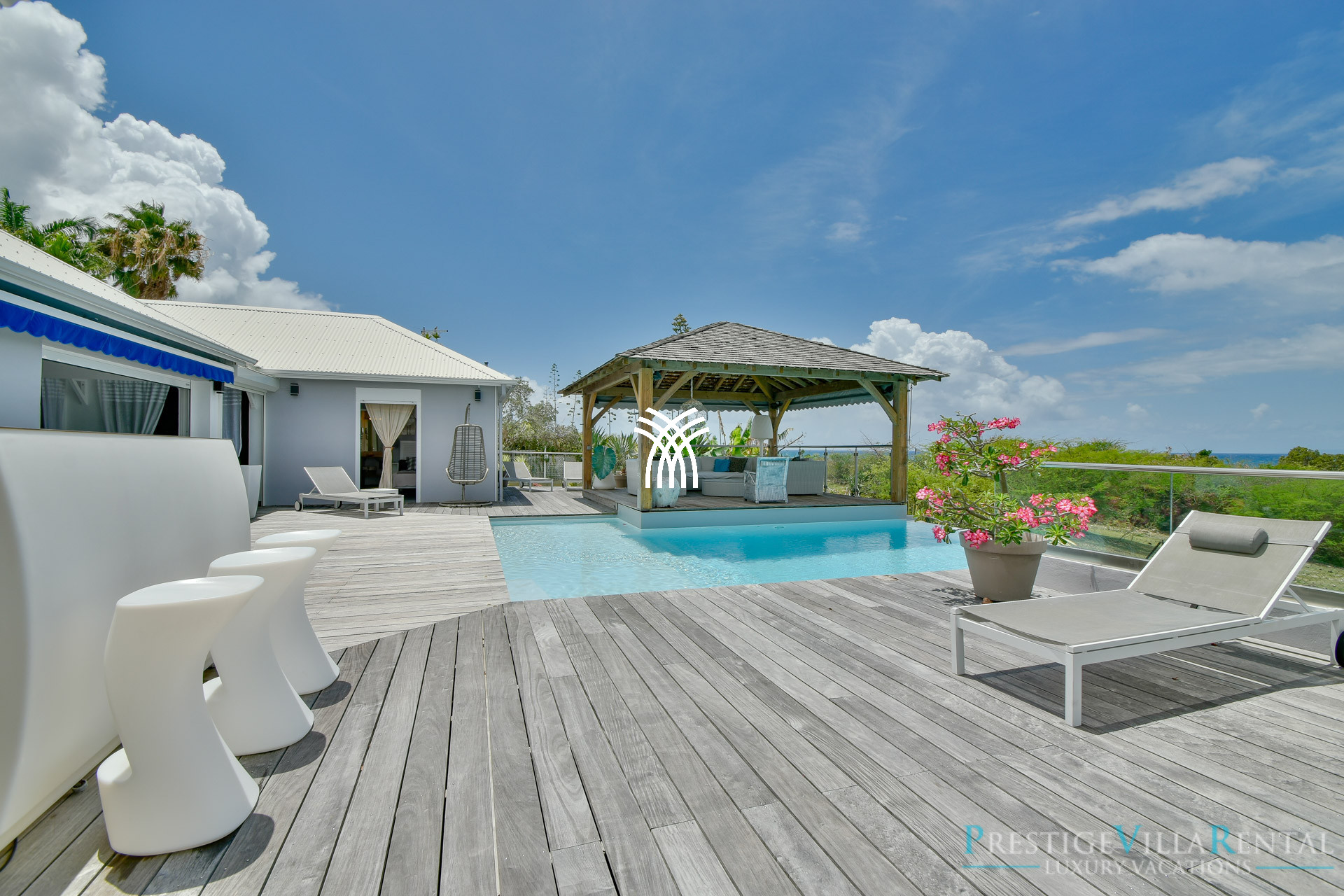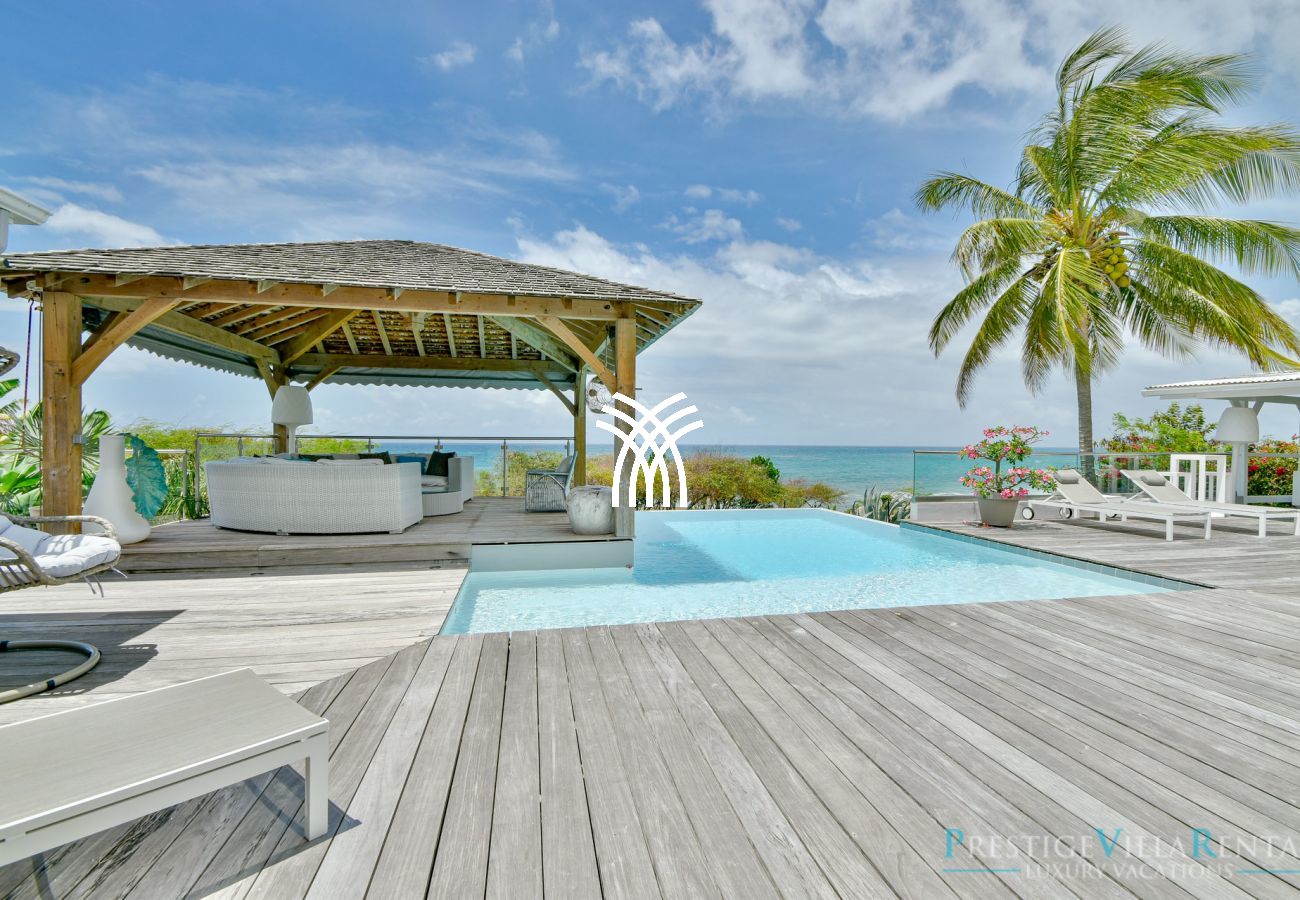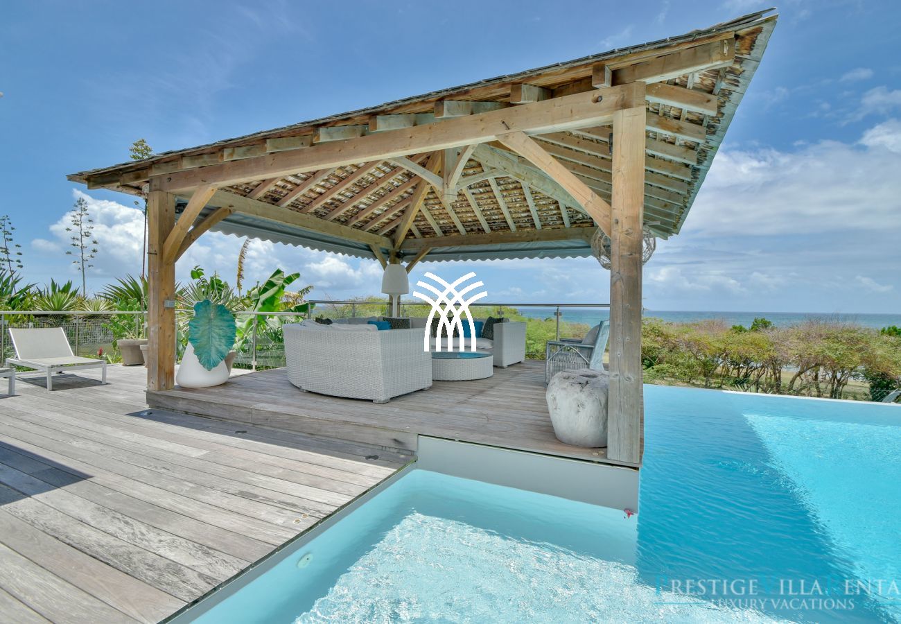 La Villa Zen Guadeloupe est une villa exceptionnelle, où chaque détail a été pensé pour le confort et l'harmonie de ses occupants. Cette villa de haut standing avec piscine et spa offre une vue splendide sur la mer. Située au Helleux entre les villes de Sainte-Anne (7 km) et de Saint-François (8 km), cette propriété de luxe est à 200 mètres de la plage de “Pierre & Vacances”, à 1200 mètres de la plage de Bois Jolan et à 800 mètres de la plage du Helleux (lieu réputé pour les surfeurs).