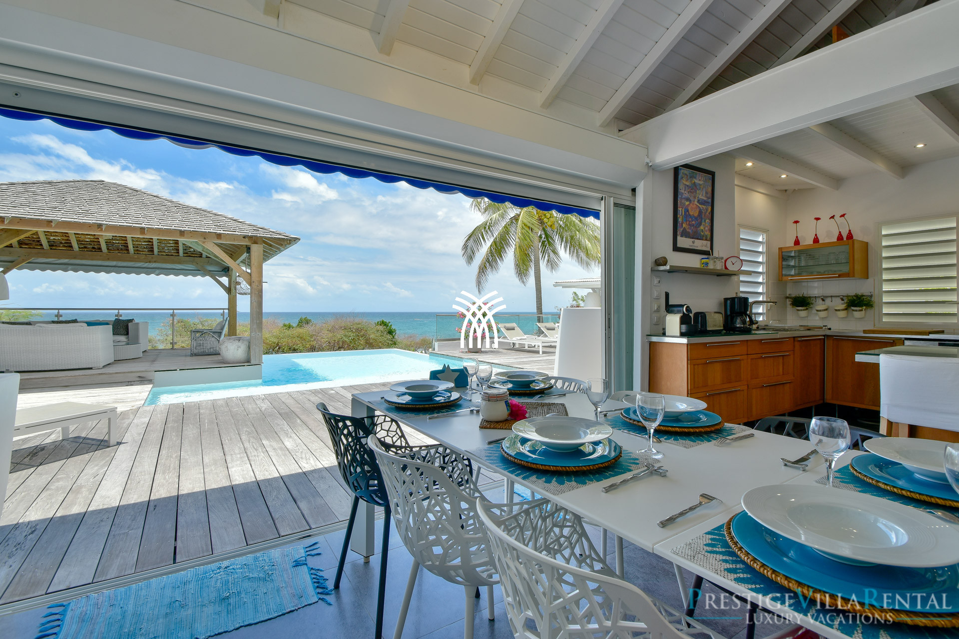 La Villa Zen Guadeloupe sera parfaite pour une famille en vacances en Guadeloupe. Un spacieux salon donnant sur la mer, une cuisine entièrement équipée, une terrasse privée, une piscine à débordement et une vue mémorable.