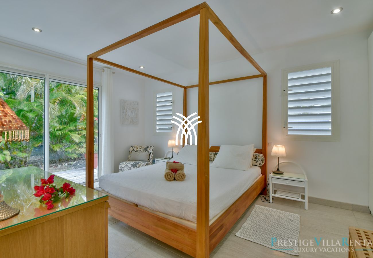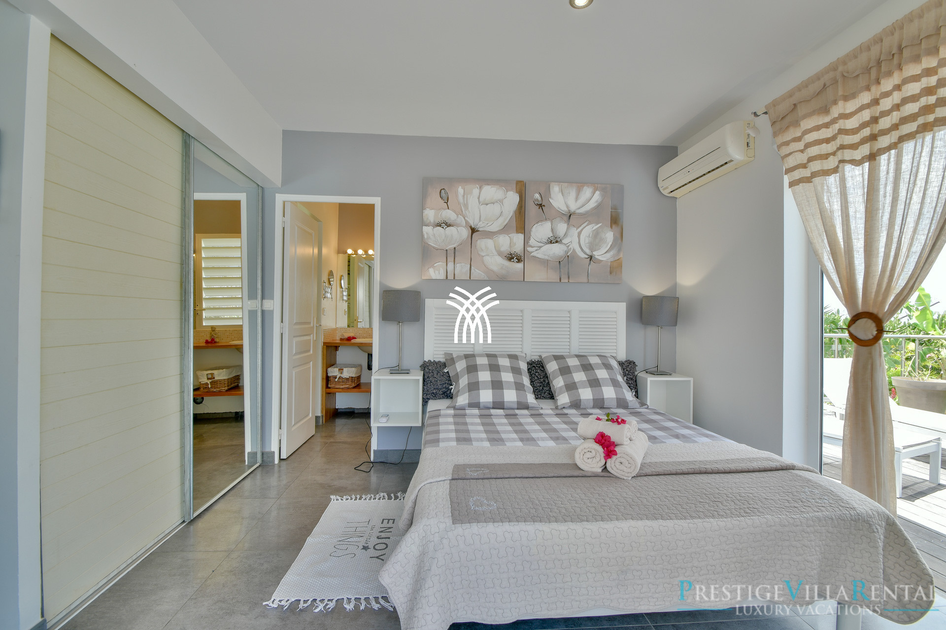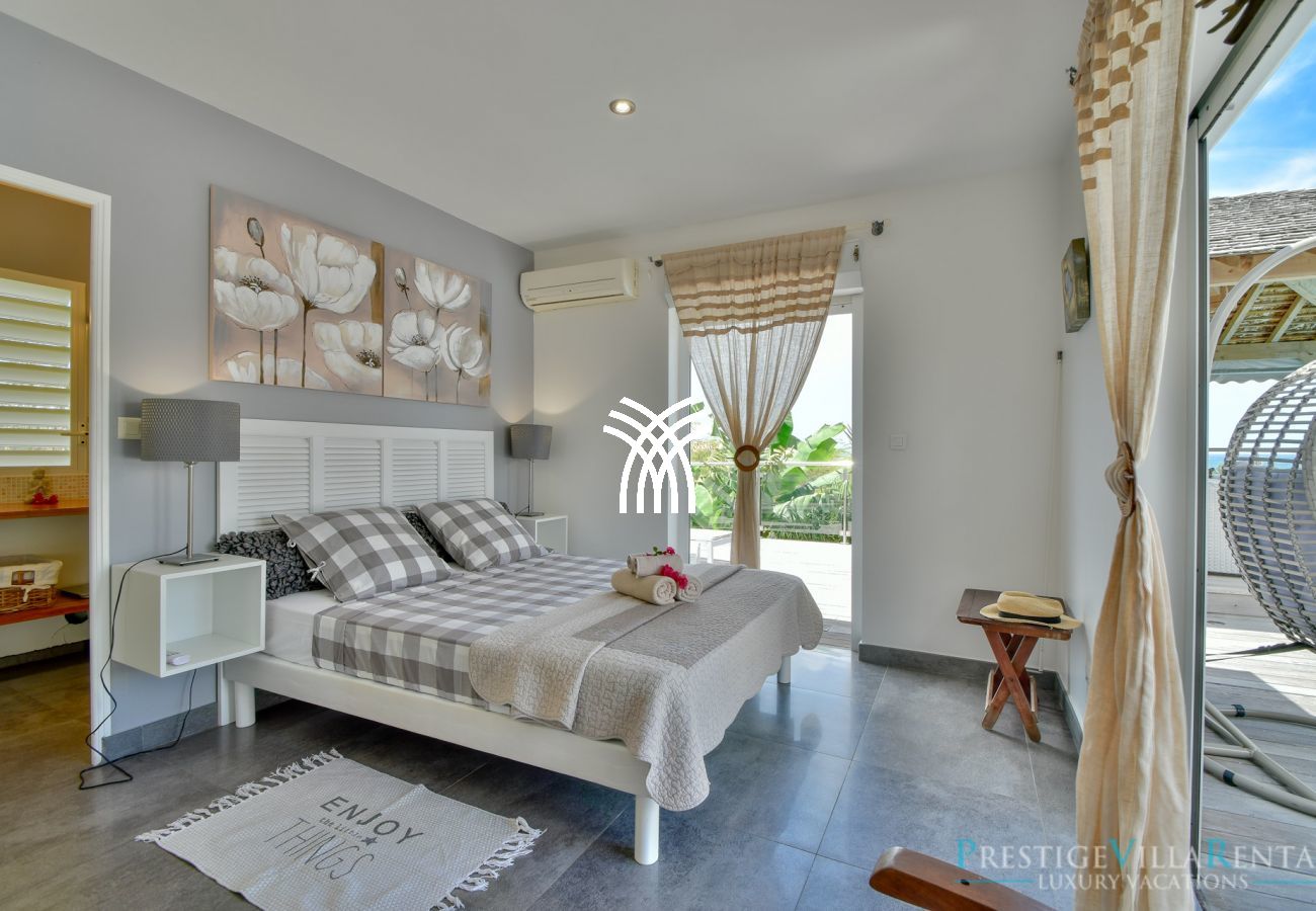 La Villa Zen Guadeloupe dispose de 4 chambres avec 4 salles de bain privées, astucieusement disposée en trois modules. Une pièce à vivre comprenant un salon TV, une cuisine spacieuse, une salle à manger, le tout est ouvert sur une grande terrasse avec piscine à débordement donnant sur l’océan. Un espace nuit auquel on accède par une galerie, avec une suite parentale au rez-de-chaussée, deux chambres avec balcon à l'étage, disposant chacune d’une salle d'eau, et un bungalow qui est totalement indépendant. Ce dernier avec un accès extérieur, possède un lit queen au niveau de la mezzanine, au rez-de-chaussée, un canapé-lit pouvant être séparé en 2 lits simples pour 2 enfants, un dressing et une salle de bains.