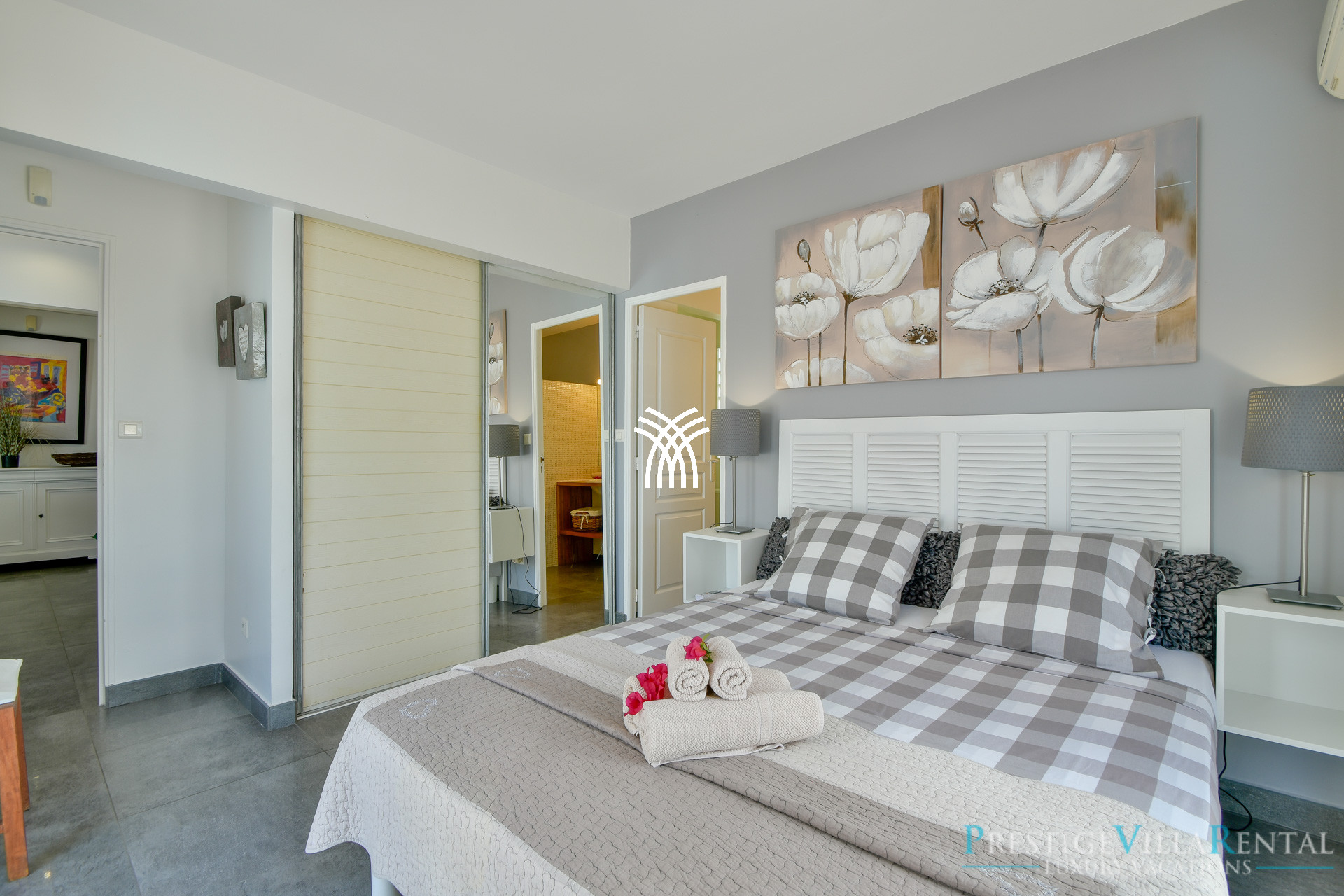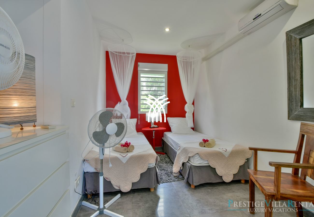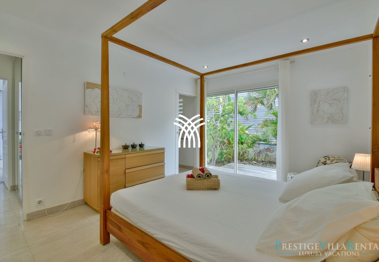 La Villa Zen Guadeloupe dispose de 4 chambres avec 4 salles de bain privées, astucieusement disposée en trois modules. Une pièce à vivre comprenant un salon TV, une cuisine spacieuse, une salle à manger, le tout est ouvert sur une grande terrasse avec piscine à débordement donnant sur l’océan. Un espace nuit auquel on accède par une galerie, avec une suite parentale au rez-de-chaussée, deux chambres avec balcon à l'étage, disposant chacune d’une salle d'eau, et un bungalow qui est totalement indépendant. Ce dernier avec un accès extérieur, possède un lit queen au niveau de la mezzanine, au rez-de-chaussée, un canapé-lit pouvant être séparé en 2 lits simples pour 2 enfants, un dressing et une salle de bains.