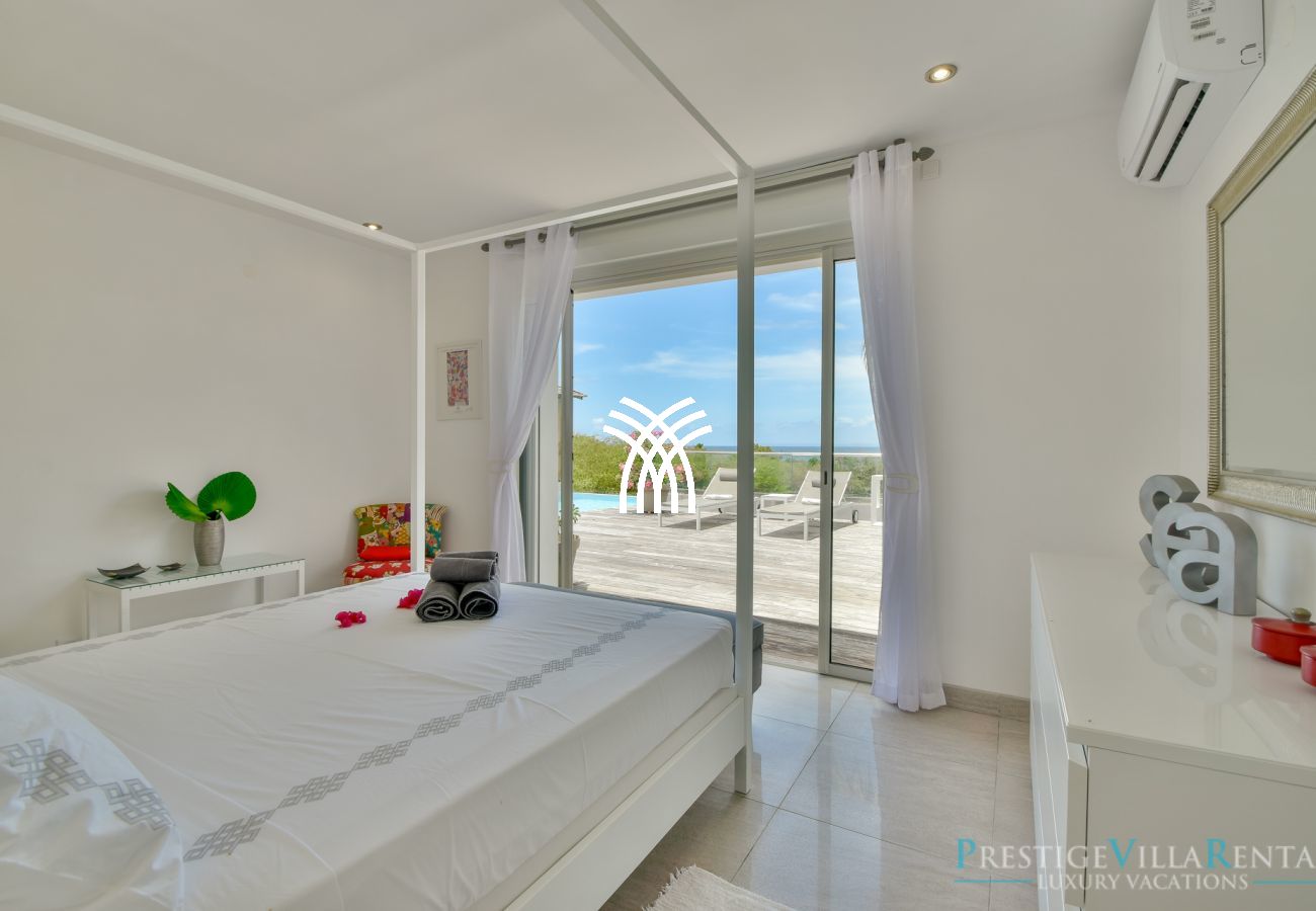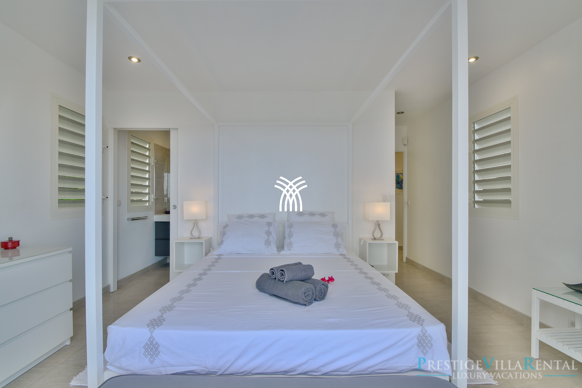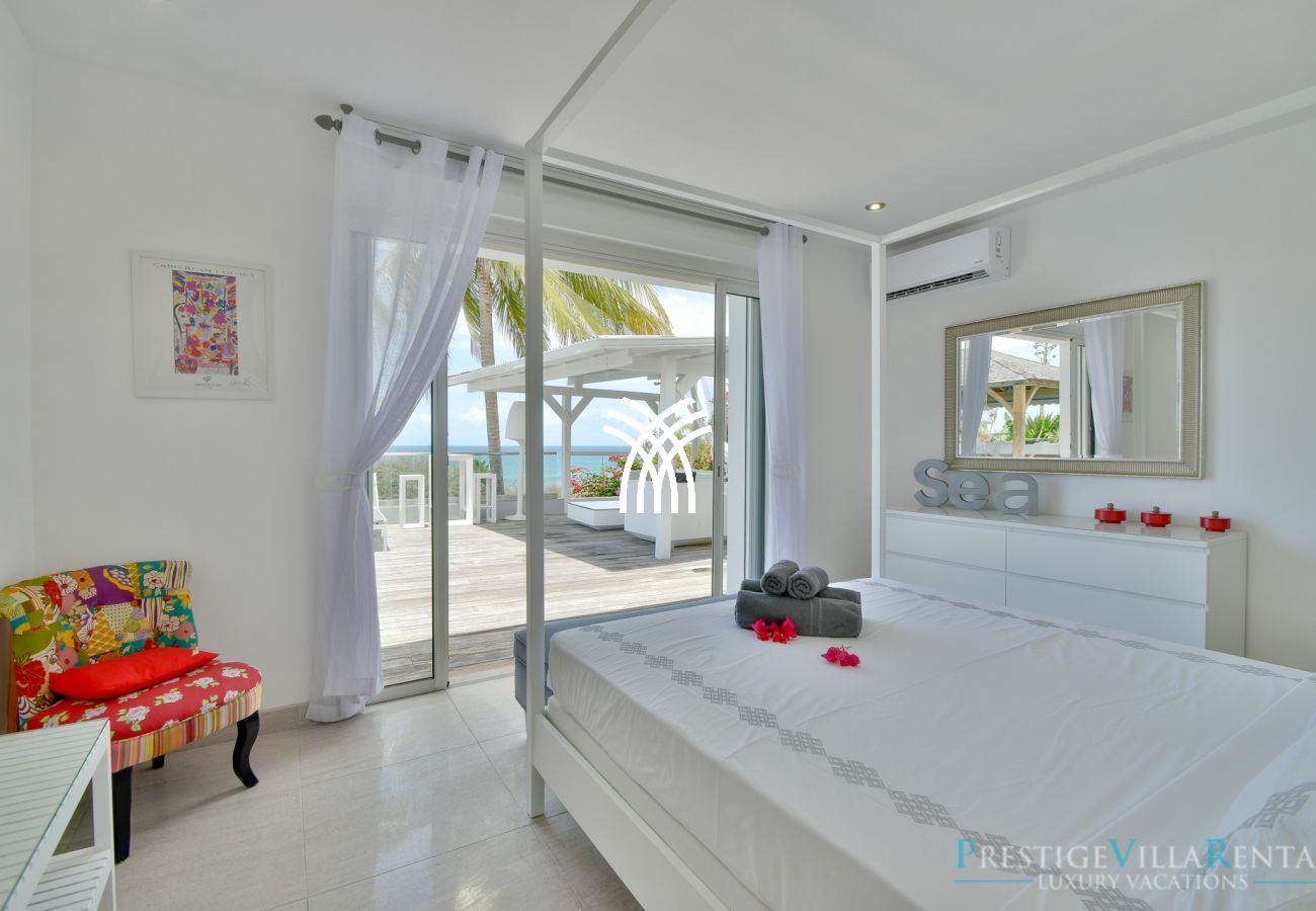 Lit queen size (160 x 200m) avec moustiquaire, air-conditionné, salle d'eau avec douche, dressing, bureau, accès balcon avec vue mer