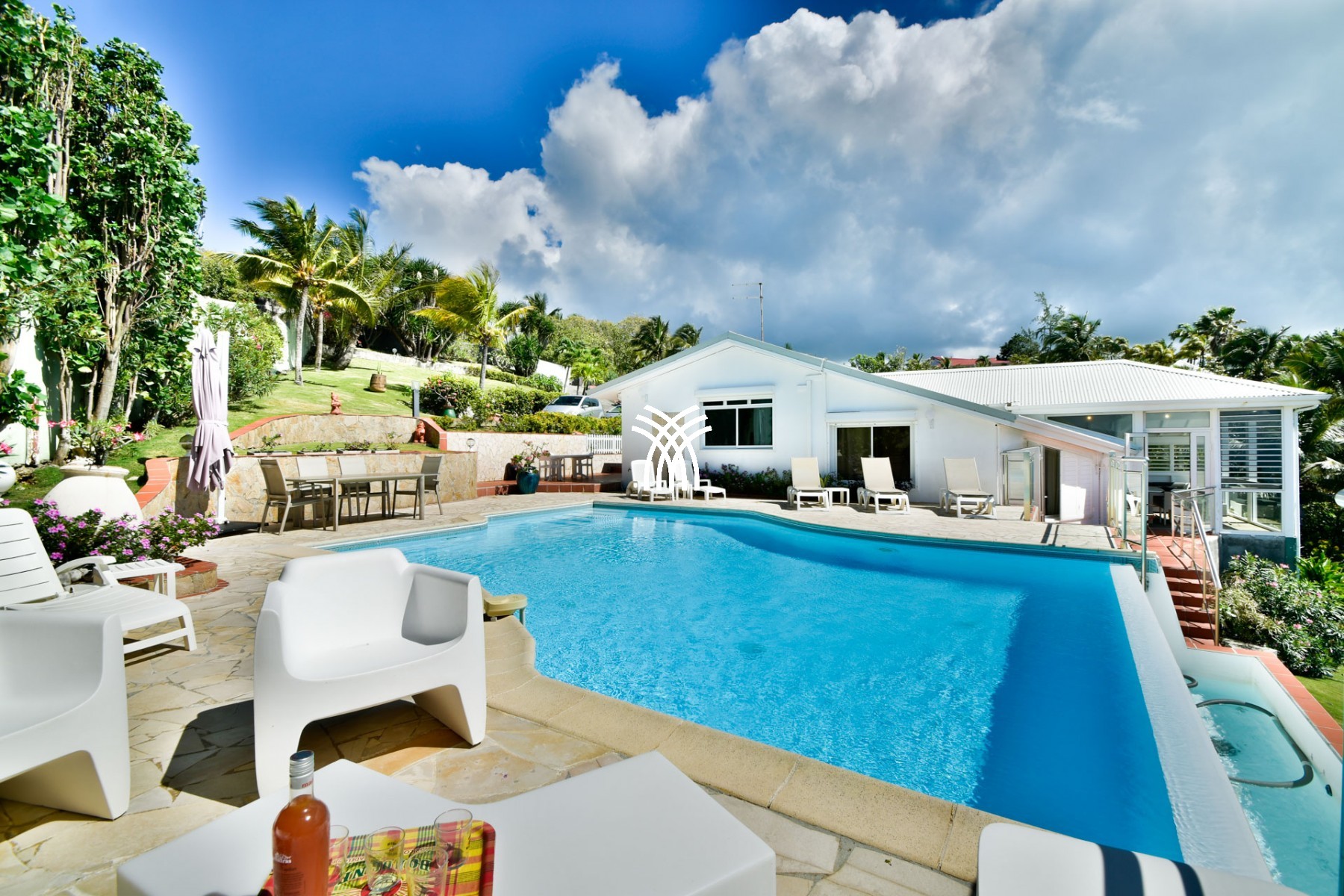 Pouvant accueillir jusqu'à 8 personnes, cette villa de vacances, offrant un bel espace, dispose de trois chambres climatisées et trois salles de bain attenantes. La piscine vous offrira des bains de soleil garantis et des moments délicieux à passer entre amis ou en famille. Spacieuse, cette charmante demeure saura faire le charme des voyageurs en quête de tranquillité. La villa Lantana Guadeloupe, un rendez-vous exotique à ne manquer sous aucun prétexte.