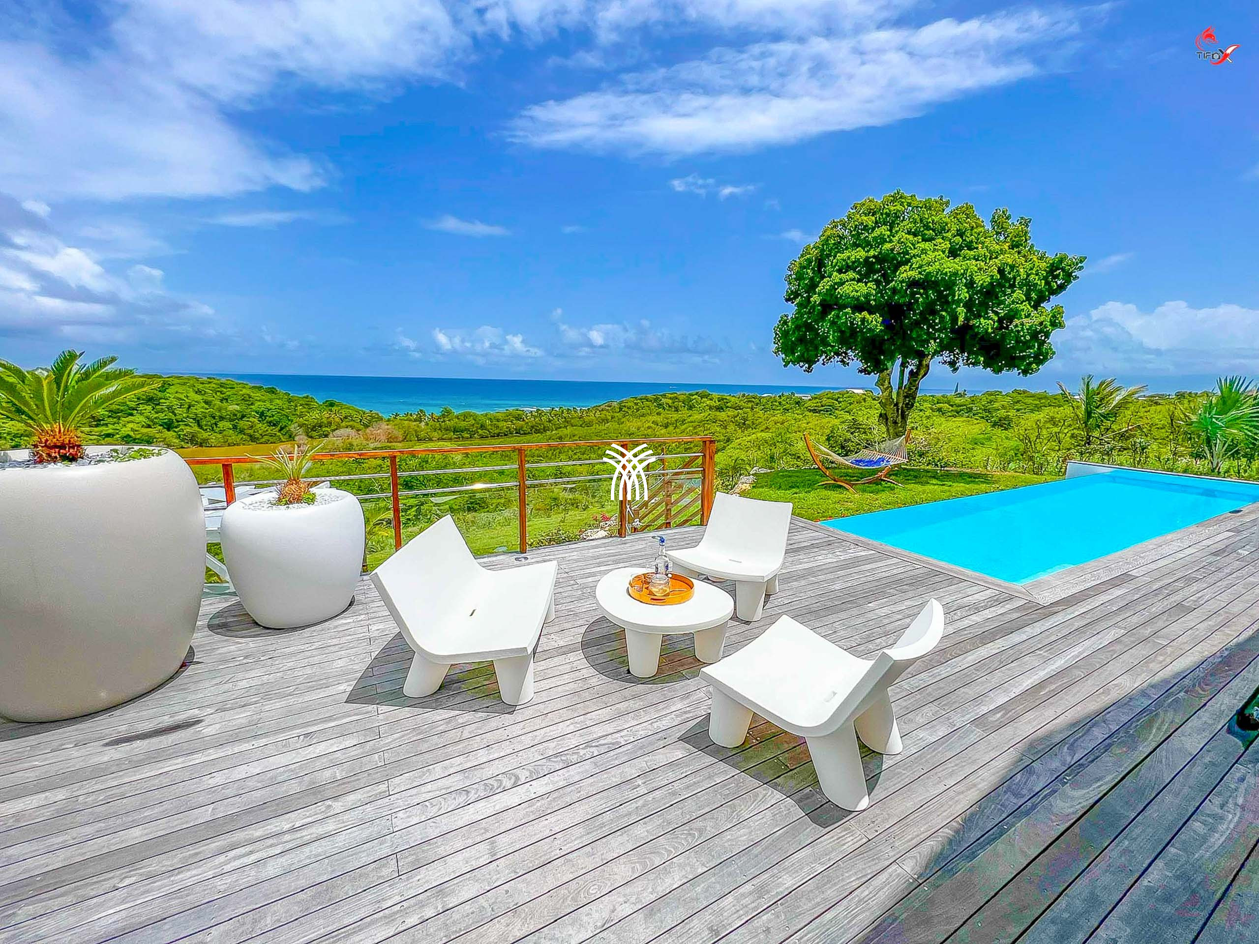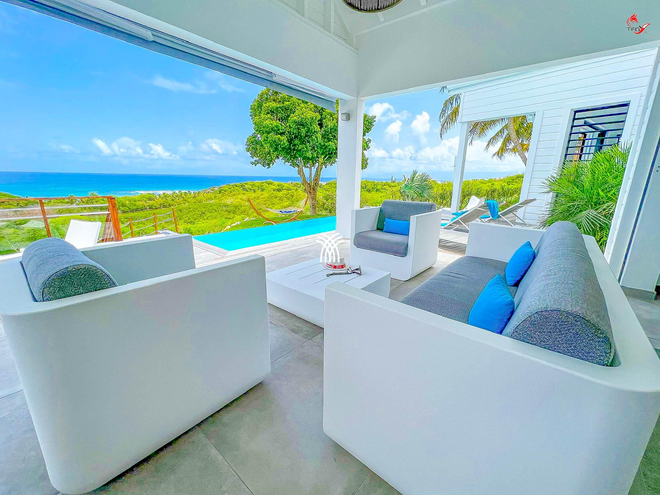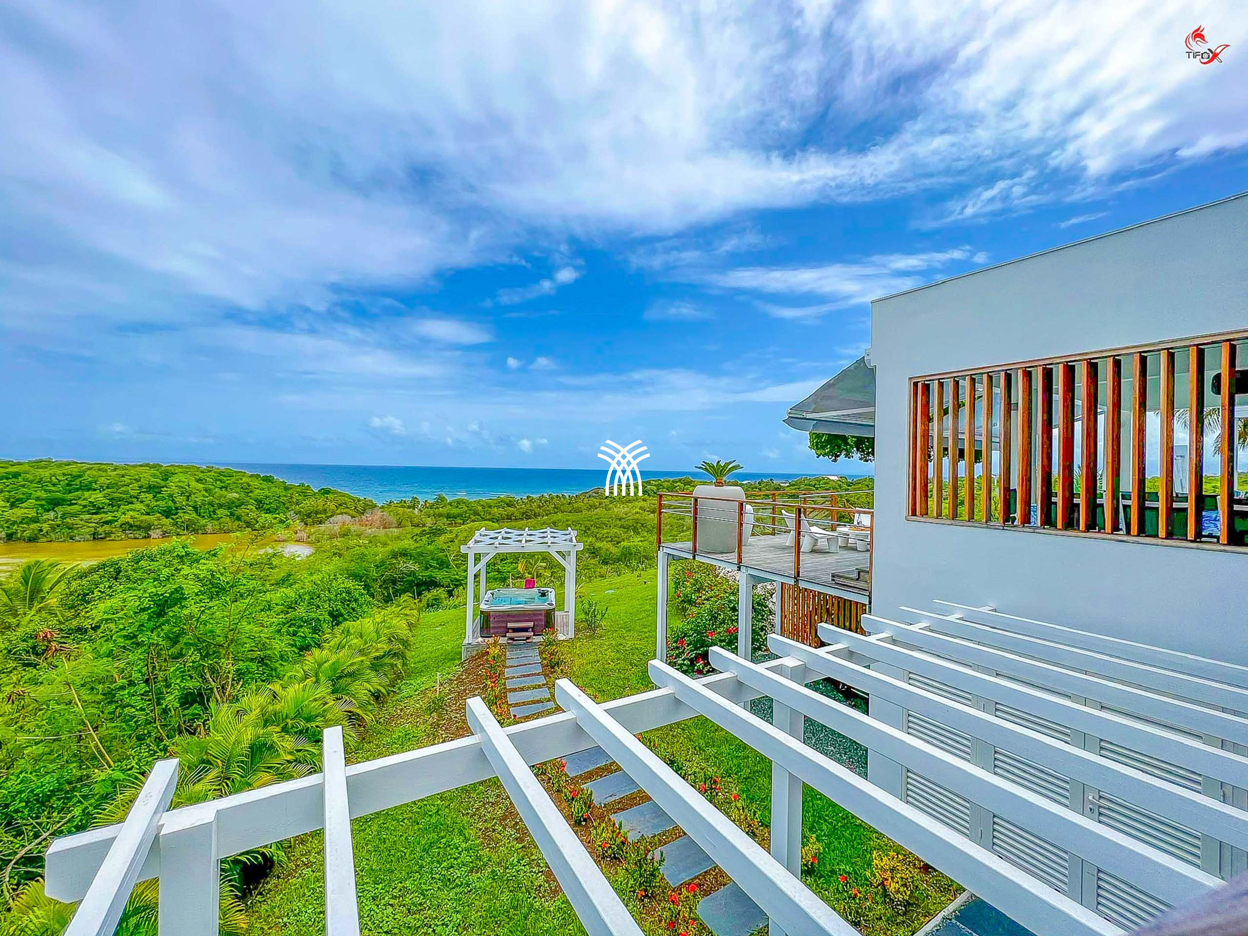 La villa Thalassa dispose de 5 chambres avec vue sur la mer, d’un vaste séjour lumineux ouvert sur l’extérieur, d’une cuisine entièrement équipée pour satisfaire les plus fins gourmets, ainsi que d'une superbe piscine à débordement. À l’abri des regards et en contrebas, un carbet intime vous attend avec son jacuzzi, offrant un moment de détente incomparable face à l’océan.