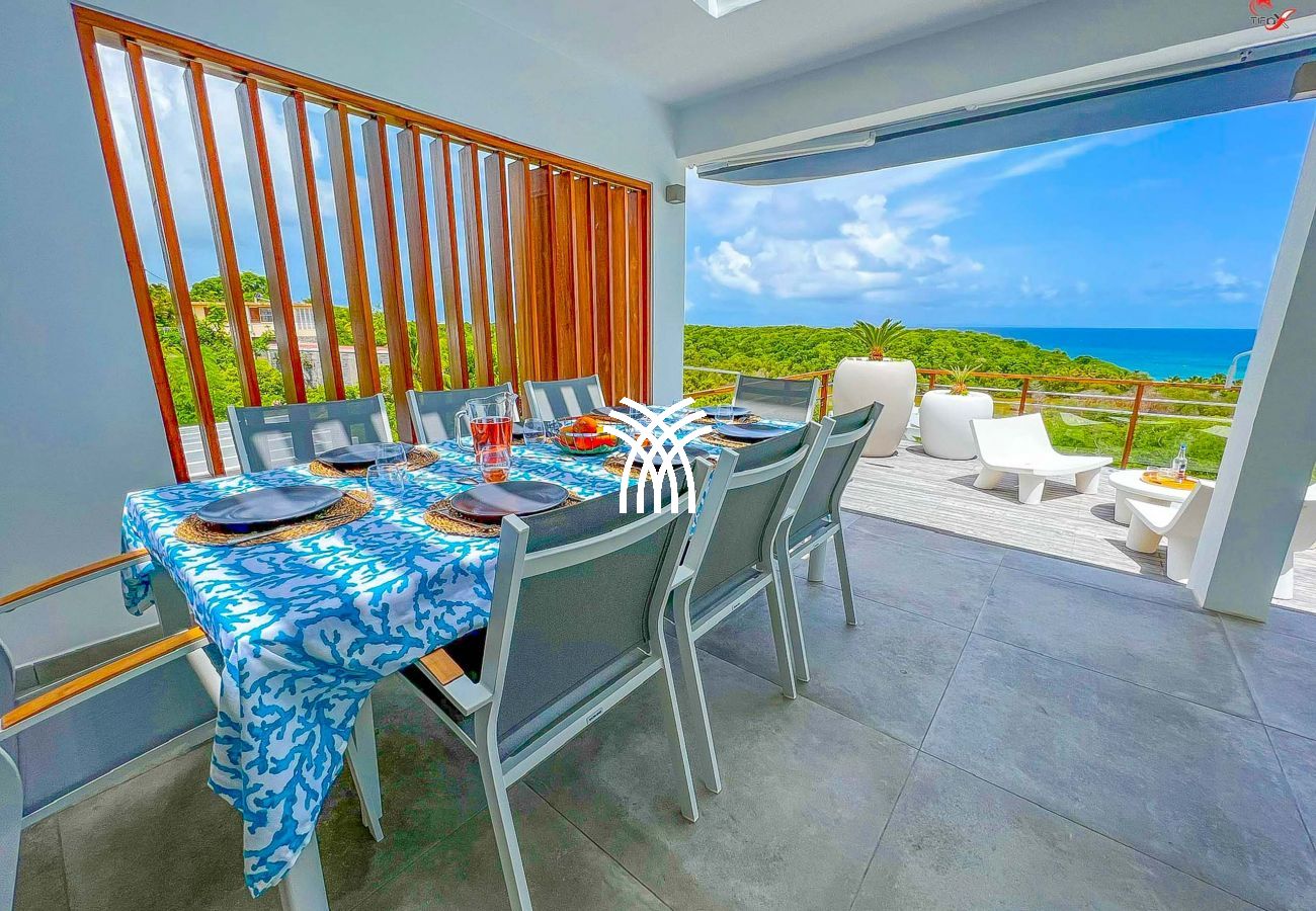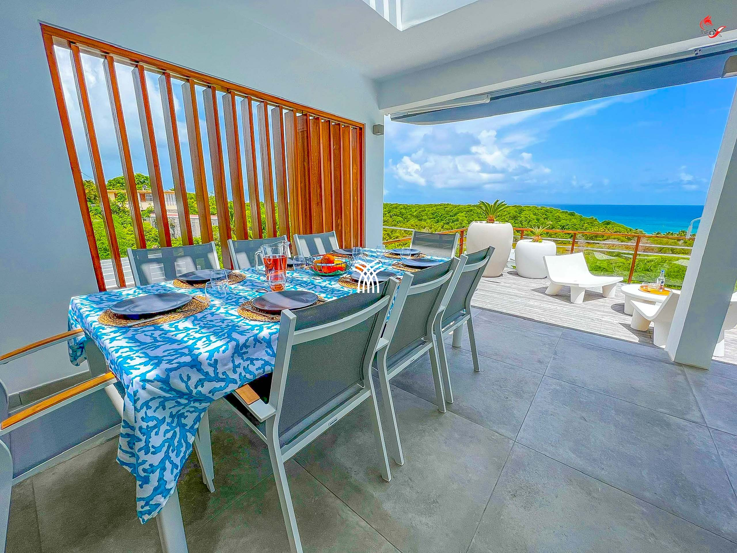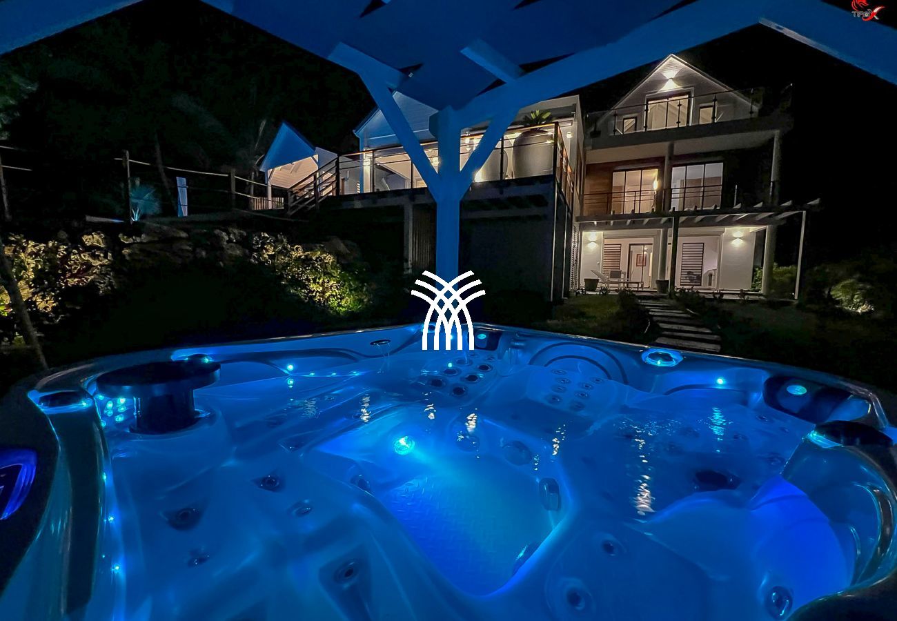 La villa Thalassa dispose de 5 chambres avec vue sur la mer, d’un vaste séjour lumineux ouvert sur l’extérieur, d’une cuisine entièrement équipée pour satisfaire les plus fins gourmets, ainsi que d'une superbe piscine à débordement. À l’abri des regards et en contrebas, un carbet intime vous attend avec son jacuzzi, offrant un moment de détente incomparable face à l’océan.