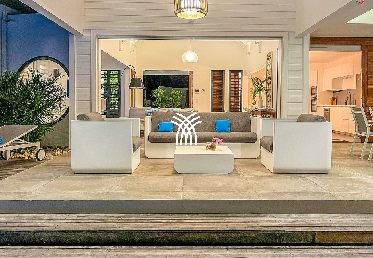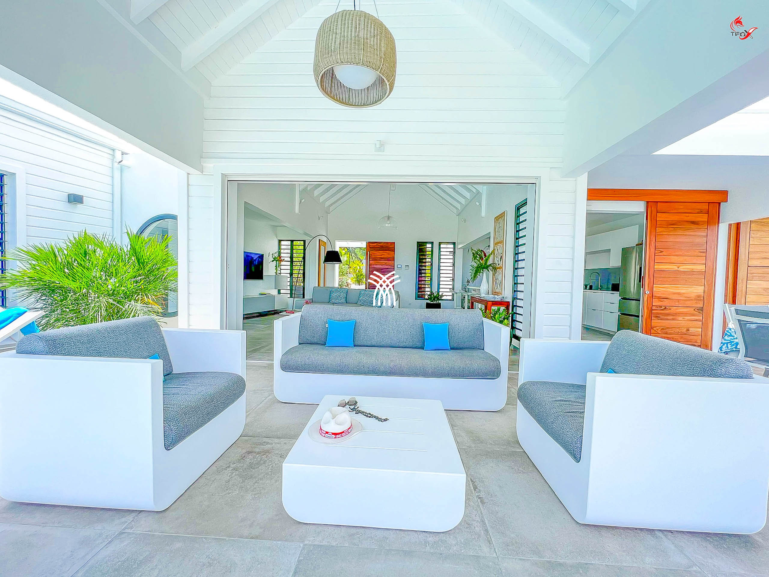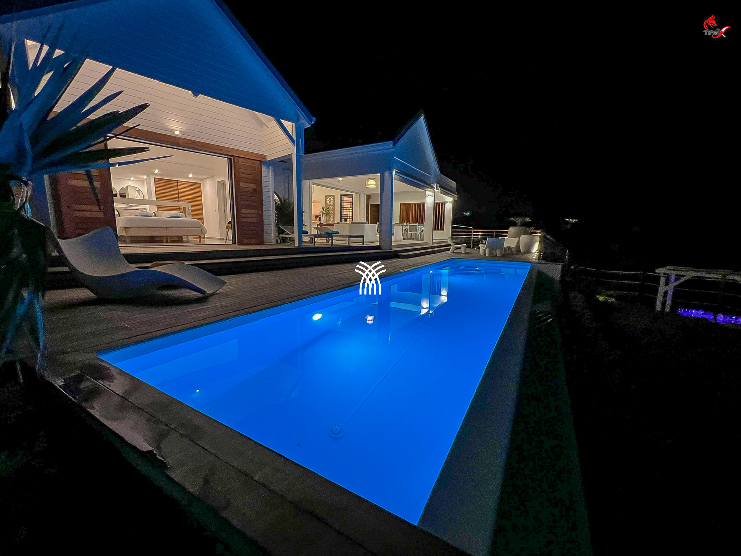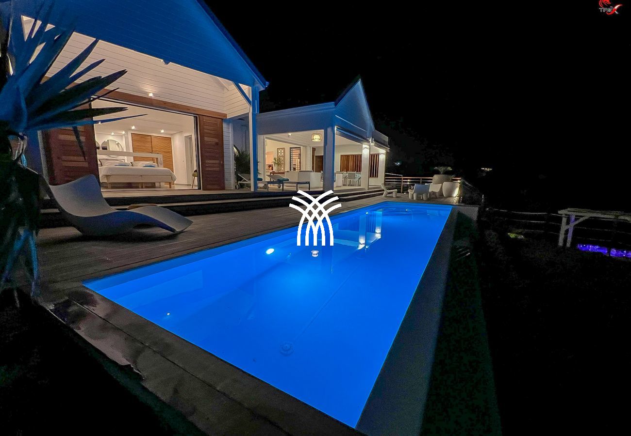 La Villa Zen Guadeloupe est une villa exceptionnelle, où chaque détail a été pensé pour le confort et l'harmonie de ses occupants. Cette villa de haut standing avec piscine et spa offre une vue splendide sur la mer. Située au Helleux entre les villes de Sainte-Anne (7 km) et de Saint-François (8 km), cette propriété de luxe est à 200 mètres de la plage de “Pierre & Vacances”, à 1200 mètres de la plage de Bois Jolan et à 800 mètres de la plage du Helleux (lieu réputé pour les surfeurs).