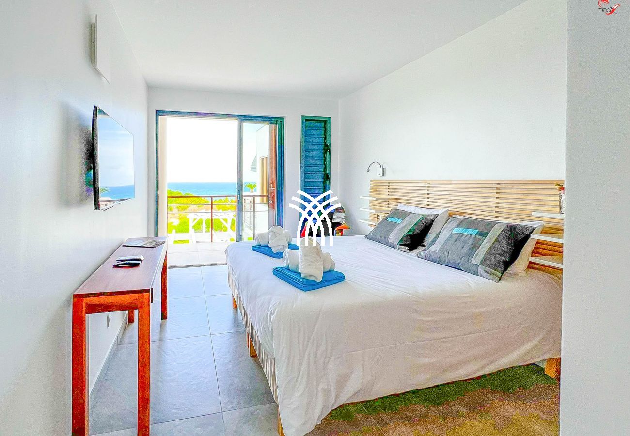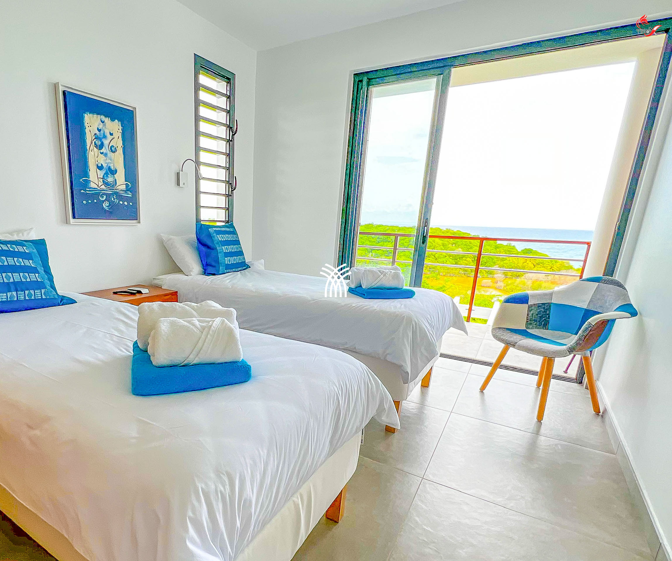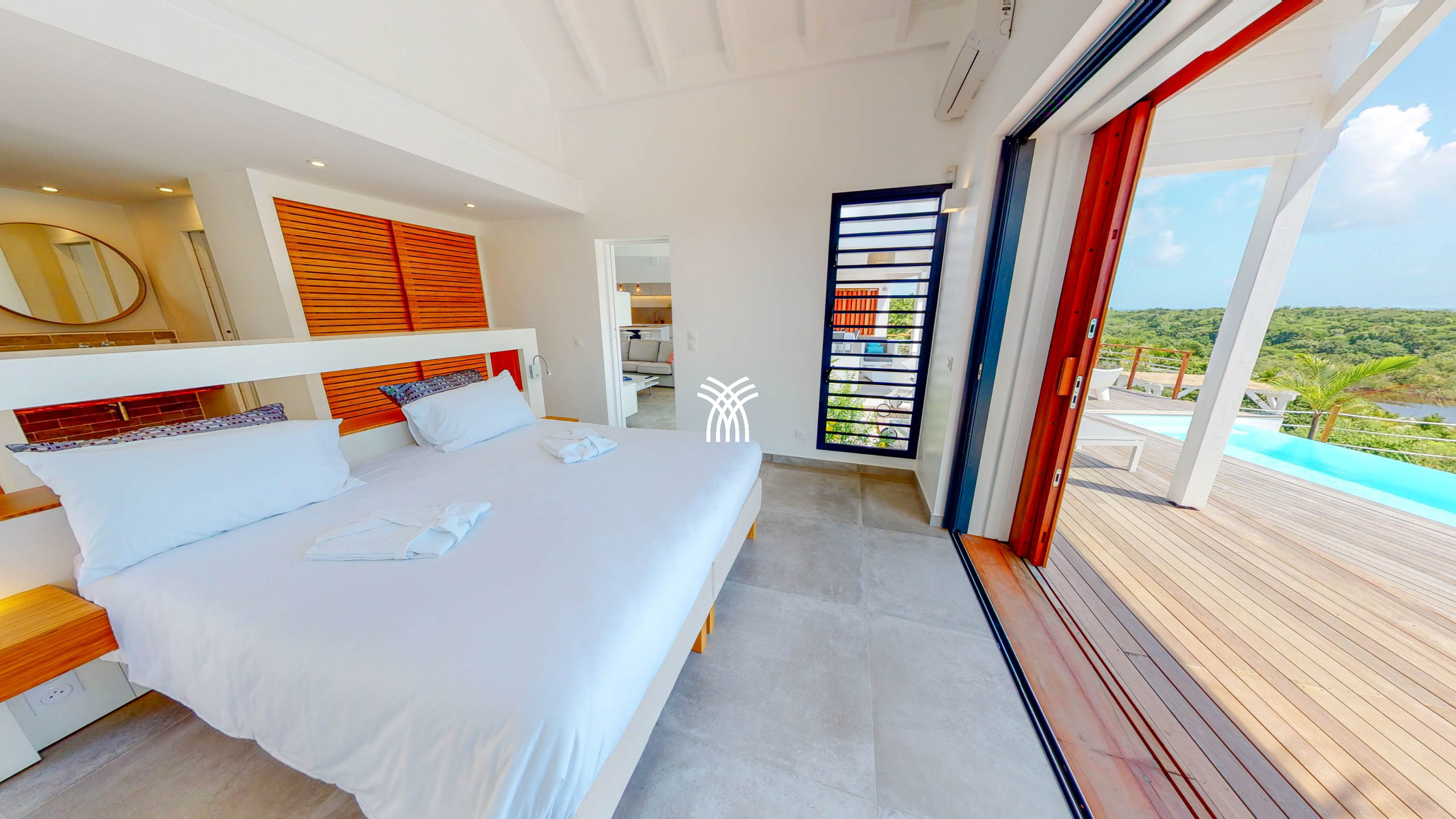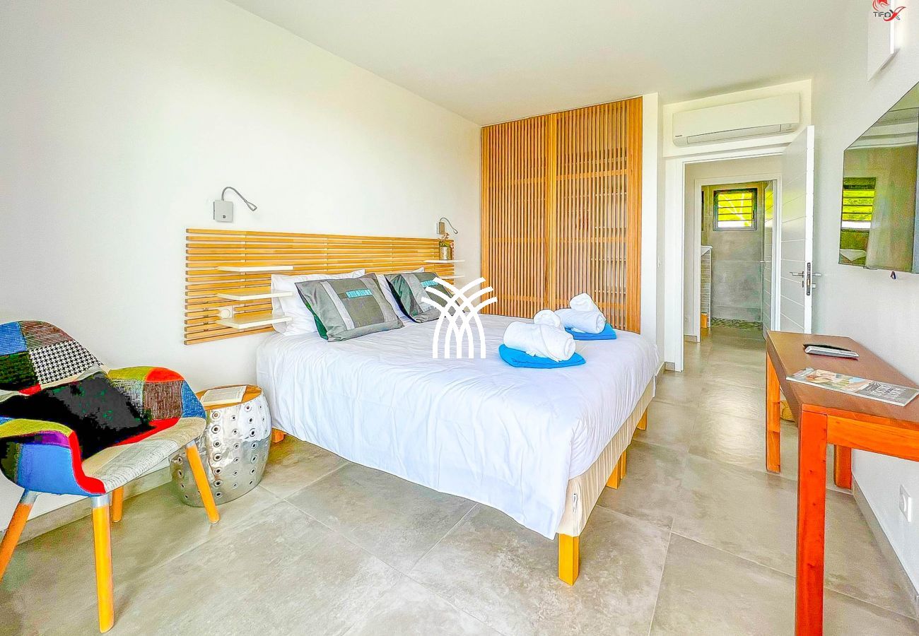 La Villa Zen Guadeloupe dispose de 4 chambres avec 4 salles de bain privées, astucieusement disposée en trois modules. Une pièce à vivre comprenant un salon TV, une cuisine spacieuse, une salle à manger, le tout est ouvert sur une grande terrasse avec piscine à débordement donnant sur l’océan. Un espace nuit auquel on accède par une galerie, avec une suite parentale au rez-de-chaussée, deux chambres avec balcon à l'étage, disposant chacune d’une salle d'eau, et un bungalow qui est totalement indépendant. Ce dernier avec un accès extérieur, possède un lit queen au niveau de la mezzanine, au rez-de-chaussée, un canapé-lit pouvant être séparé en 2 lits simples pour 2 enfants, un dressing et une salle de bains.