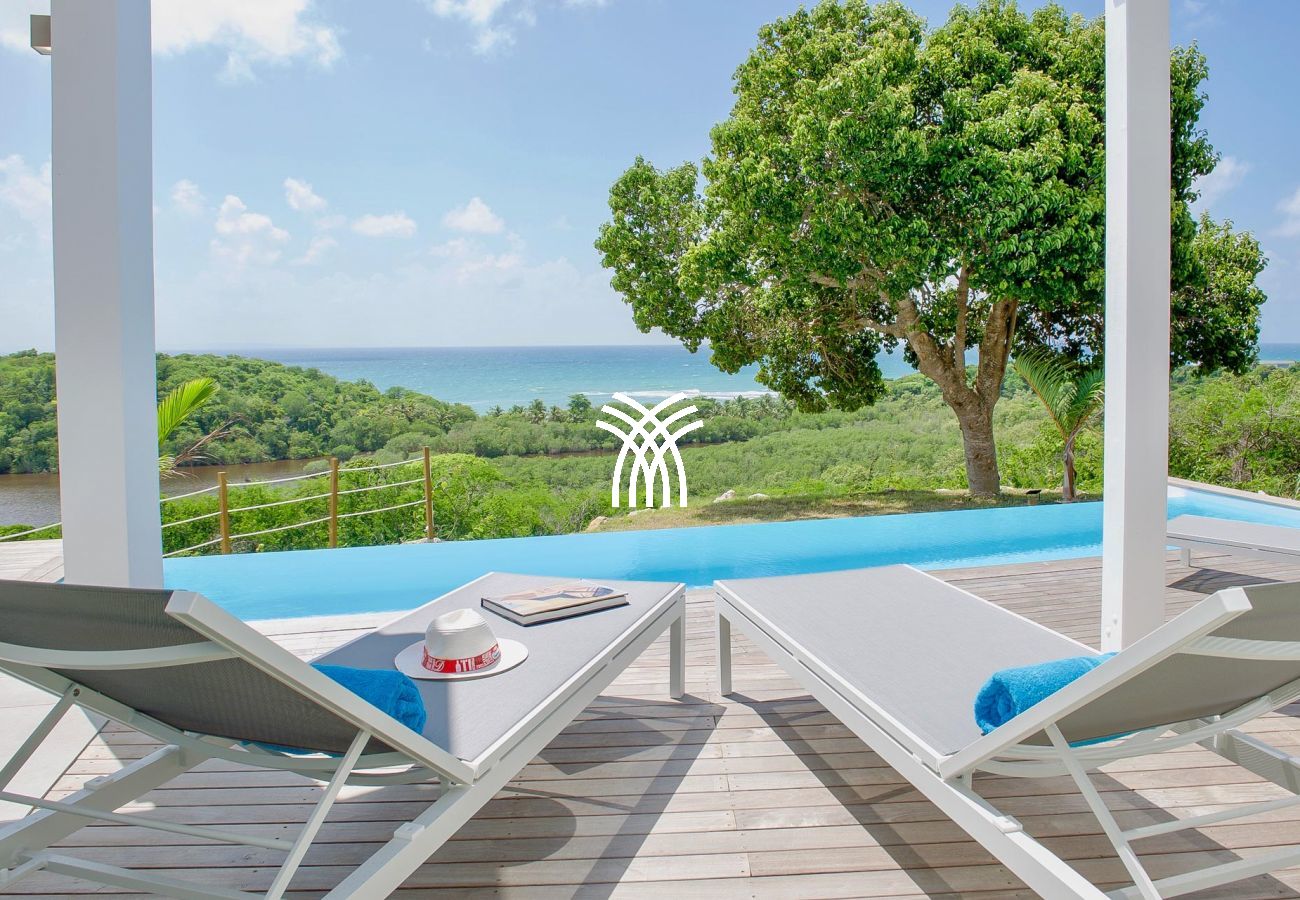 La villa Thalassa domine la plage sauvage et préservée de l’Anse à Saint, idéale pour ceux qui recherchent un séjour exclusif et ressourçant au cœur d’une nature authentique.