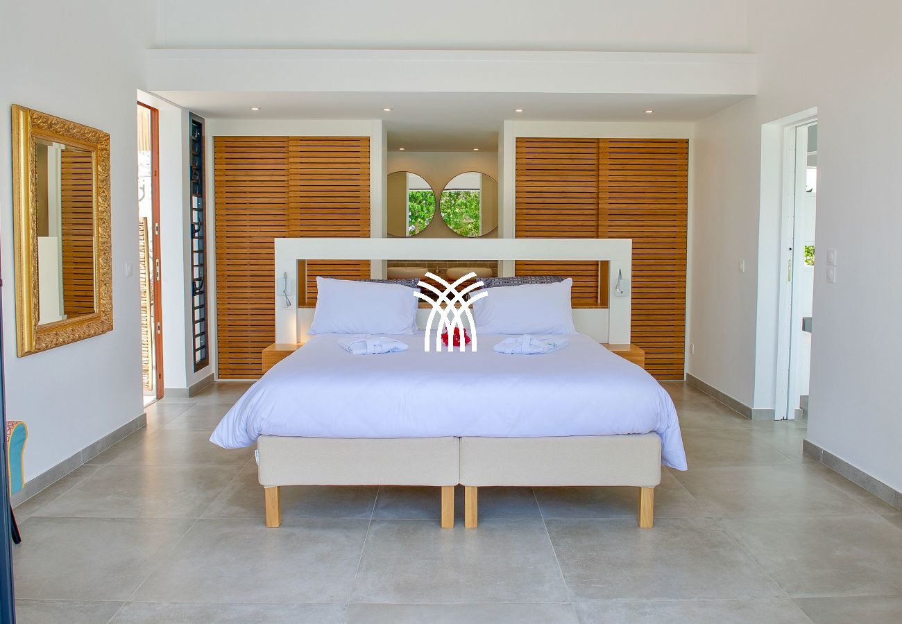 Enfin, à l’étage, une dernière chambre climatisée avec salle de douche et dressing, une kitchenette et un petit salon privé viennent compléter cette villa d’exception.