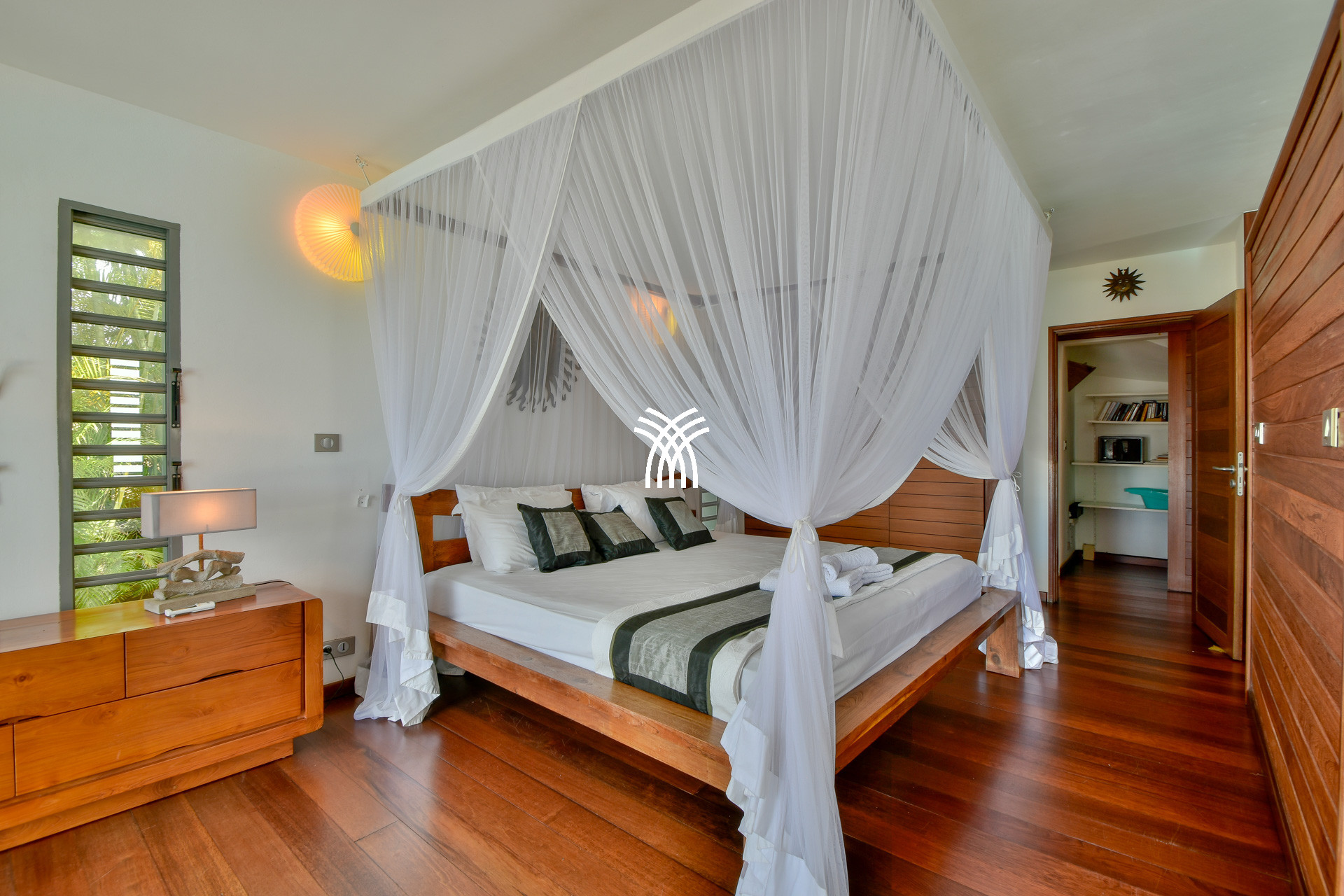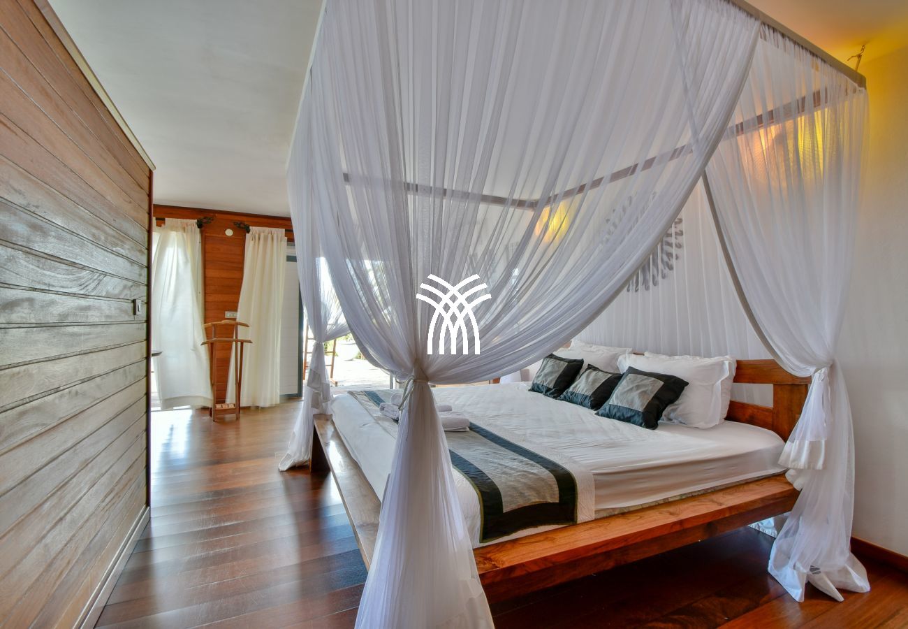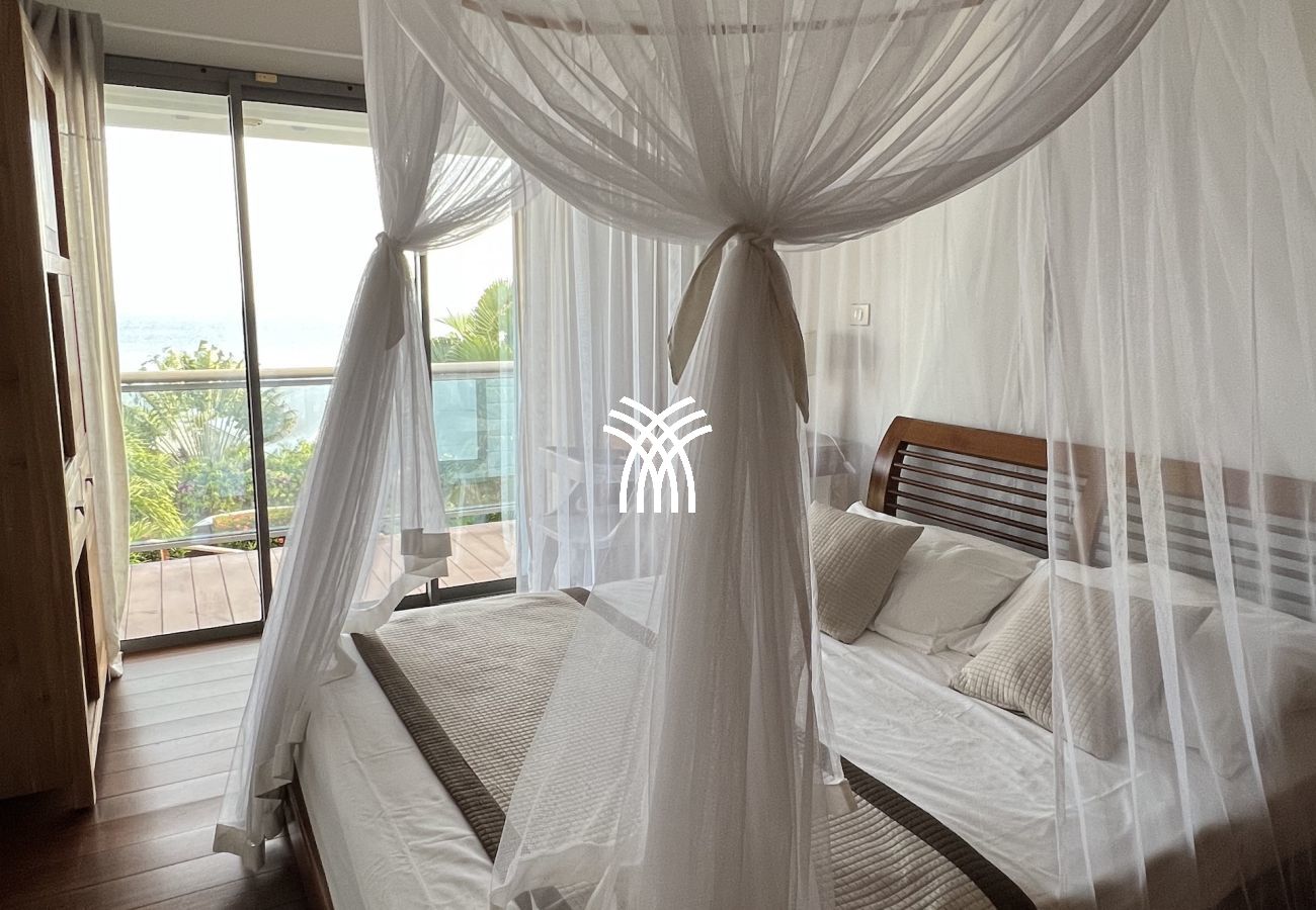 Lit queen size (160 x 200m) avec moustiquaire, air-conditionné, salle d'eau avec douche, dressing, bureau, accès balcon avec vue mer