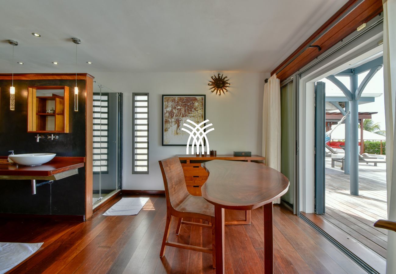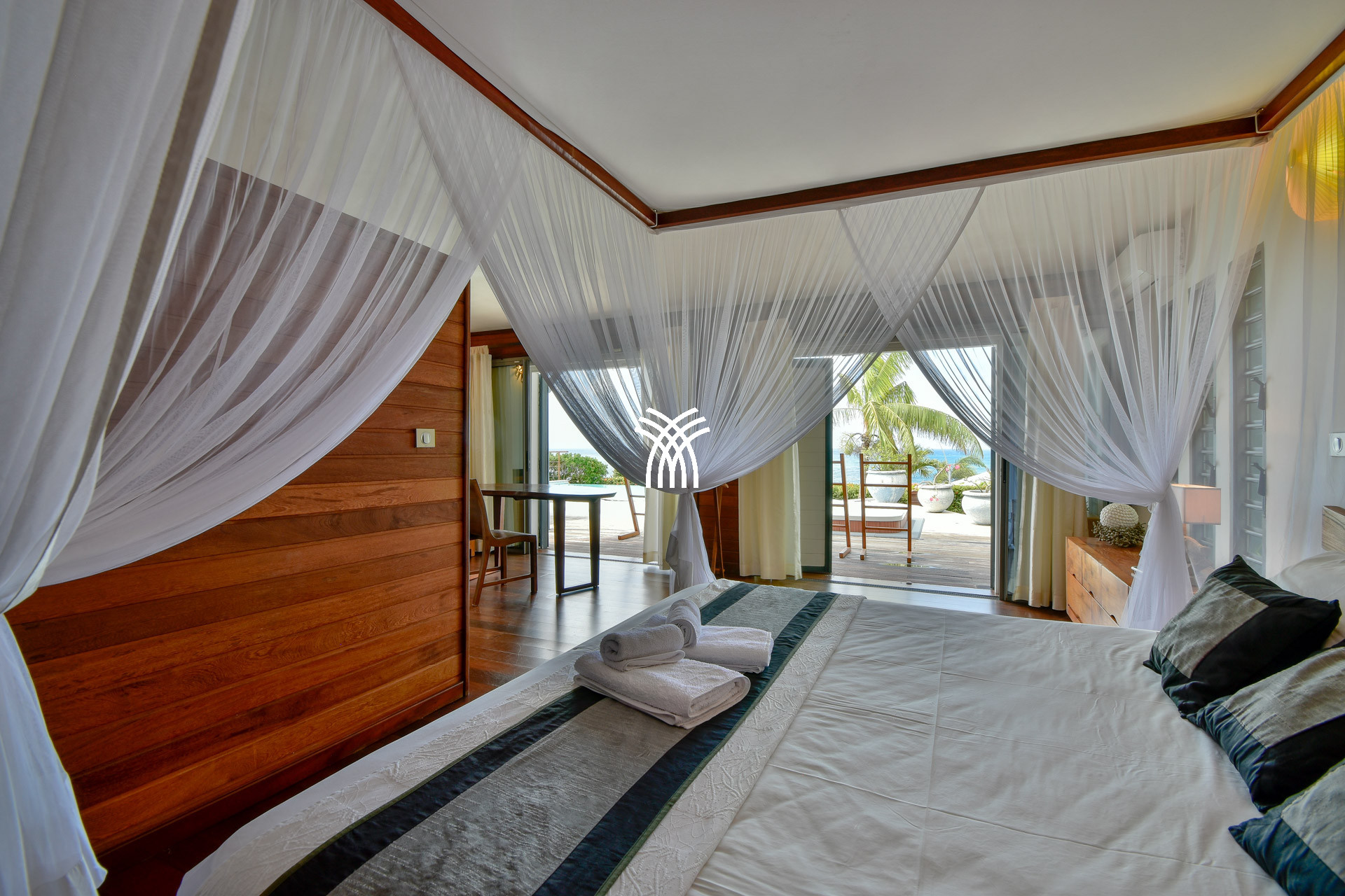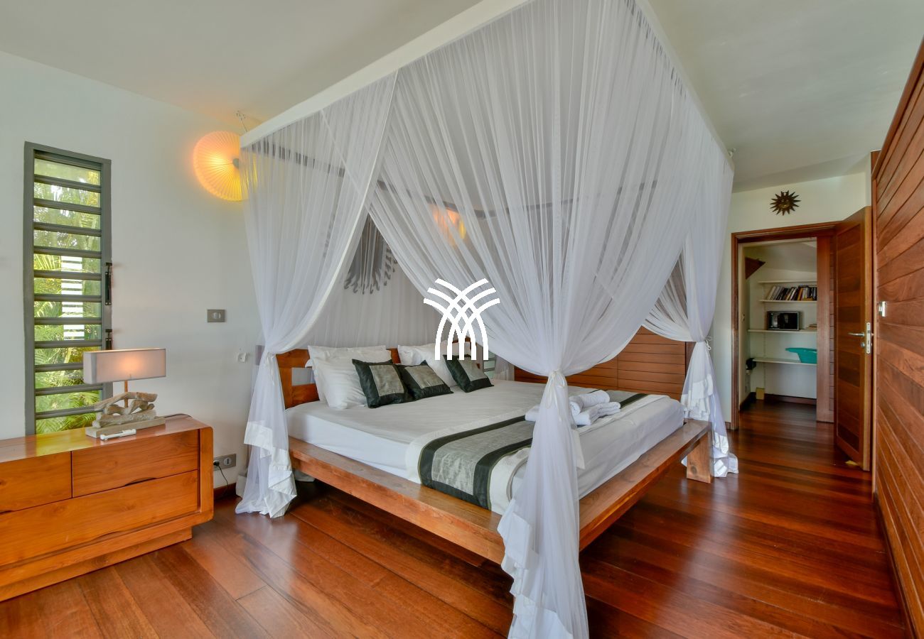 Lit queen size (160 x 200m) avec moustiquaire, air-conditionné, salle d'eau avec douche, dressing, bureau, accès balcon avec vue mer