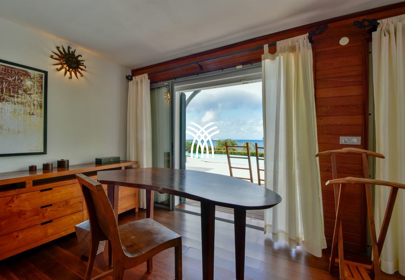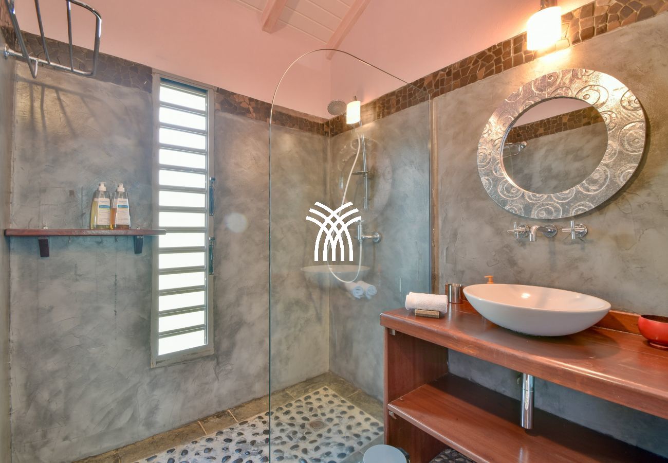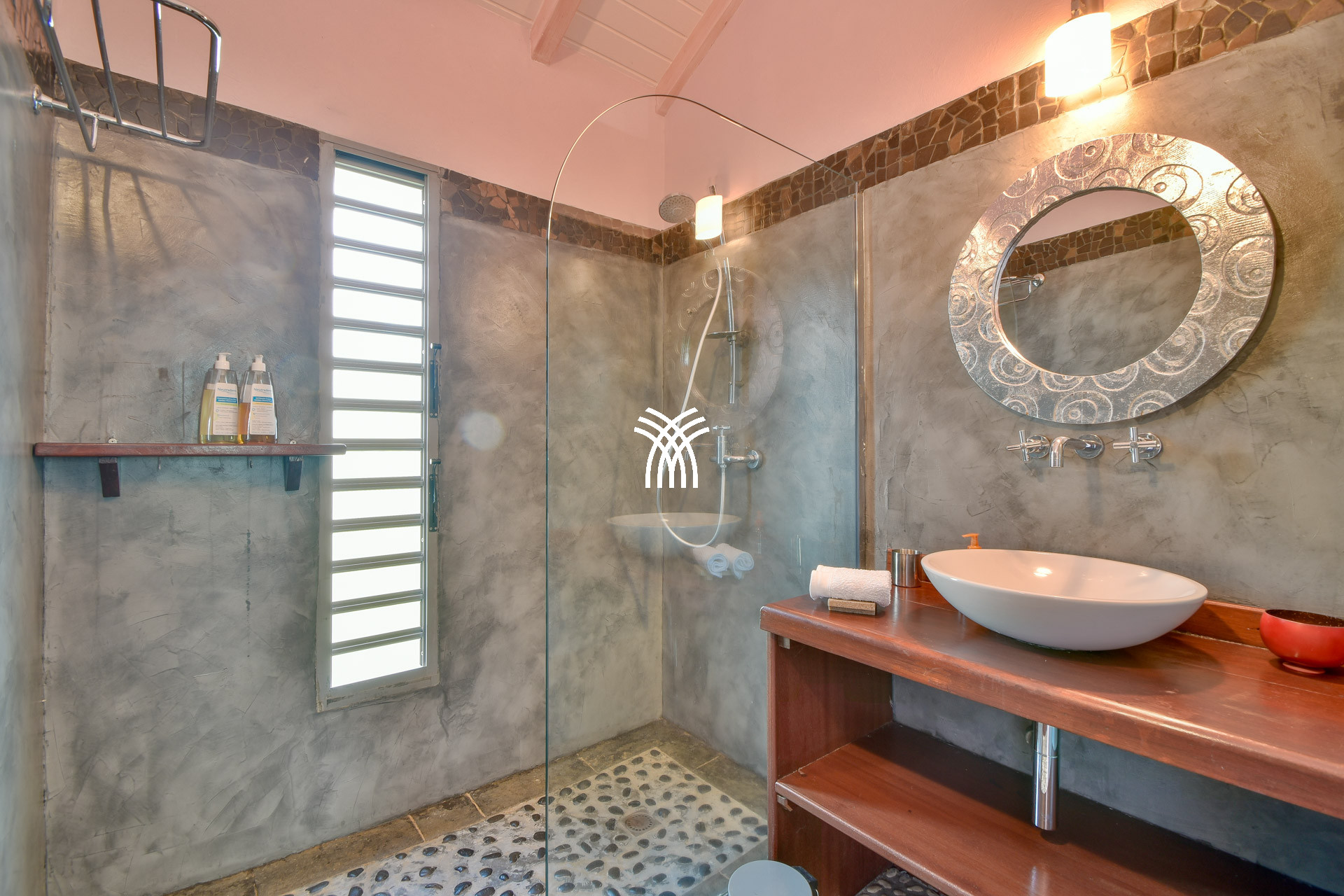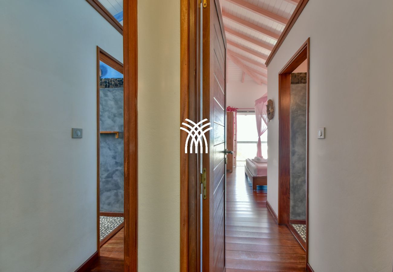 La Villa Zen Guadeloupe dispose de 4 chambres avec 4 salles de bain privées, astucieusement disposée en trois modules. Une pièce à vivre comprenant un salon TV, une cuisine spacieuse, une salle à manger, le tout est ouvert sur une grande terrasse avec piscine à débordement donnant sur l’océan. Un espace nuit auquel on accède par une galerie, avec une suite parentale au rez-de-chaussée, deux chambres avec balcon à l'étage, disposant chacune d’une salle d'eau, et un bungalow qui est totalement indépendant. Ce dernier avec un accès extérieur, possède un lit queen au niveau de la mezzanine, au rez-de-chaussée, un canapé-lit pouvant être séparé en 2 lits simples pour 2 enfants, un dressing et une salle de bains.