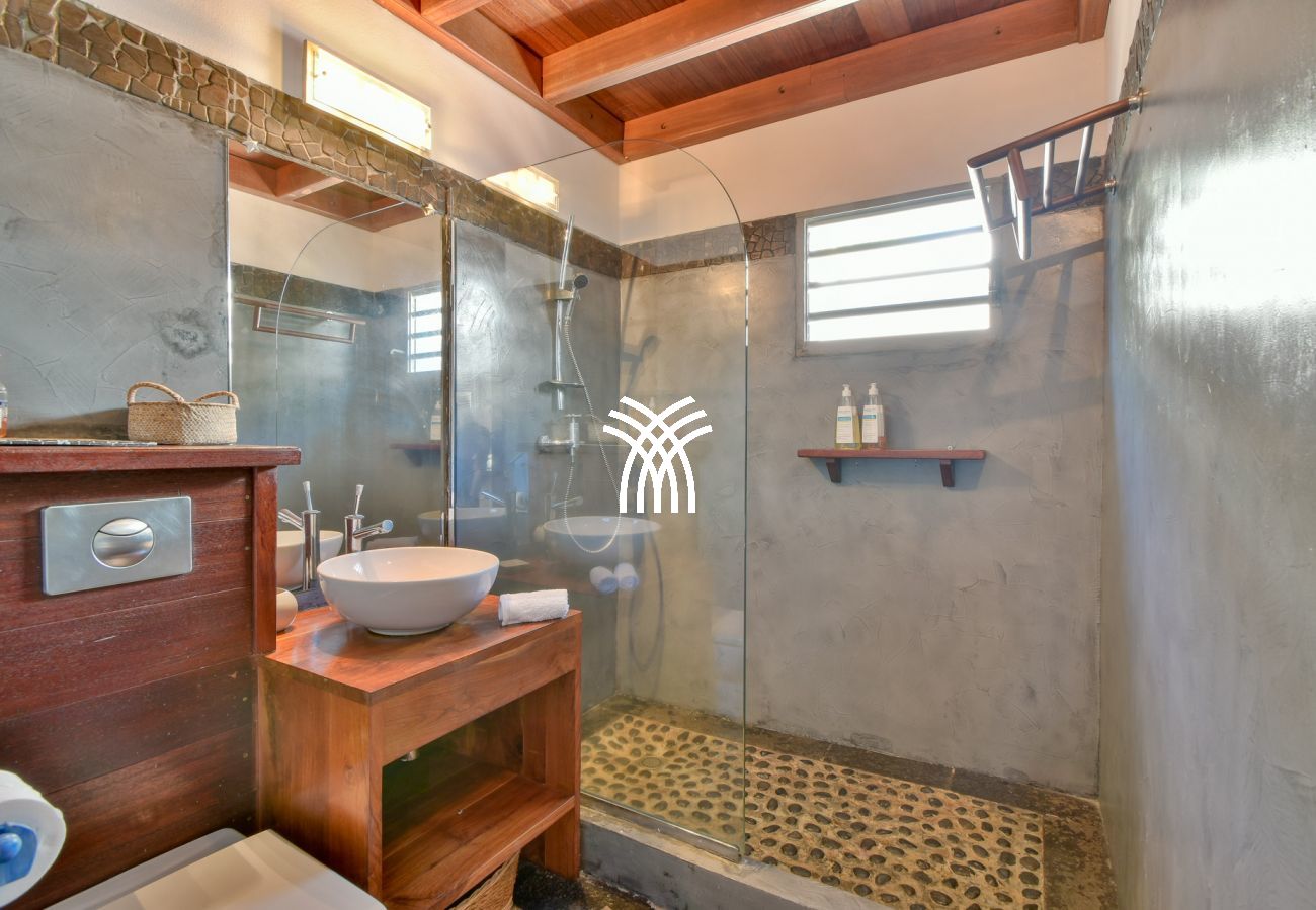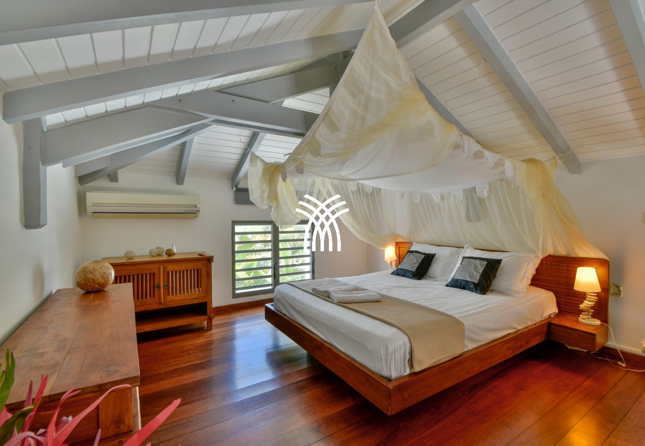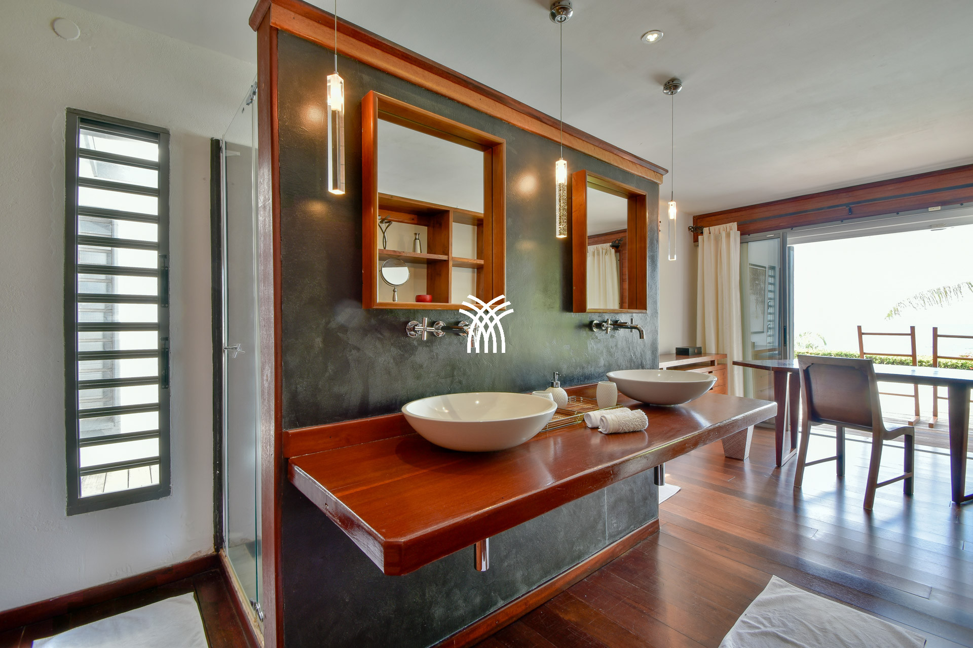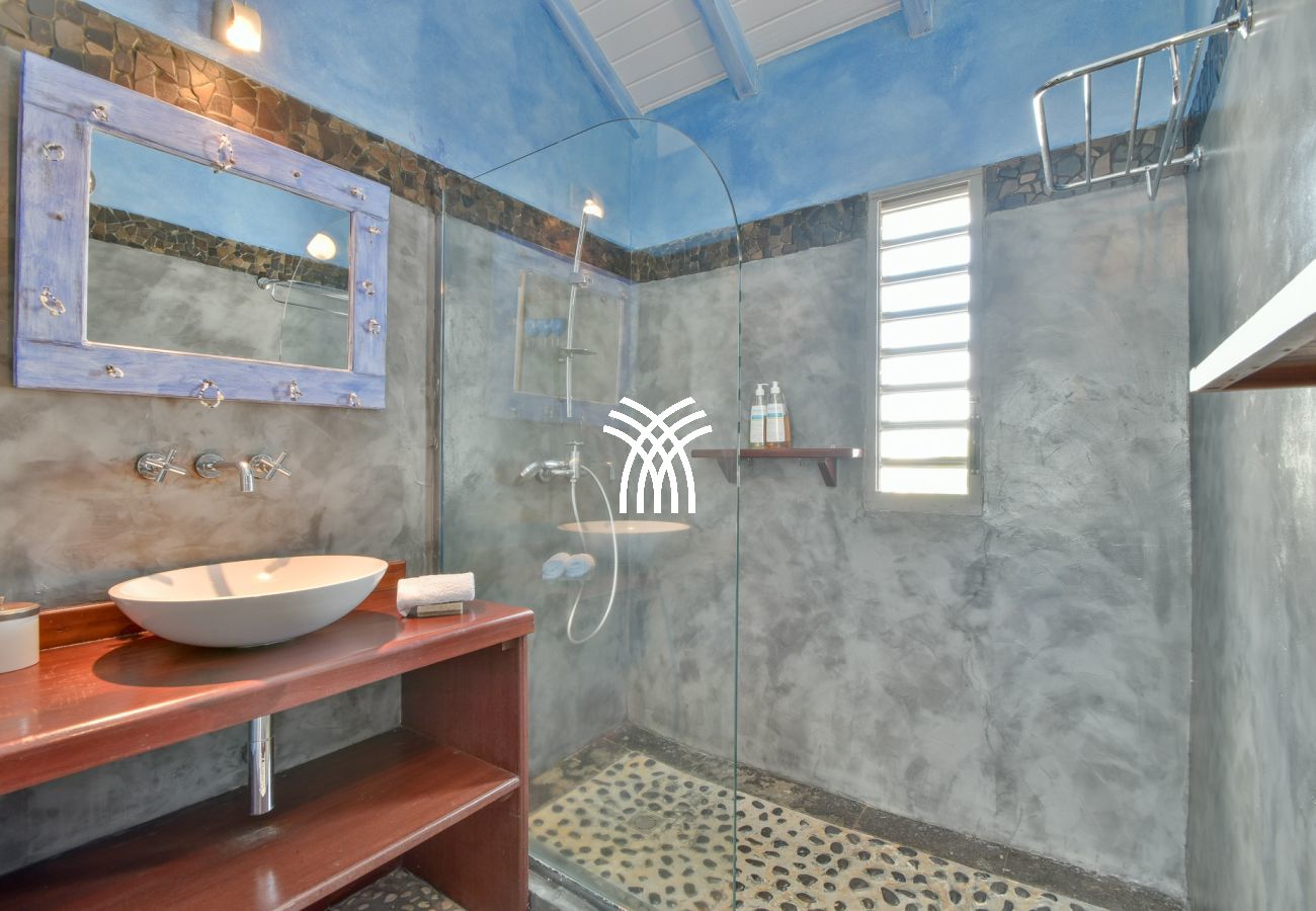 La Villa Zen Guadeloupe dispose de 4 chambres avec 4 salles de bain privées, astucieusement disposée en trois modules. Une pièce à vivre comprenant un salon TV, une cuisine spacieuse, une salle à manger, le tout est ouvert sur une grande terrasse avec piscine à débordement donnant sur l’océan. Un espace nuit auquel on accède par une galerie, avec une suite parentale au rez-de-chaussée, deux chambres avec balcon à l'étage, disposant chacune d’une salle d'eau, et un bungalow qui est totalement indépendant. Ce dernier avec un accès extérieur, possède un lit queen au niveau de la mezzanine, au rez-de-chaussée, un canapé-lit pouvant être séparé en 2 lits simples pour 2 enfants, un dressing et une salle de bains.