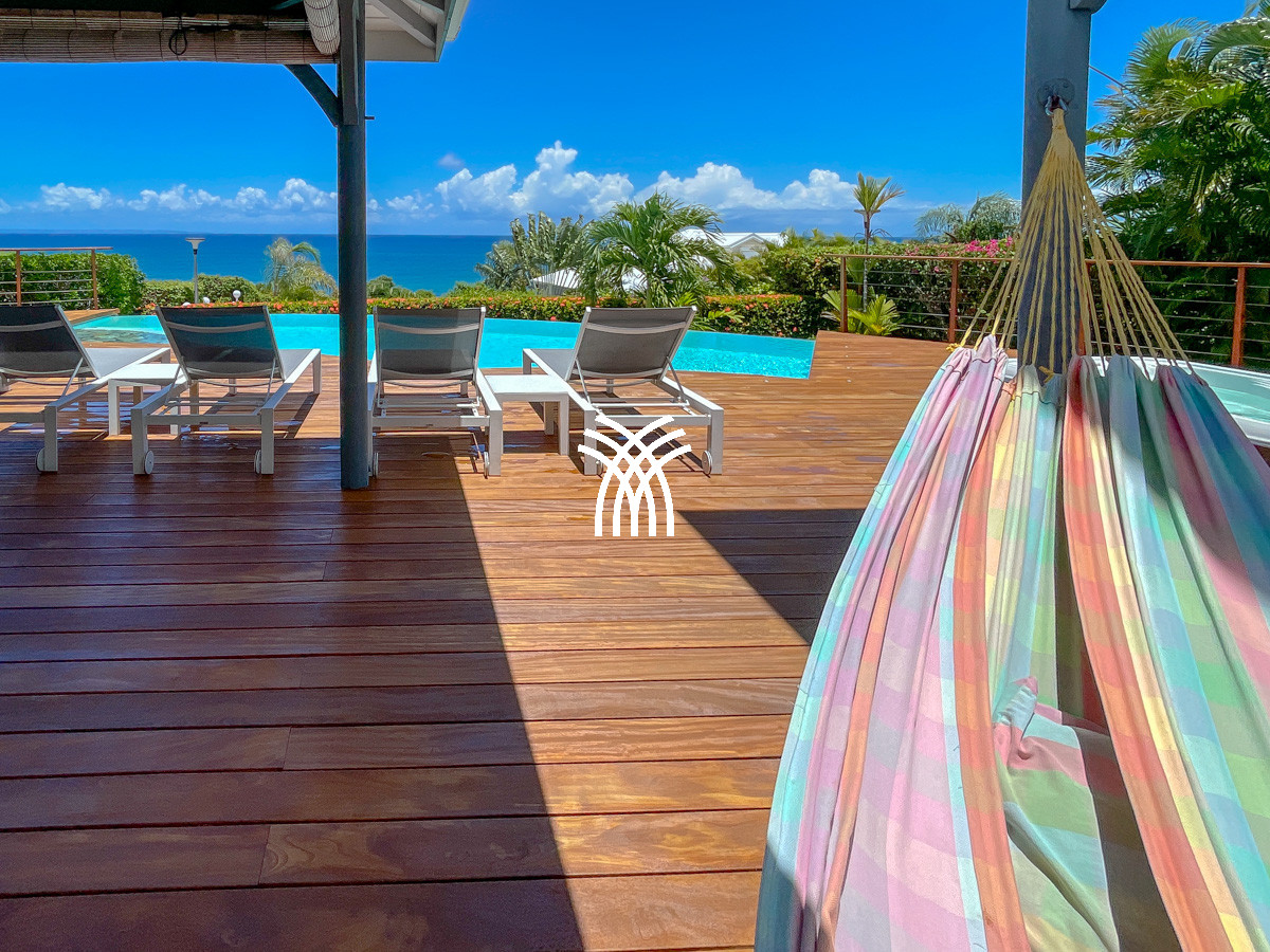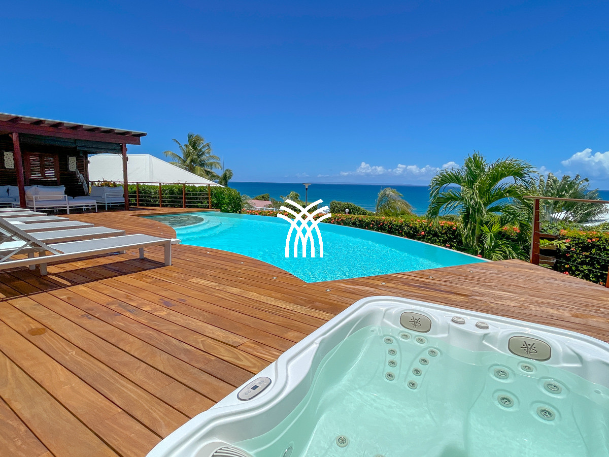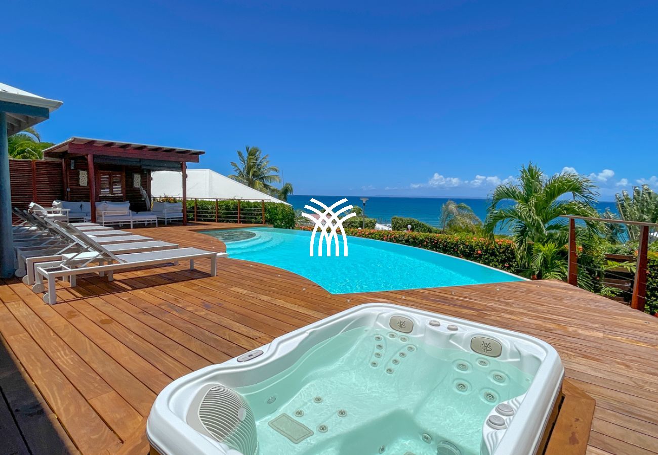 La Villa Zen Guadeloupe est une villa exceptionnelle, où chaque détail a été pensé pour le confort et l'harmonie de ses occupants. Cette villa de haut standing avec piscine et spa offre une vue splendide sur la mer. Située au Helleux entre les villes de Sainte-Anne (7 km) et de Saint-François (8 km), cette propriété de luxe est à 200 mètres de la plage de “Pierre & Vacances”, à 1200 mètres de la plage de Bois Jolan et à 800 mètres de la plage du Helleux (lieu réputé pour les surfeurs).