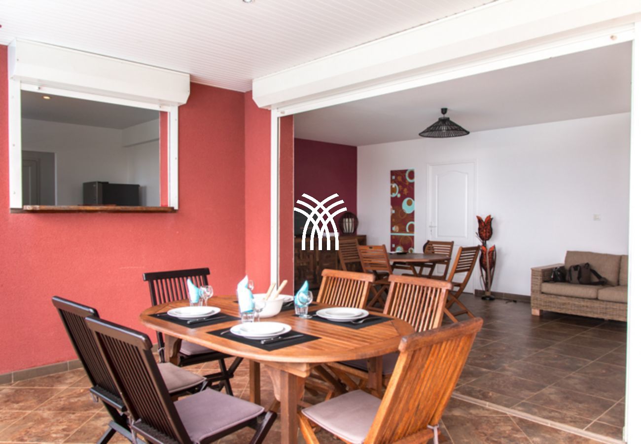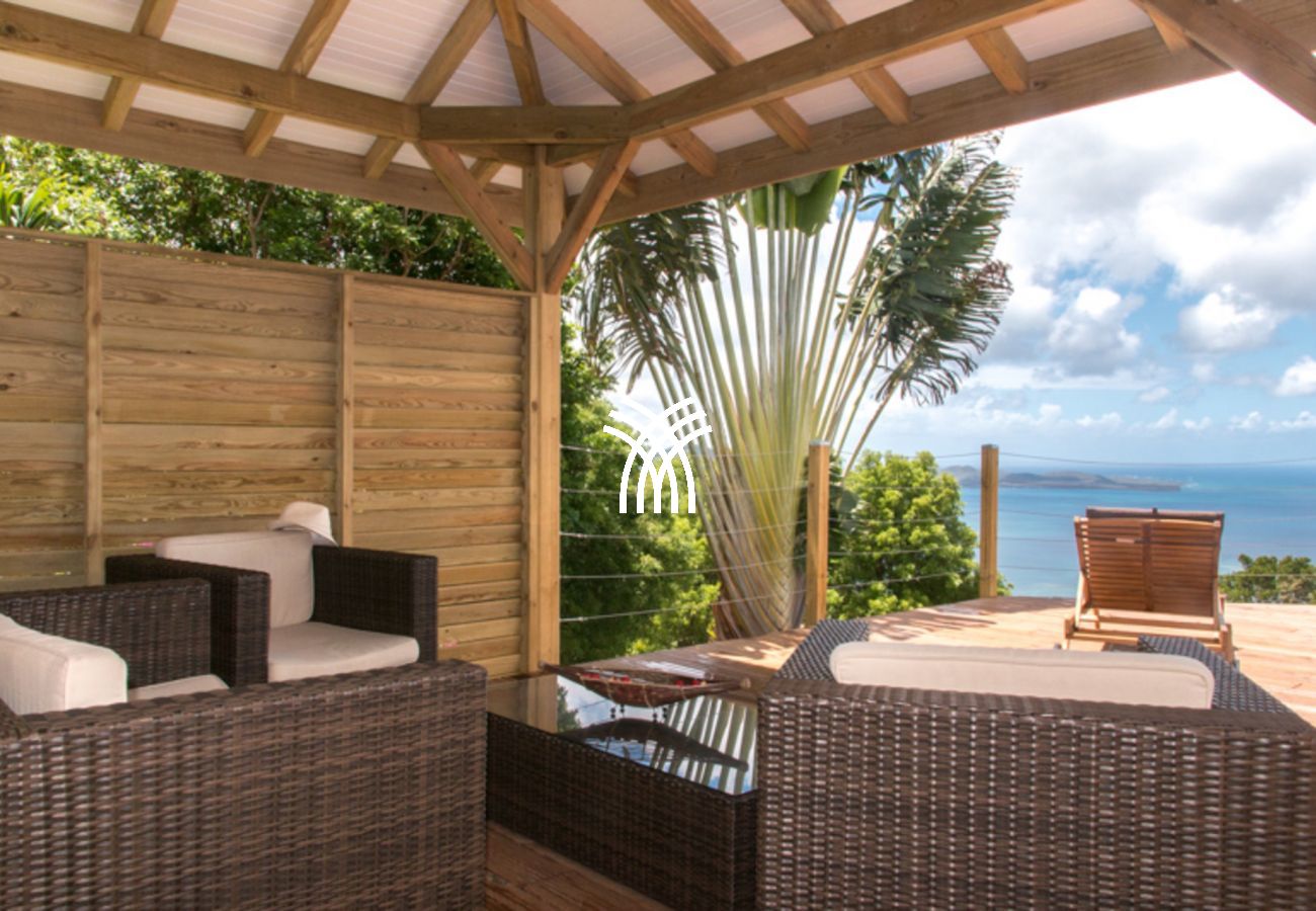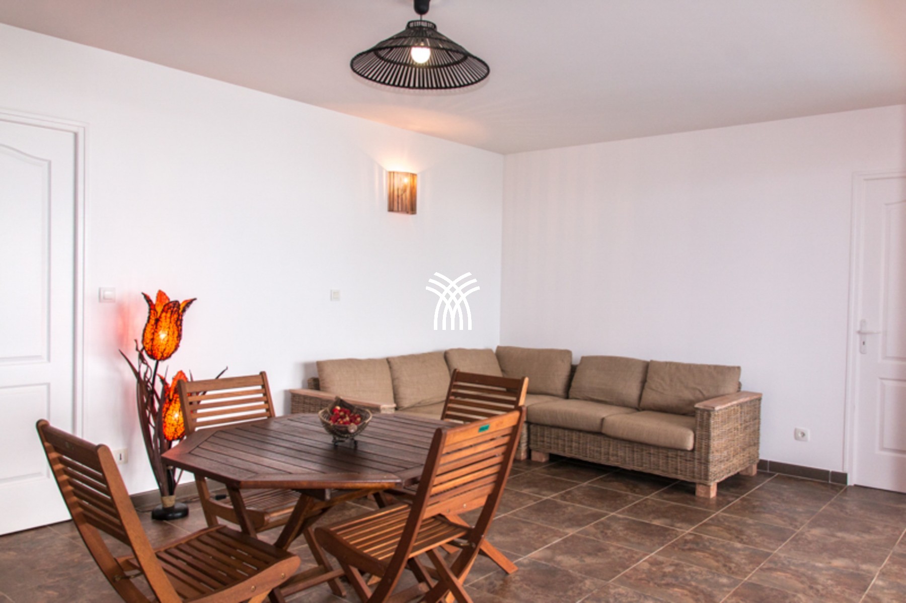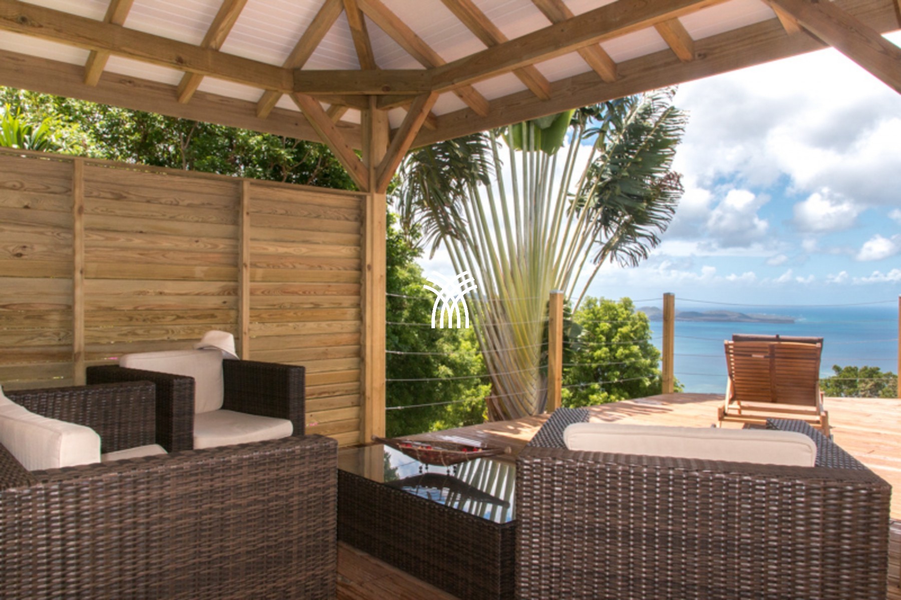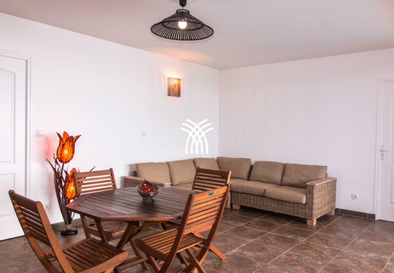 Le salon moderne adjacent à la cuisine vous offre un espace agréable pour vous détendre. La salle à manger extérieure située sur la terrasse vous permet de savourer vos repas tout en admirant la piscine et la mer des Caraïbes. Cette continuité entre les espaces intérieurs et extérieurs vous invite à profiter pleinement du climat tropical et de la douceur de vivre.